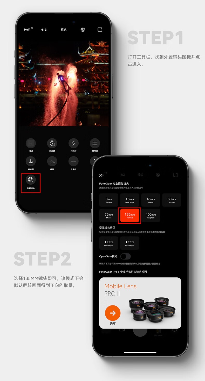 fotorgear手机外接人像长焦镜头135mm专业影像微距拍摄T卡口需搭配极影相机app镜像翻转取景 【T卡口】135mm 长焦镜头(需搭配app翻转)