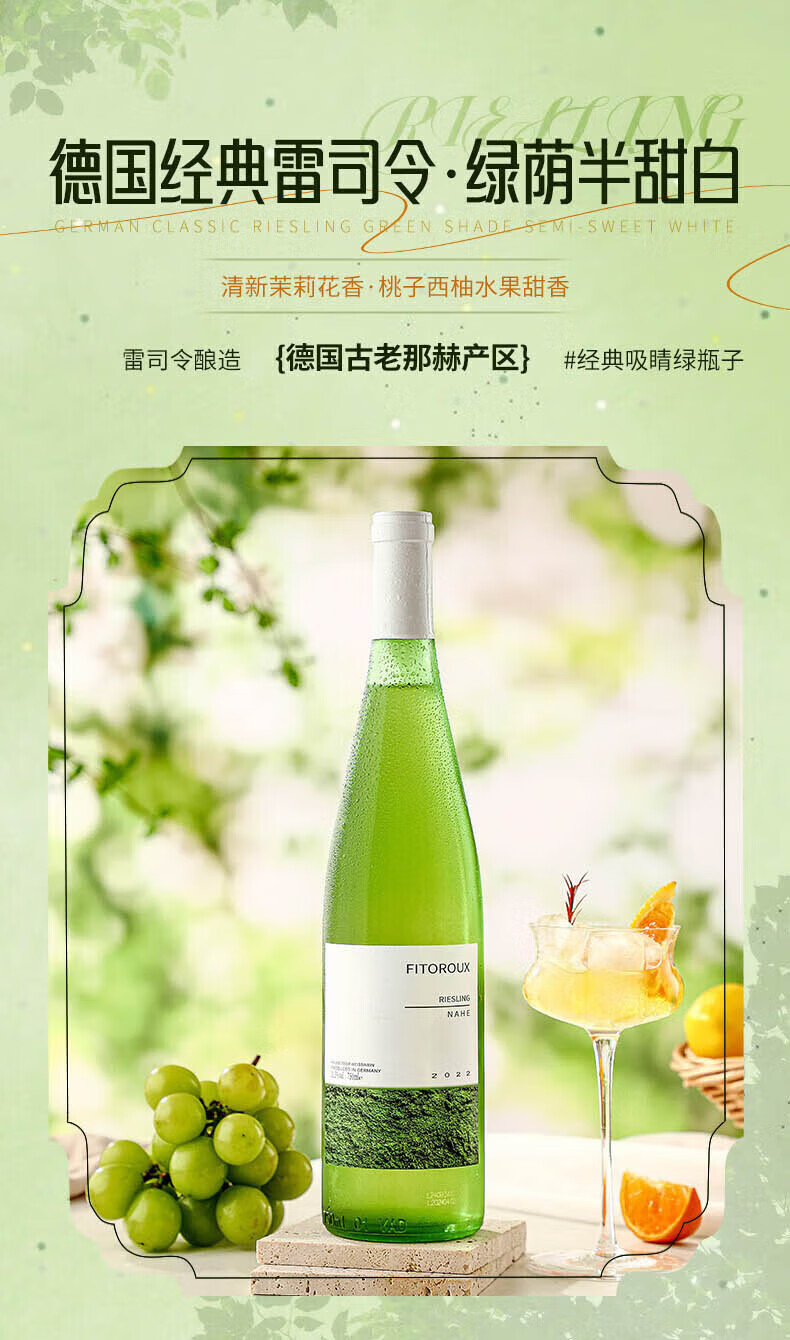 露颂【西柚冰茉莉】德国进口雷司令半甜白葡萄酒原酒进口礼盒送礼 【青提茉莉】单支尝鲜装