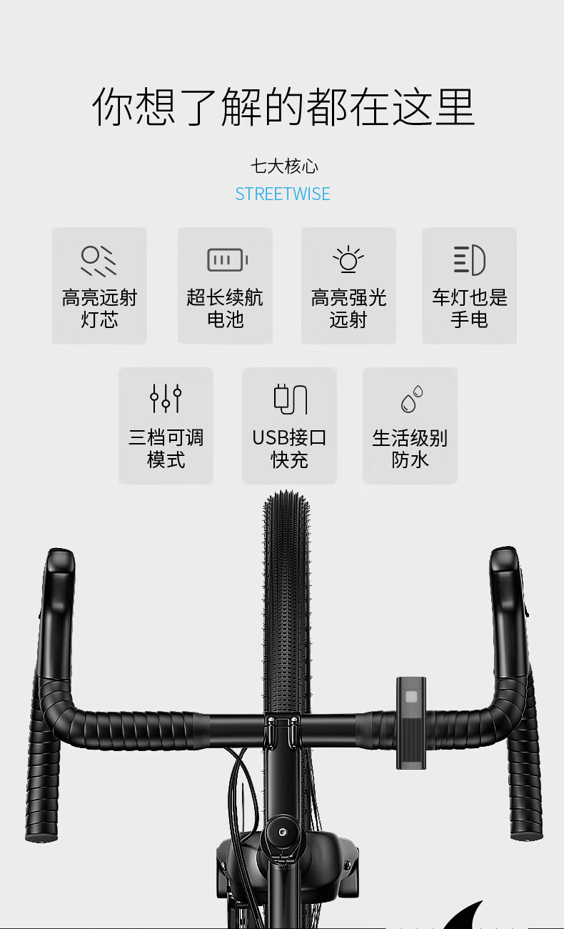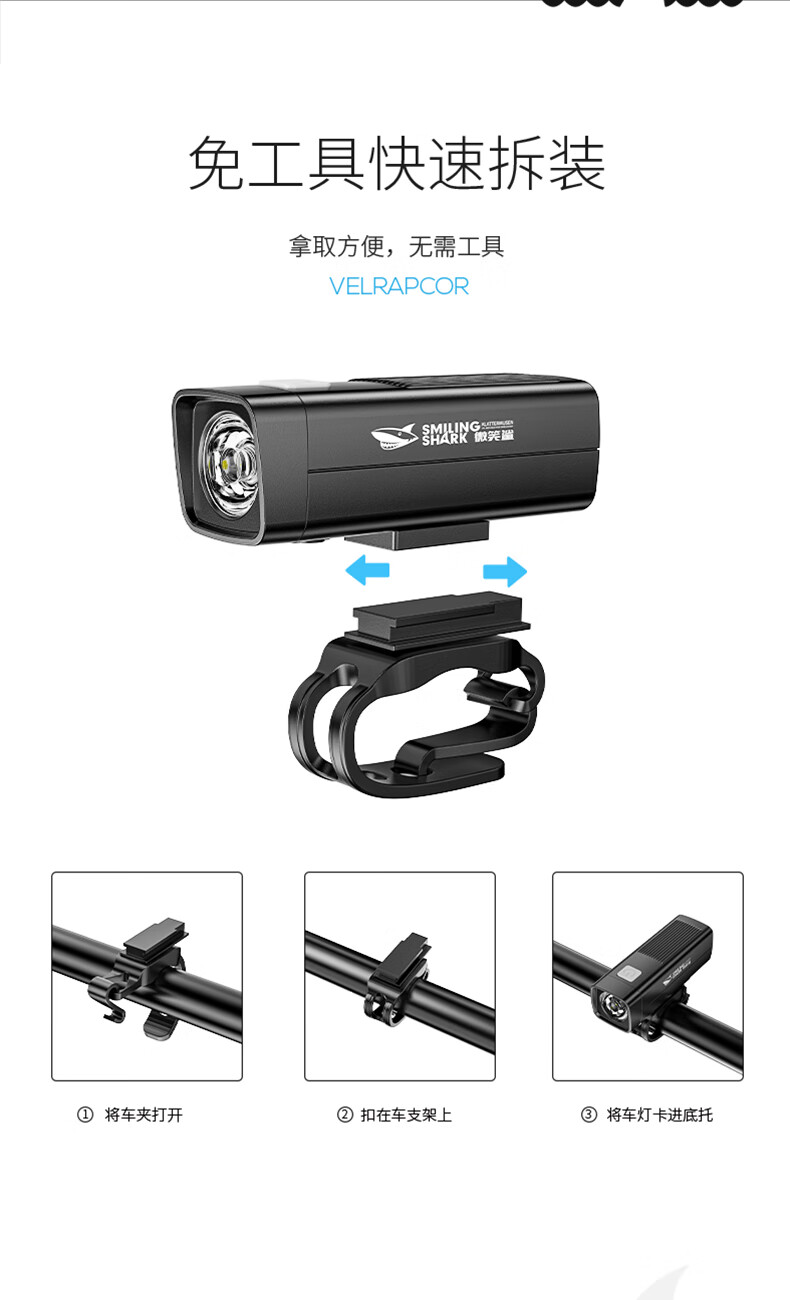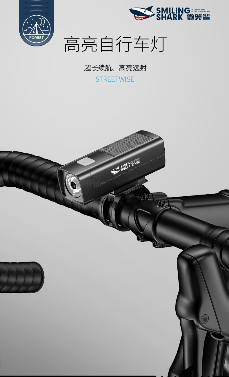 微笑鲨自行车灯前灯超亮夜骑照明强光手电筒充电防雨山地车单车骑行装备 【夜骑高亮车灯】超亮大广角+大泛光