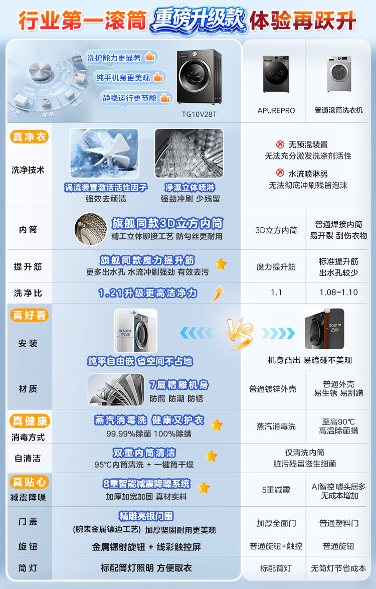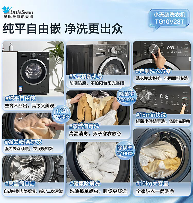 小天鹅(LittleSwan)滚筒洗衣机全自动家用 10KG大容量 超薄 TG10V28T 以旧换新 国家补贴 京东自营 内衣洗 一级能效