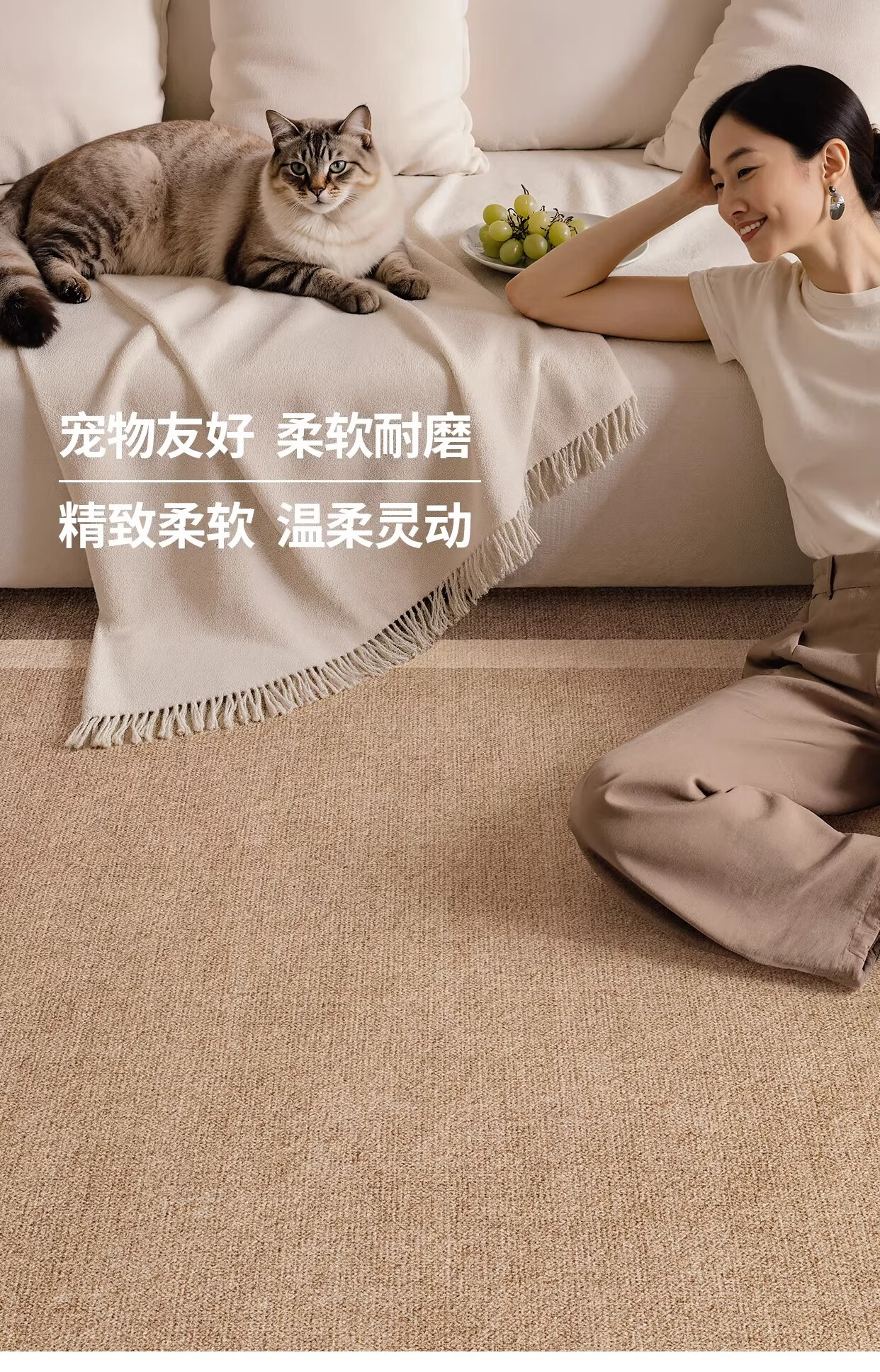 Y U-LIVE地毯客厅侘寂风2026新款轻奢高级全铺大面积免洗可擦沙发卧室 S仿羊绒-逐浪 200*300CM【客厅优选尺寸】