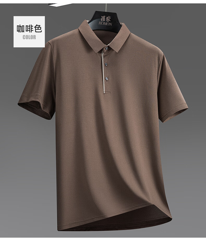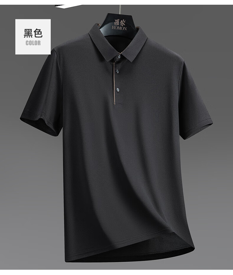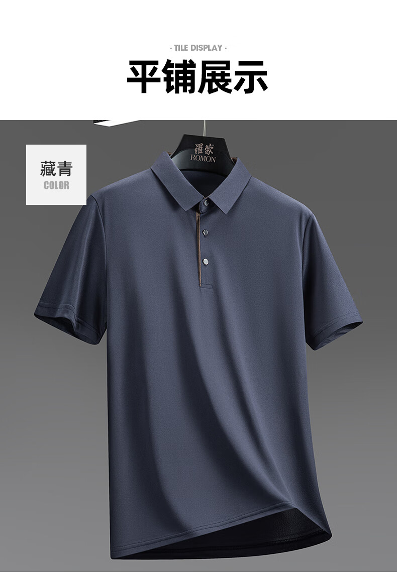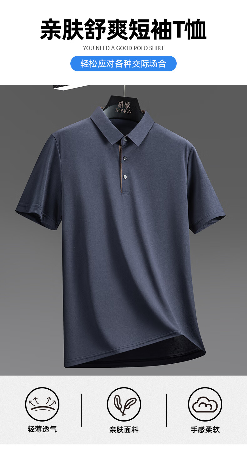 罗蒙(ROMON)冰丝凉感短袖t恤男士2026夏季新款中青年商务休闲时尚翻领上衣 藏青 3XL (185) 适合155-175斤