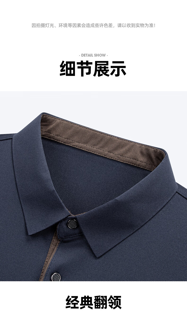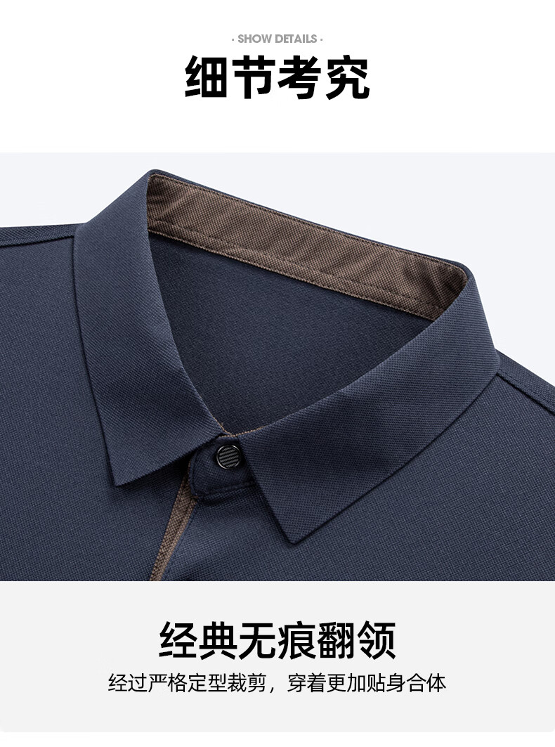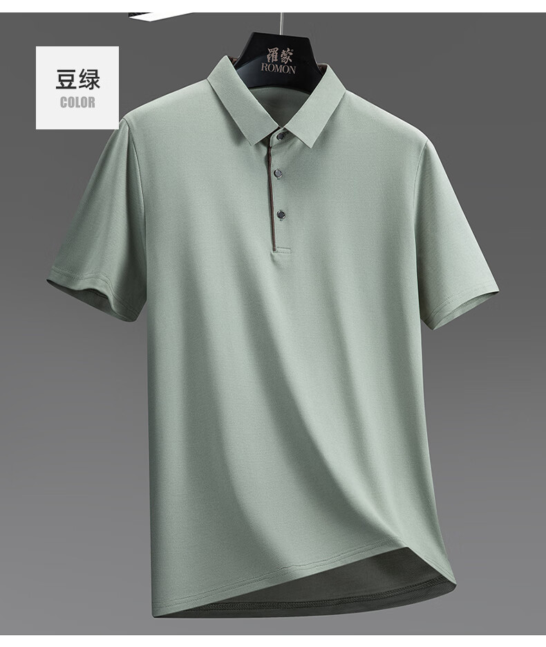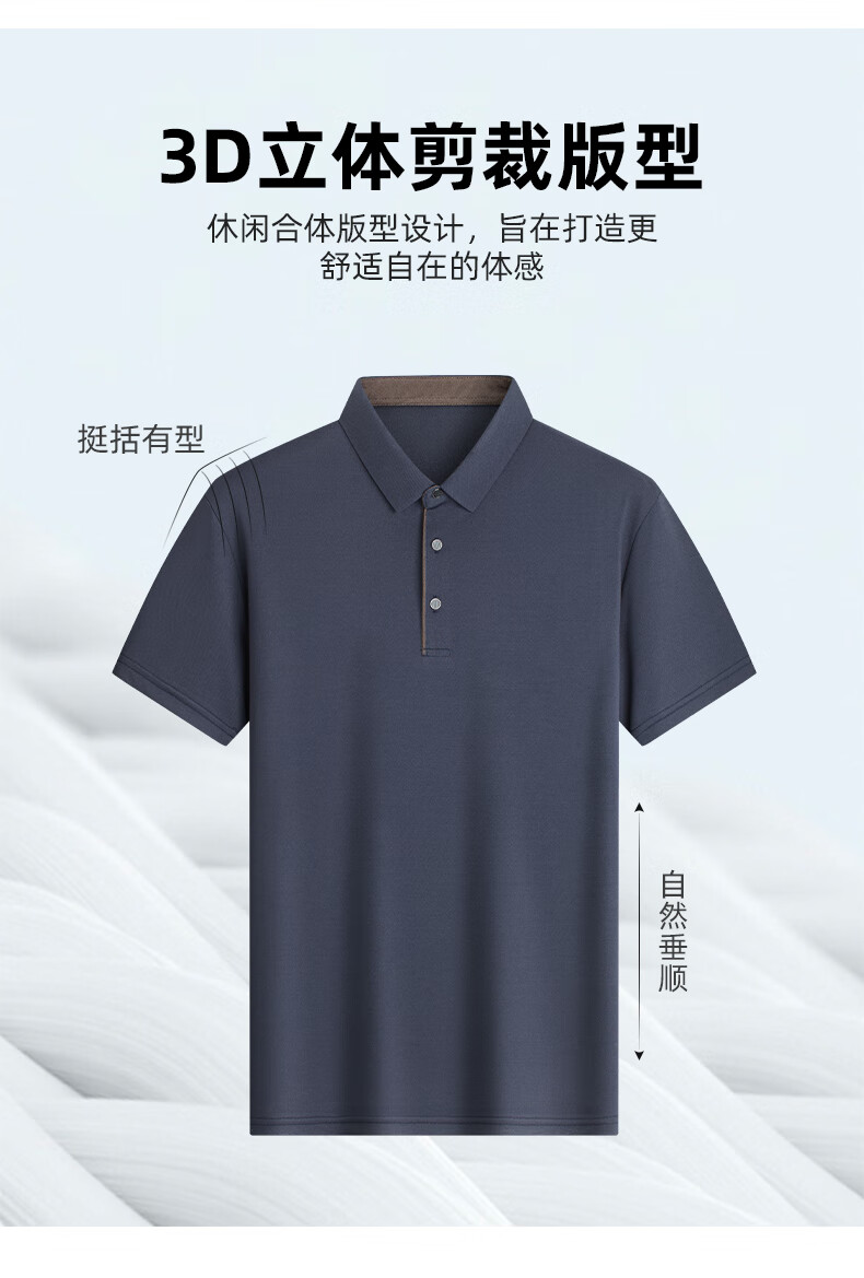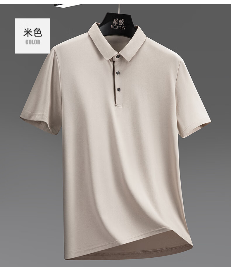 罗蒙(ROMON)冰丝凉感短袖t恤男士2026夏季新款中青年商务休闲时尚翻领上衣 藏青 3XL (185) 适合155-175斤