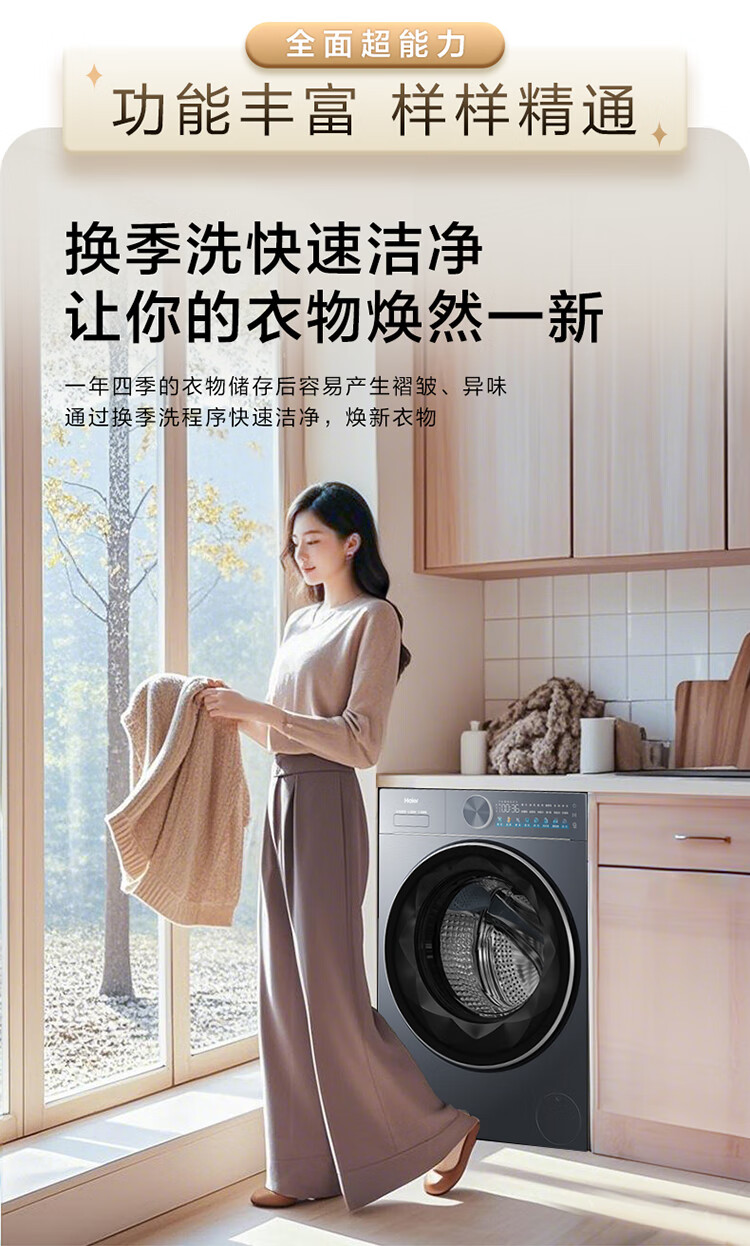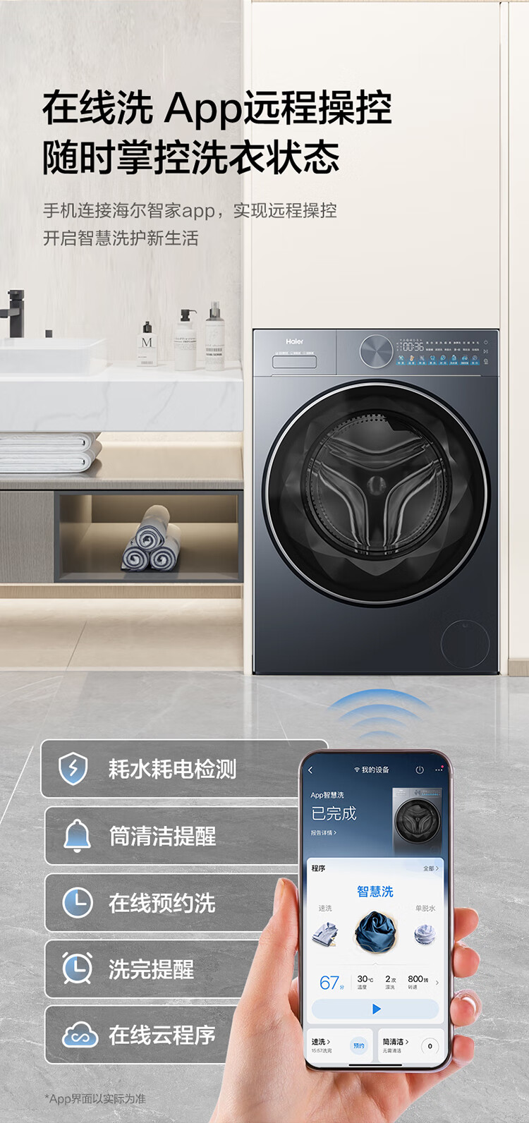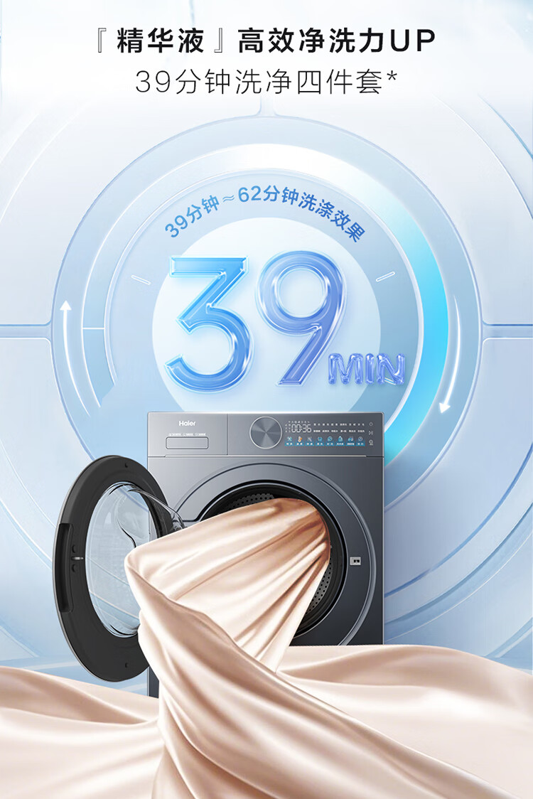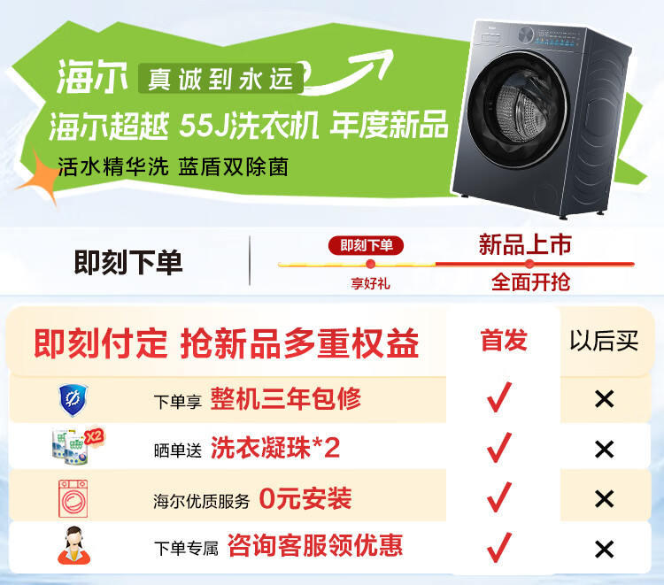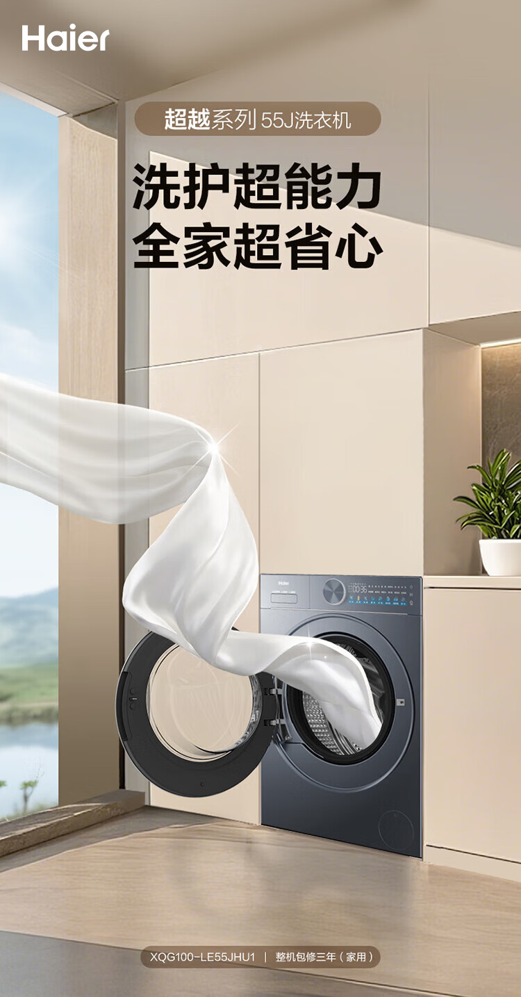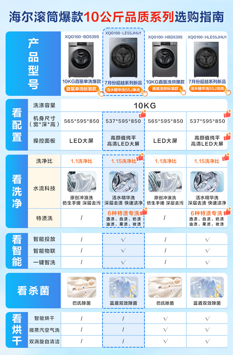海尔小红花 全自动滚筒洗衣机10KG 变频 活水精华洗 家电国家补贴以旧换新京东自营 洗羽绒服 55J