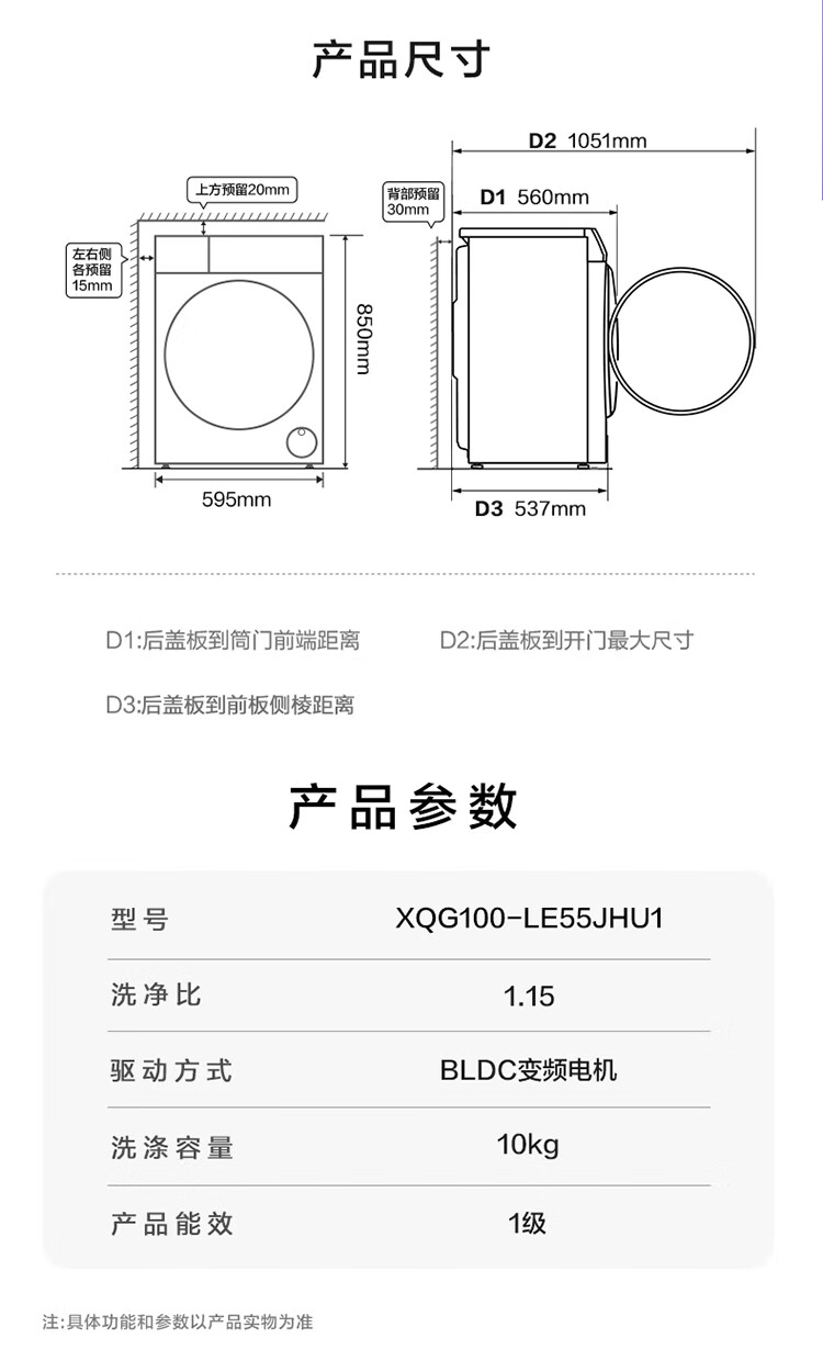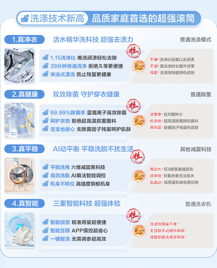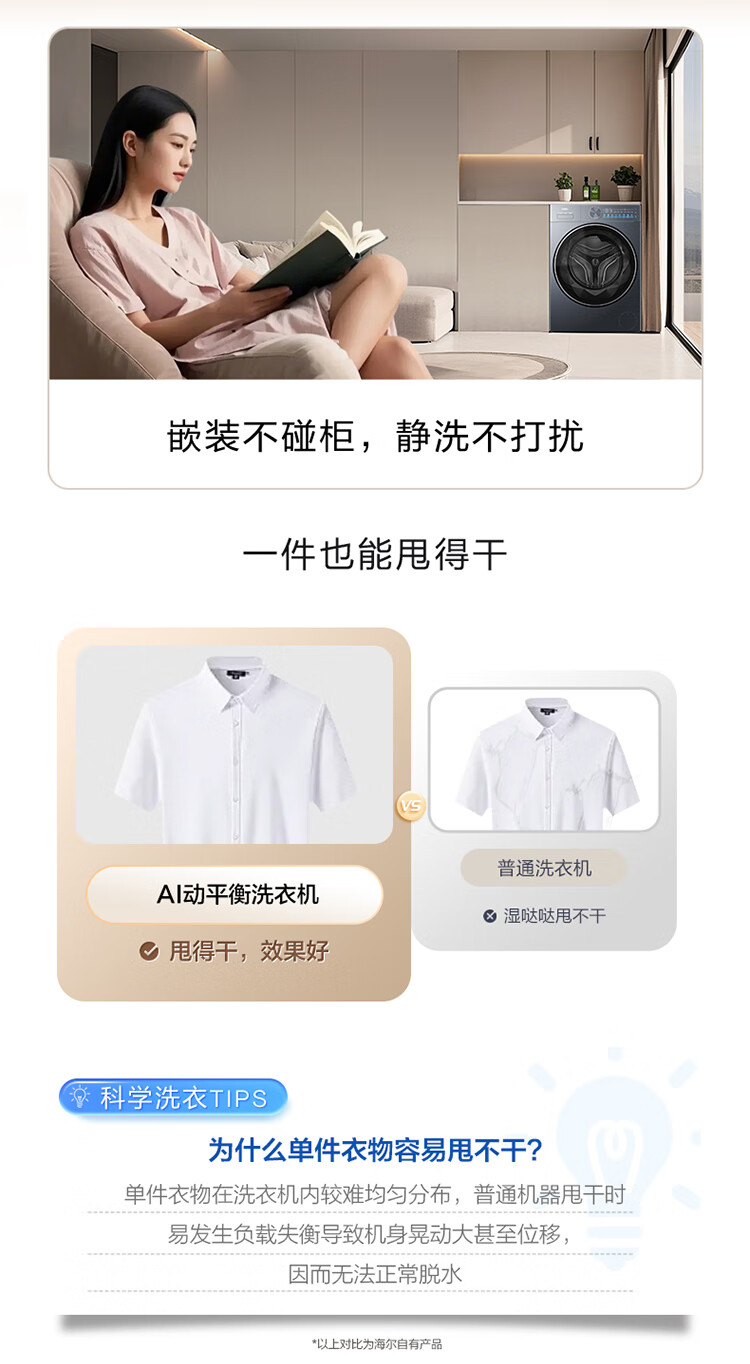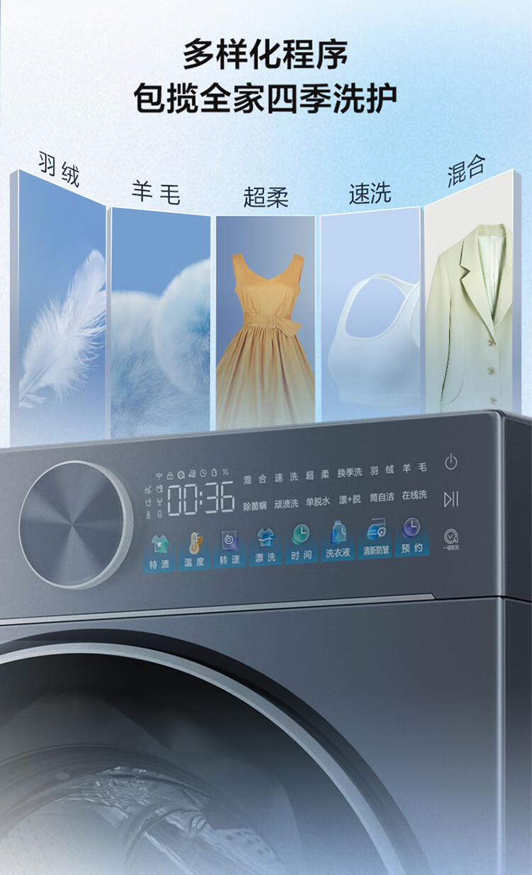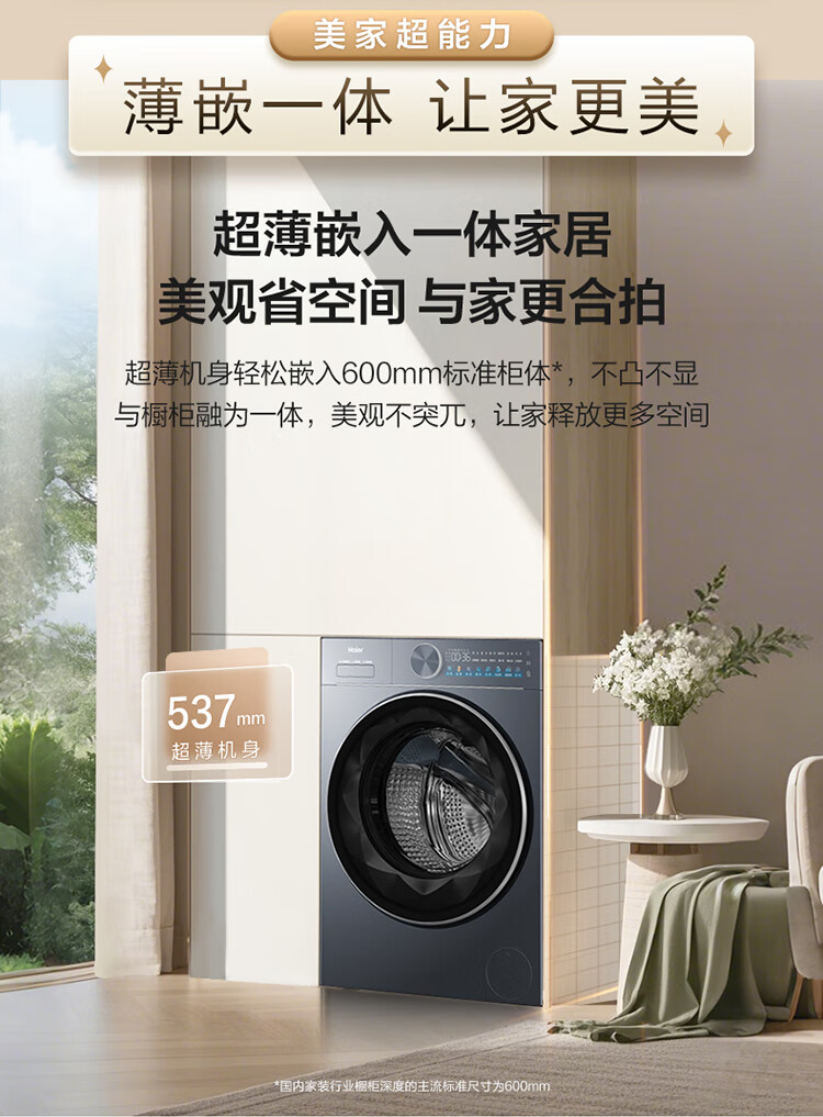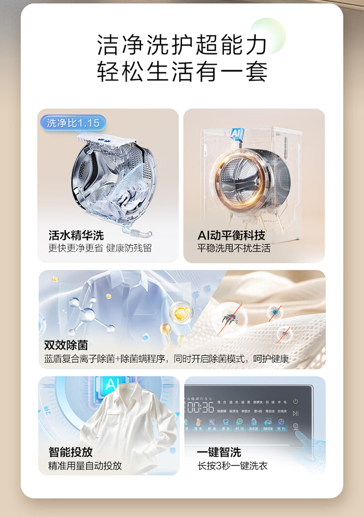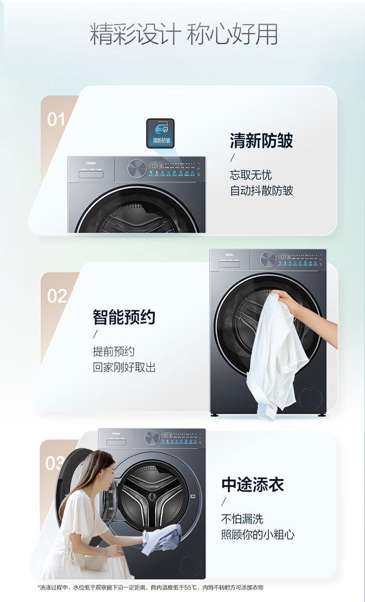 海尔小红花 全自动滚筒洗衣机10KG 变频 活水精华洗 家电国家补贴以旧换新京东自营 洗羽绒服 55J