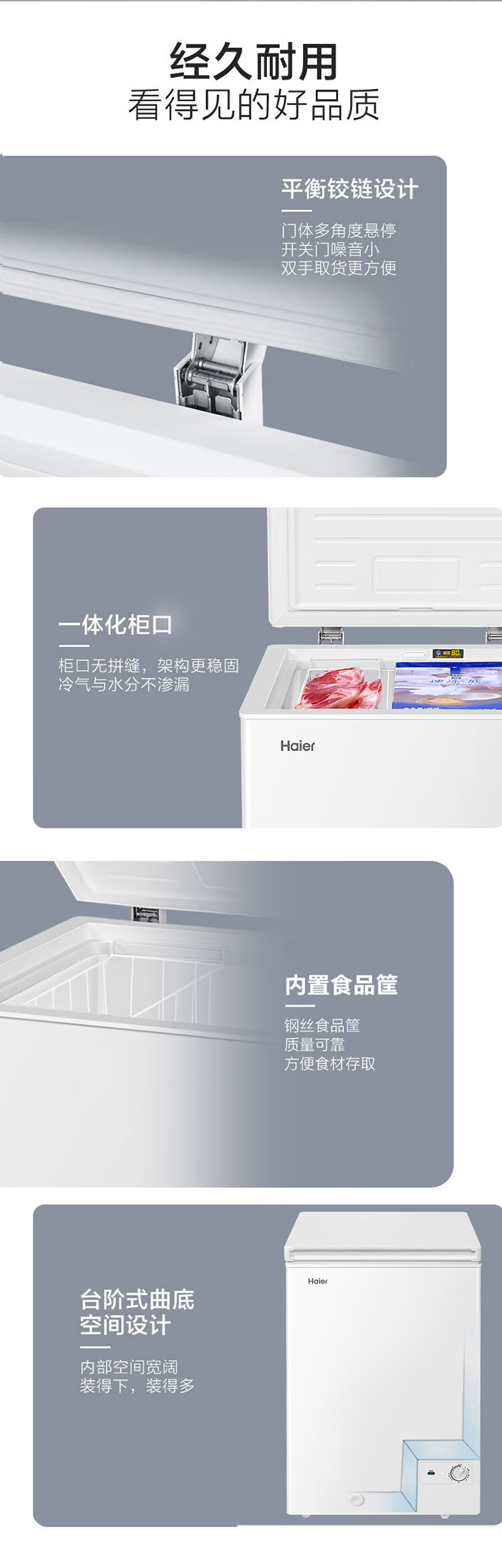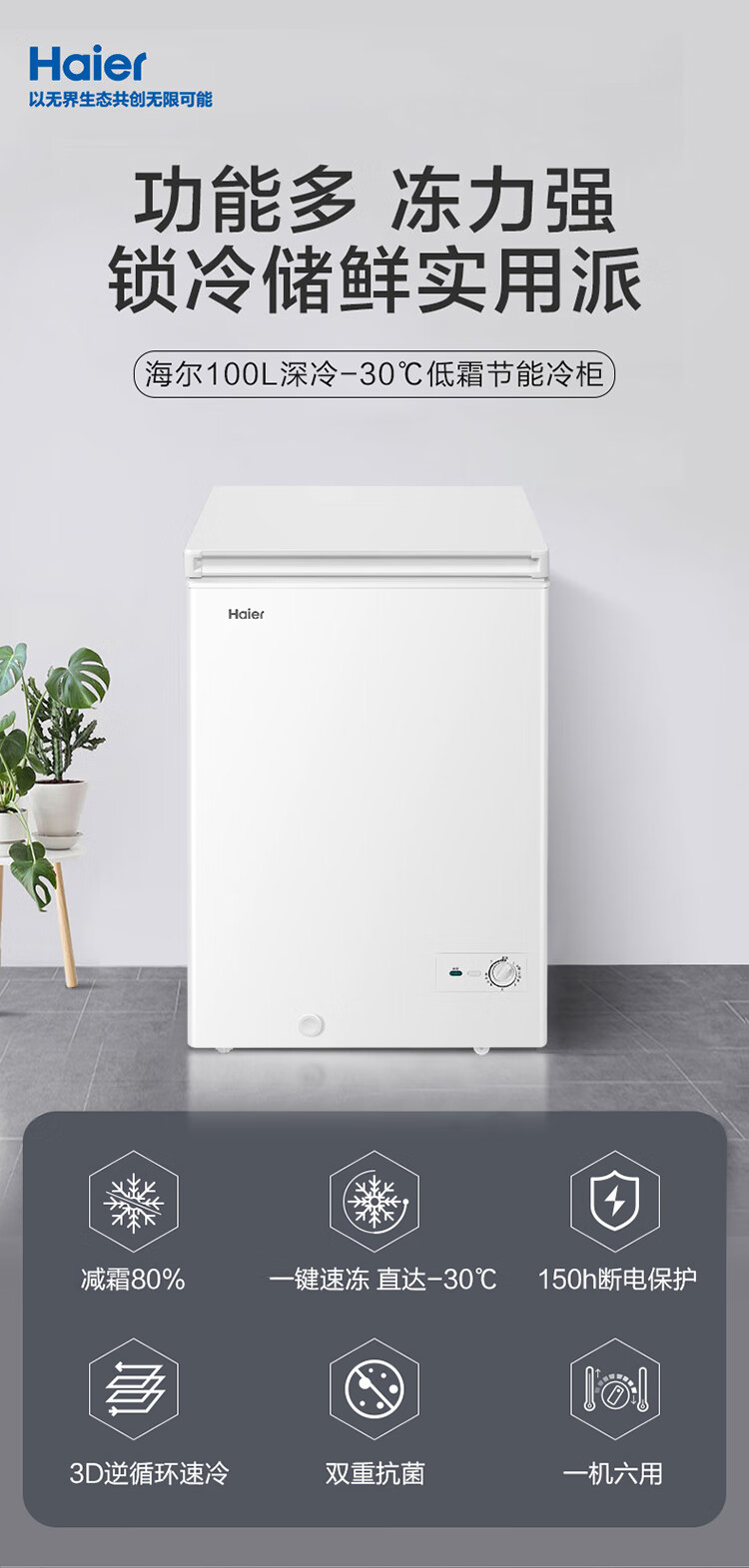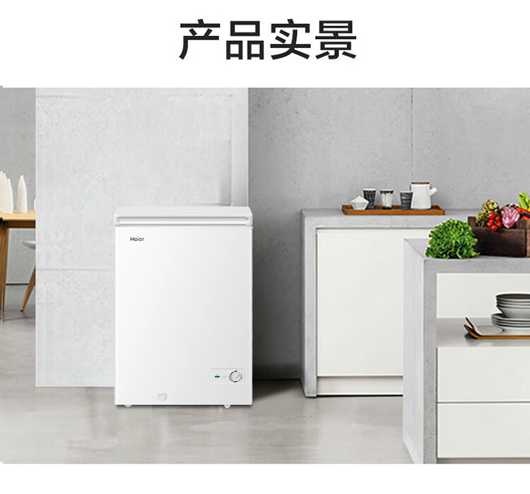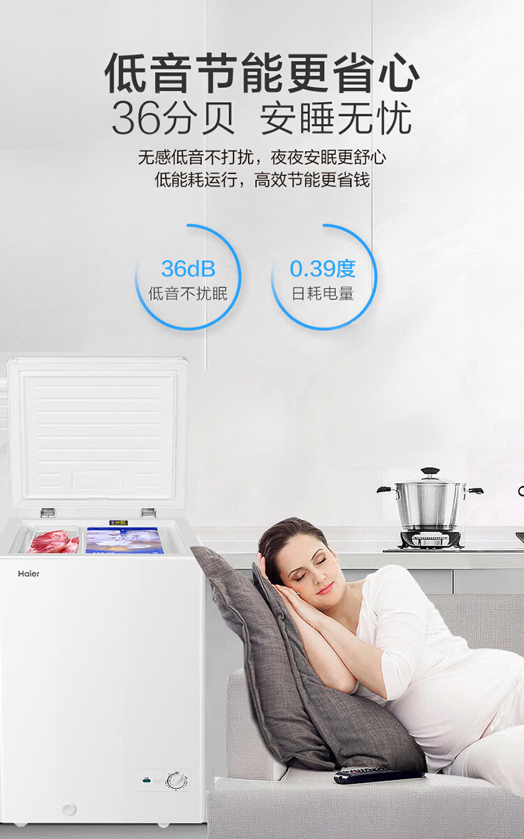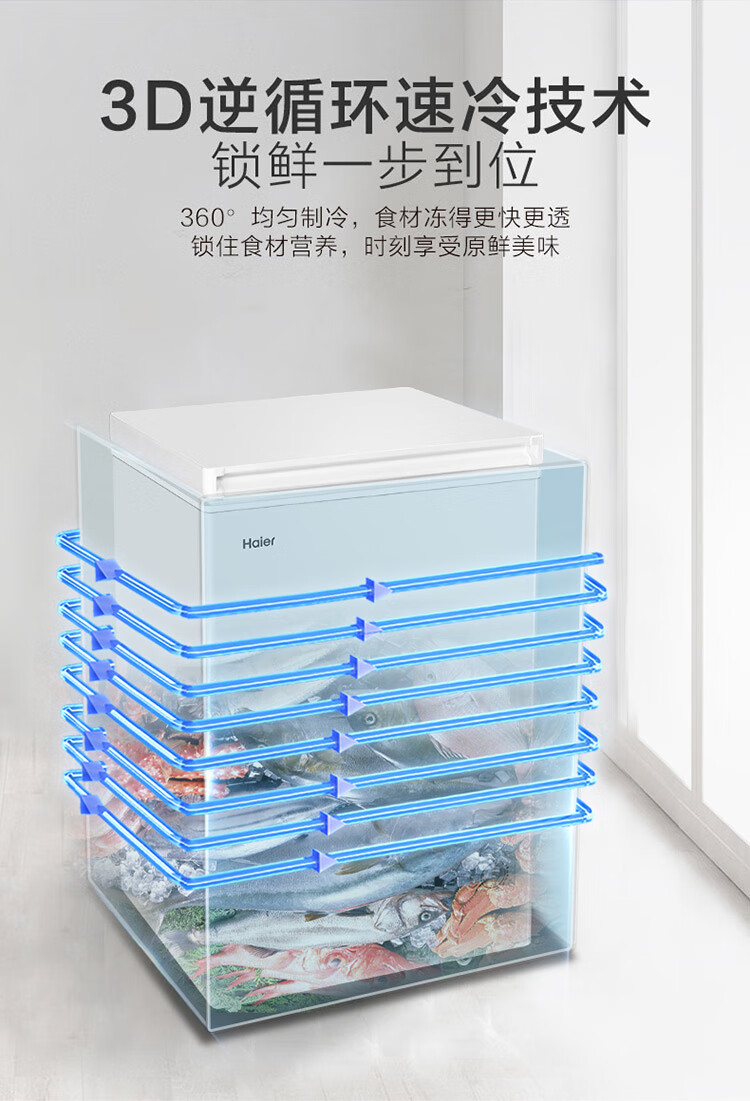 海尔(Haier)出品单温冰柜家用无需频繁除霜一级能效卧式冷藏柜冷冻柜小型迷你冰箱 100升 带脚轮食品筐丨约冻140斤肉Leader
