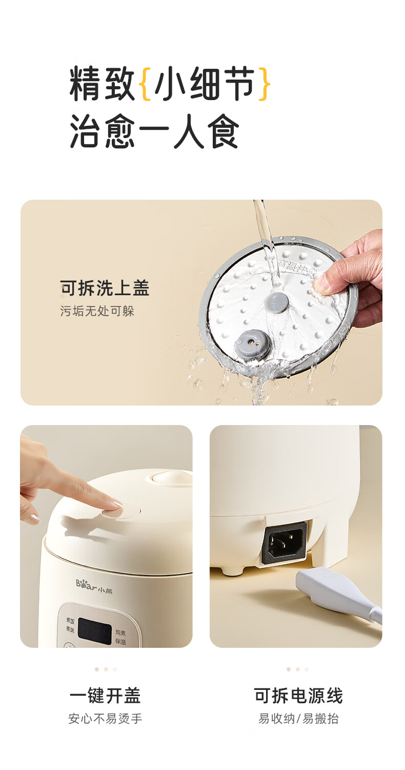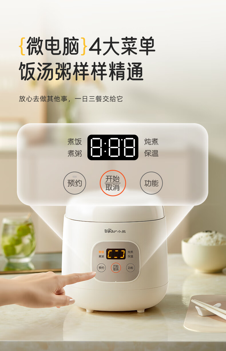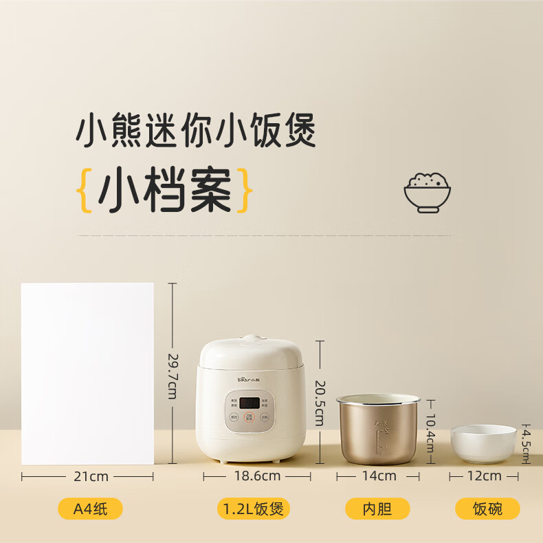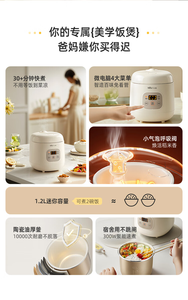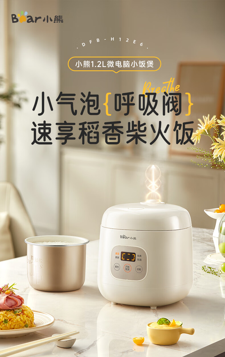 小熊(Bear)电饭煲 电饭锅1-2人用 智能触控多功能不粘锅内胆小型迷你煮饭锅1.2L DFB-H12E6
