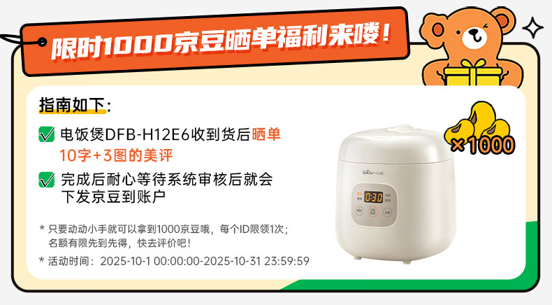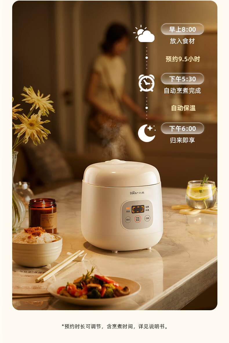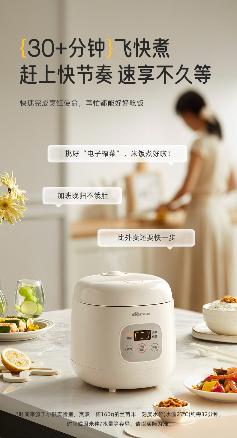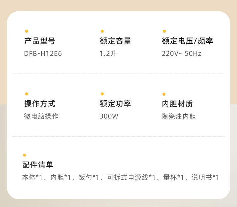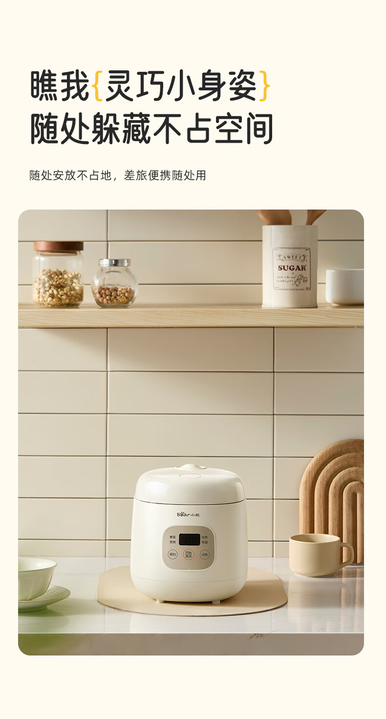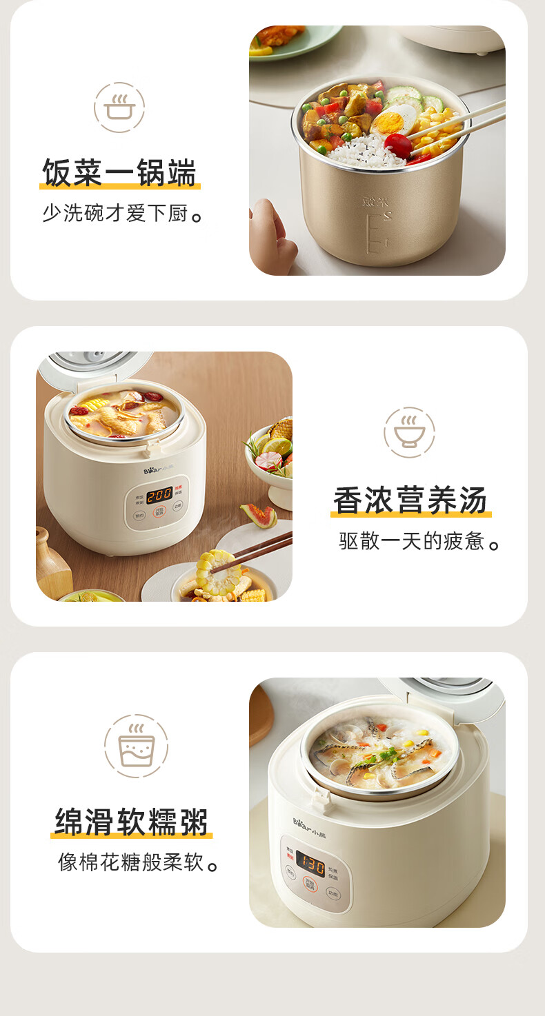 小熊(Bear)电饭煲 电饭锅1-2人用 智能触控多功能不粘锅内胆小型迷你煮饭锅1.2L DFB-H12E6