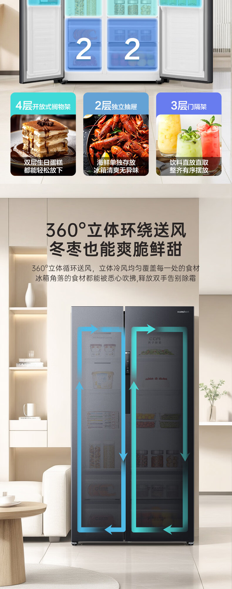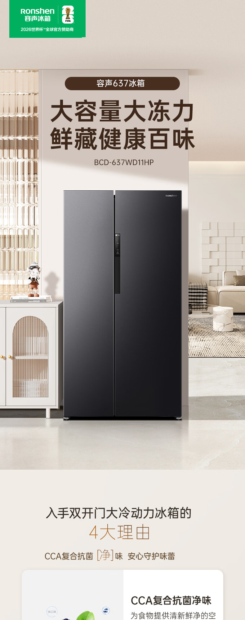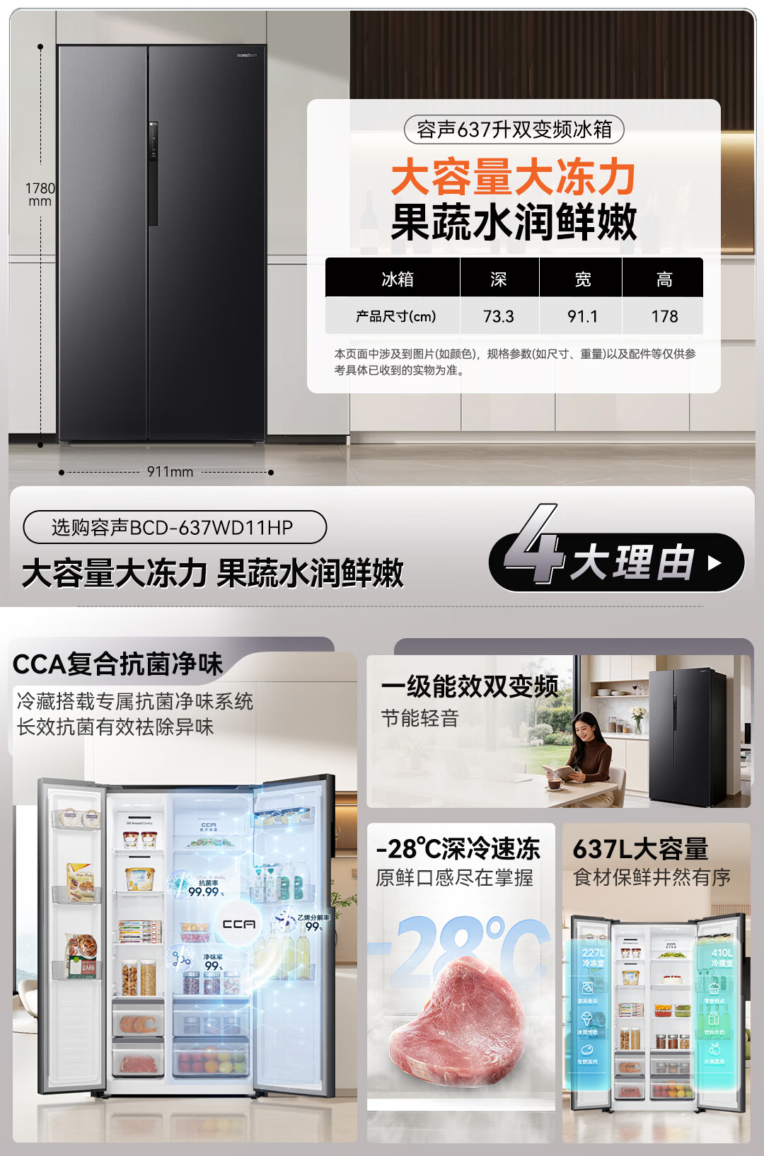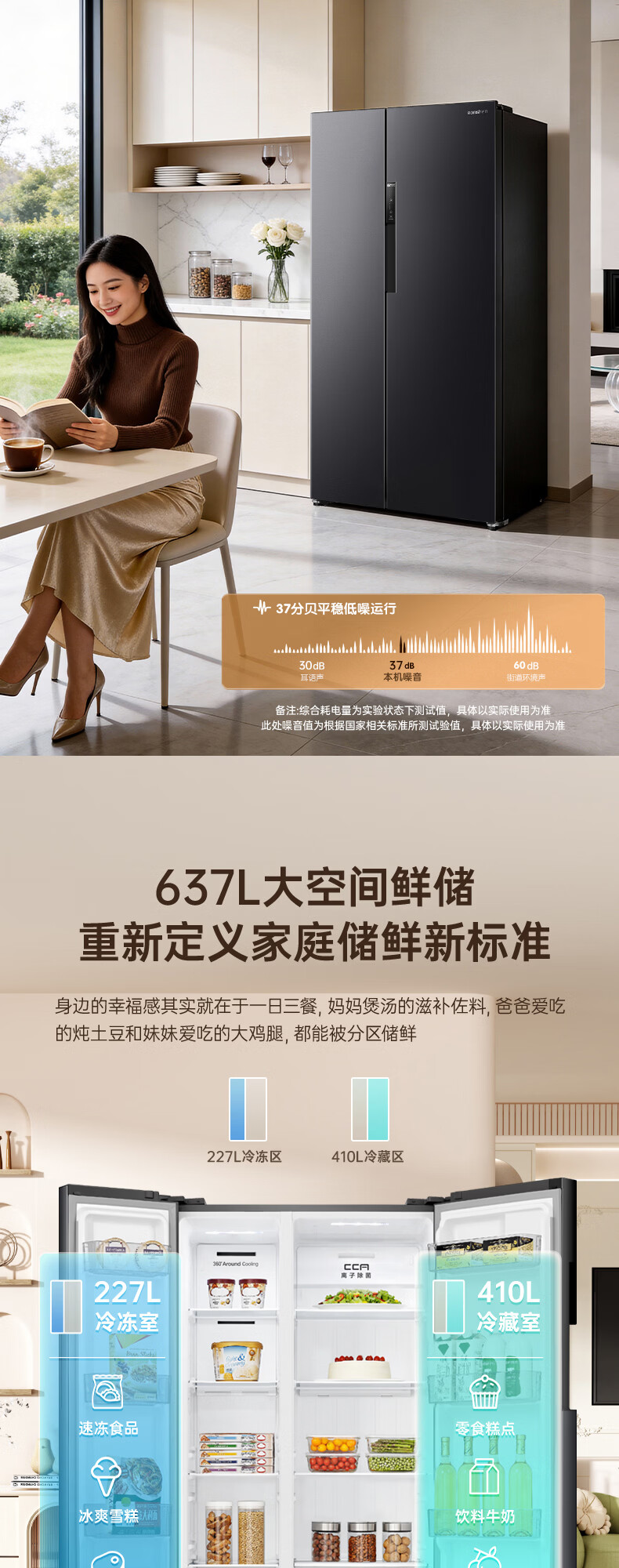 容声637升对开门双开门电冰箱家用一级能效变频节能风冷无霜大容量BCD-637WD11HP家电国家补贴 BCD-637WD11HP