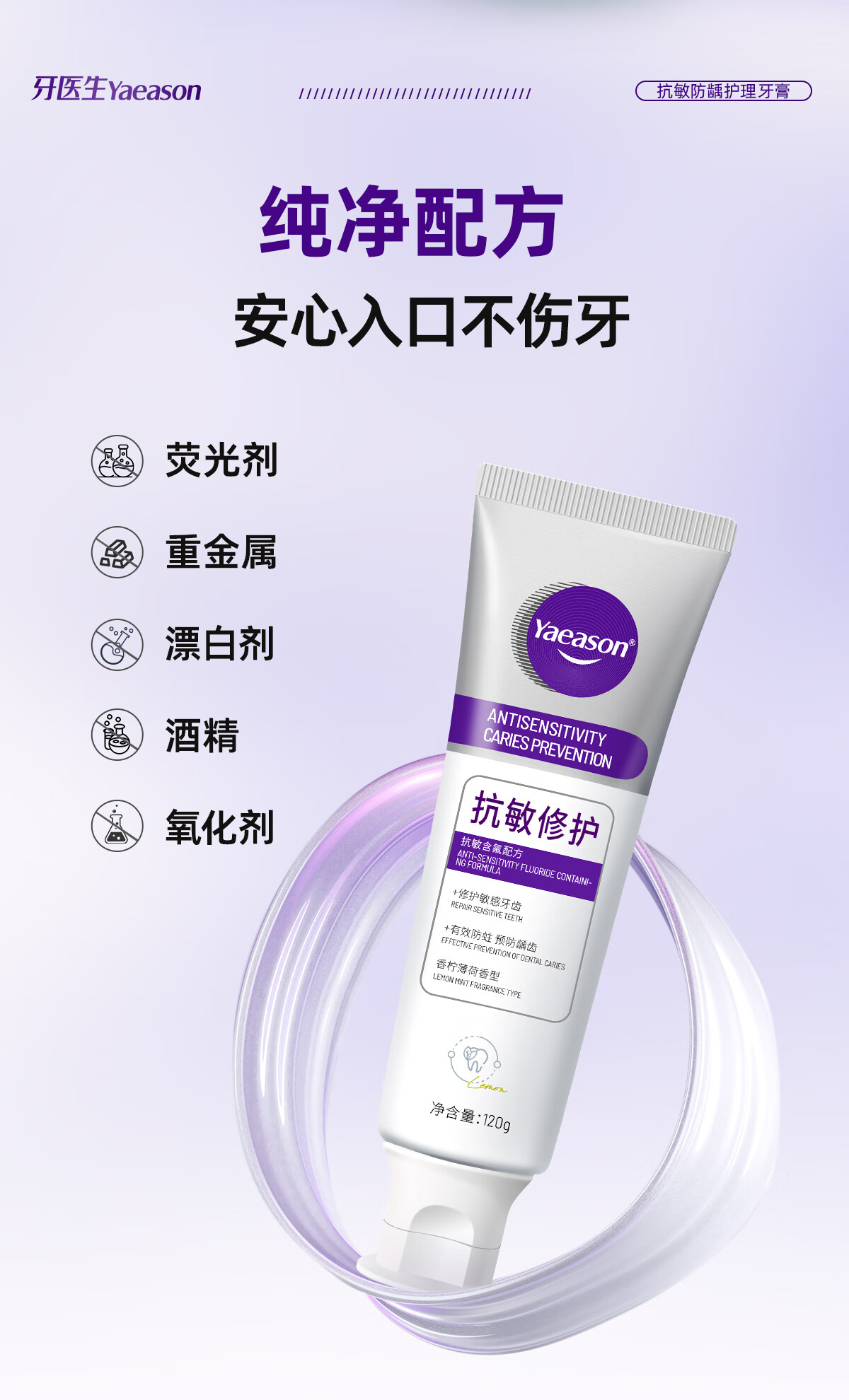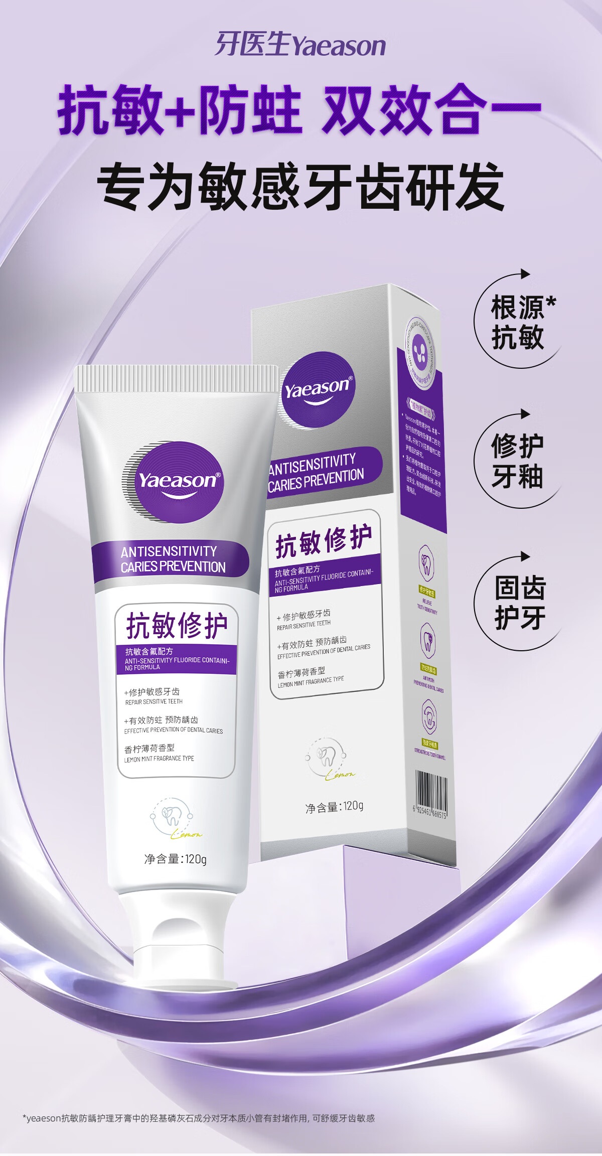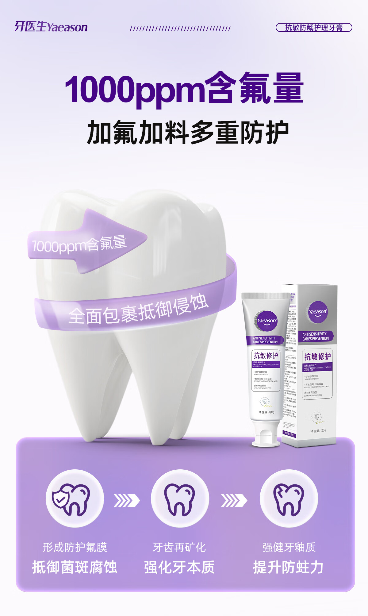 牙医生(Yaeason)抗敏修护牙膏修护牙龈多效护理含氟固齿舒缓冷热酸甜专研抗敏牙膏 新升级抗敏+修护 120g*5支 2支装起下单即享牙刷牙膏套装