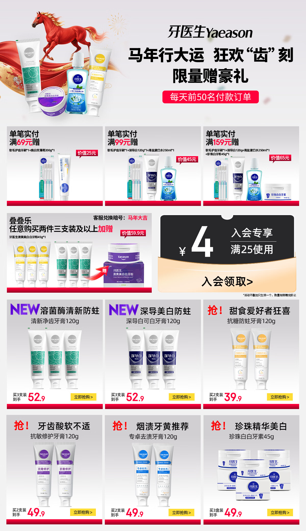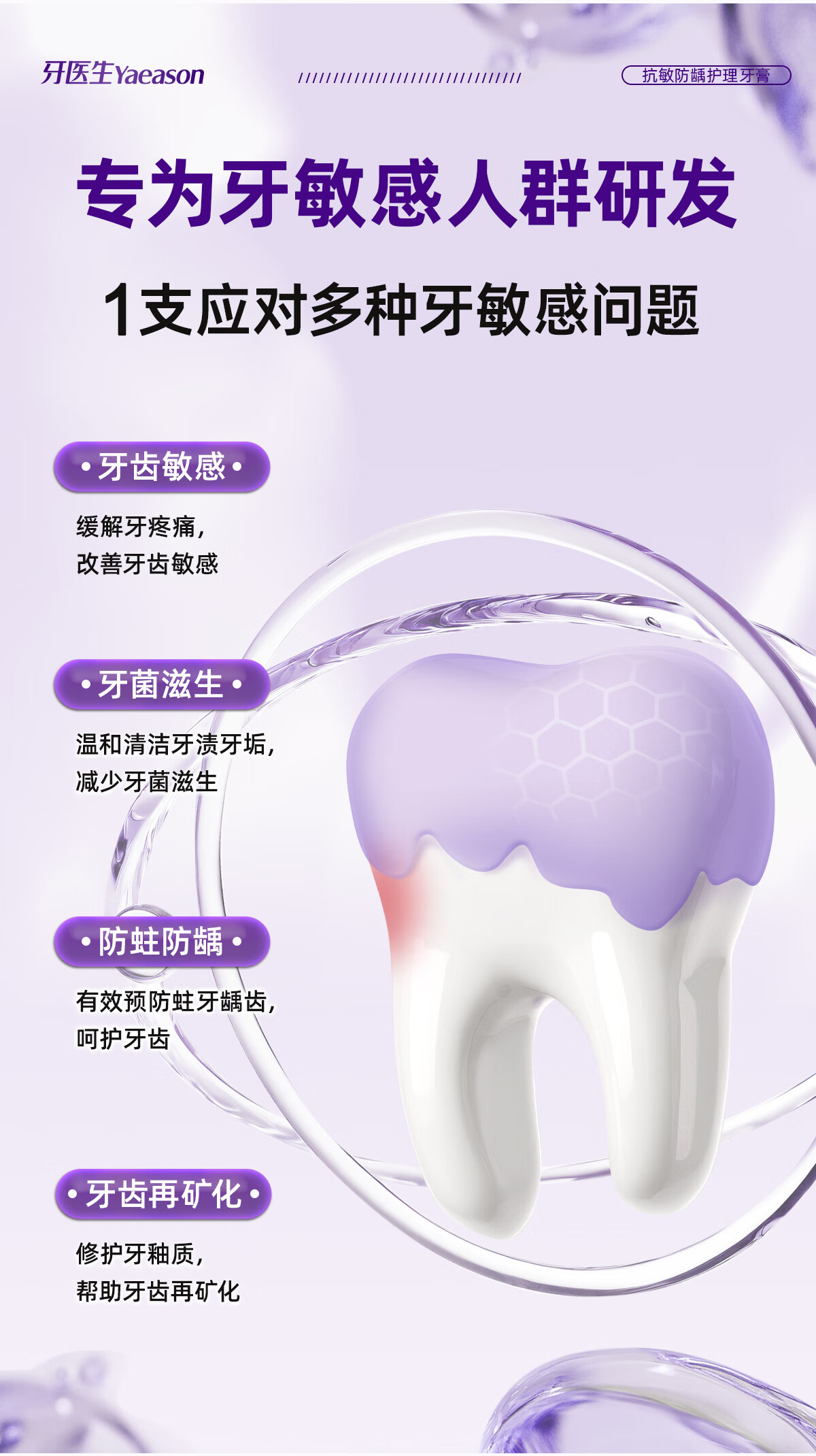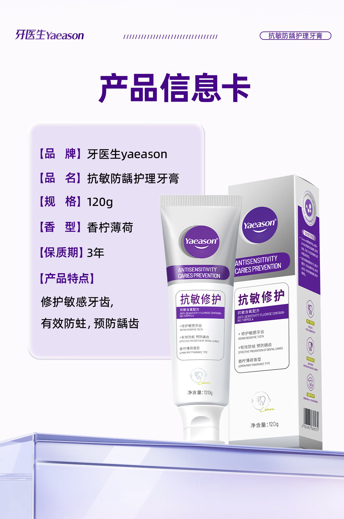 牙医生(Yaeason)抗敏修护牙膏修护牙龈多效护理含氟固齿舒缓冷热酸甜专研抗敏牙膏 新升级抗敏+修护 120g*5支 2支装起下单即享牙刷牙膏套装