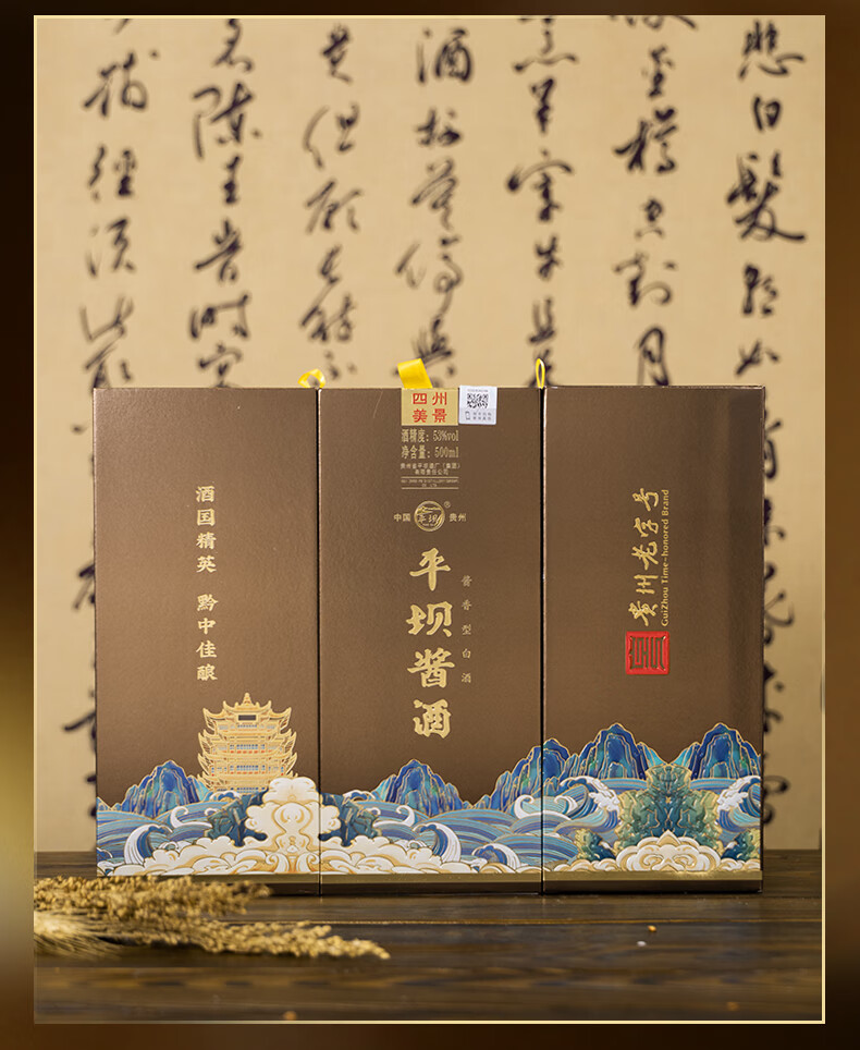 平坝窑酒贵州酱香型高度白酒收藏送礼礼盒装纯粮春节新年礼物礼品酒 53%vol 500mL 6瓶 四州美景收藏送礼
