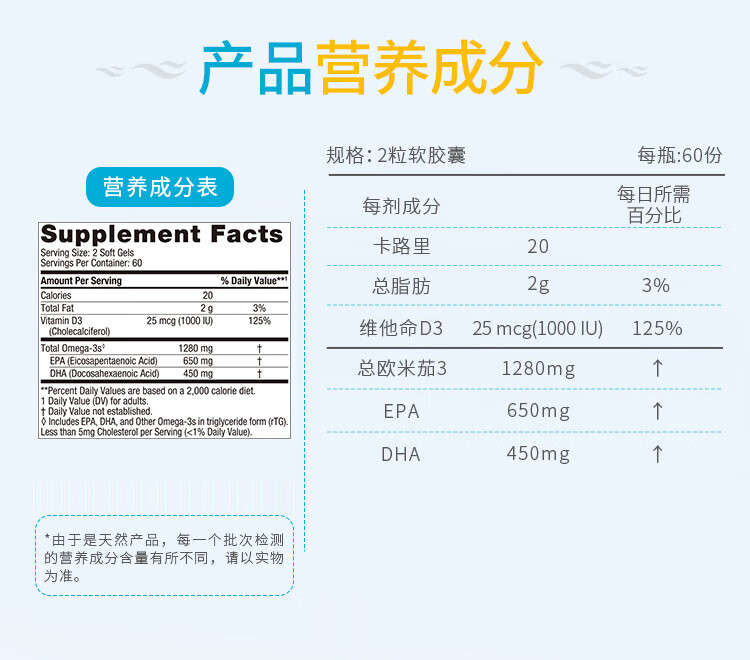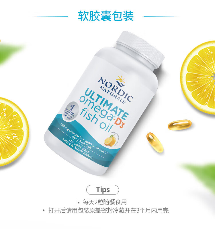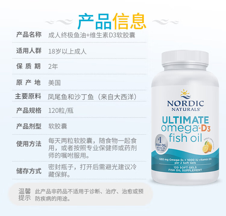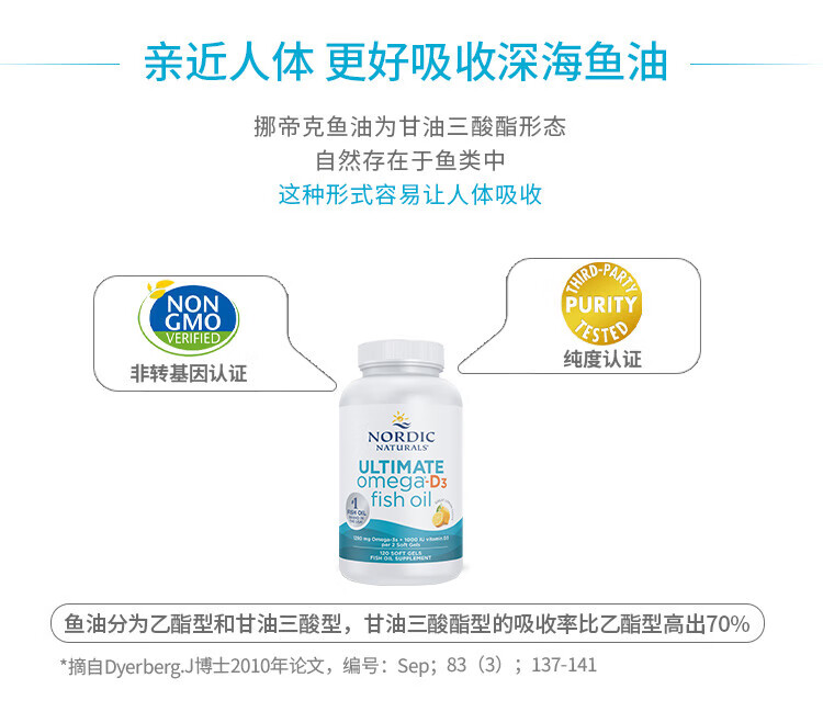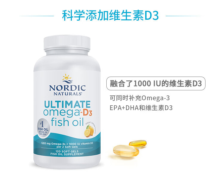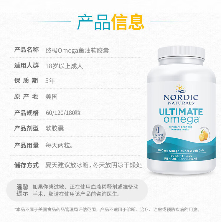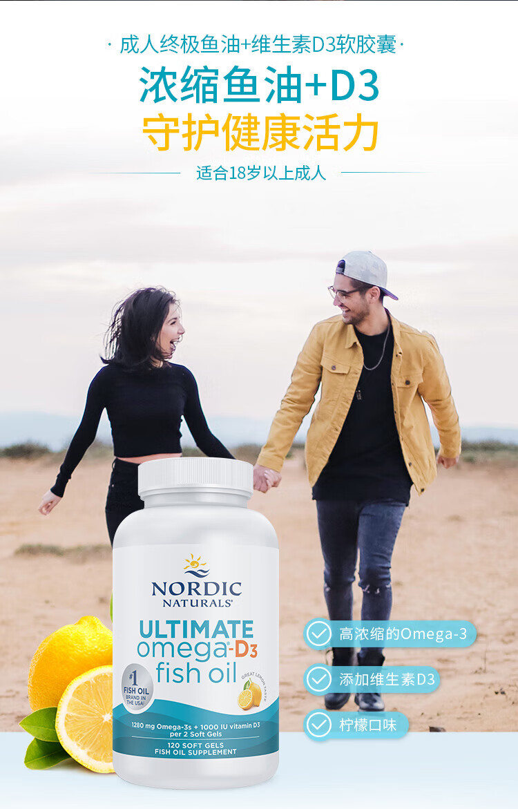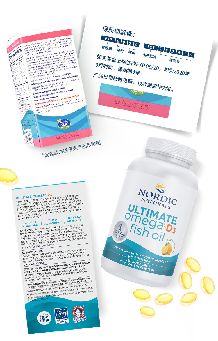 Nordic Naturals 挪帝克成人中老年DHA终极Omega3深海鱼油软胶囊美国进口 180粒*1瓶