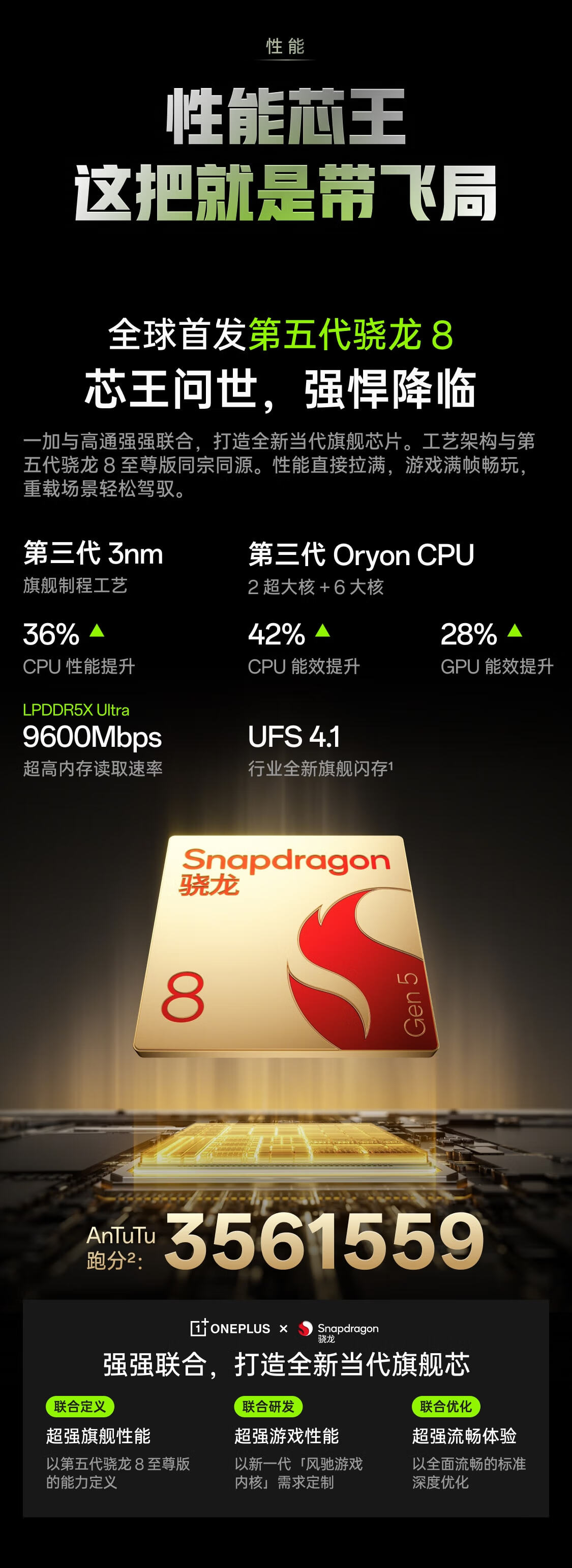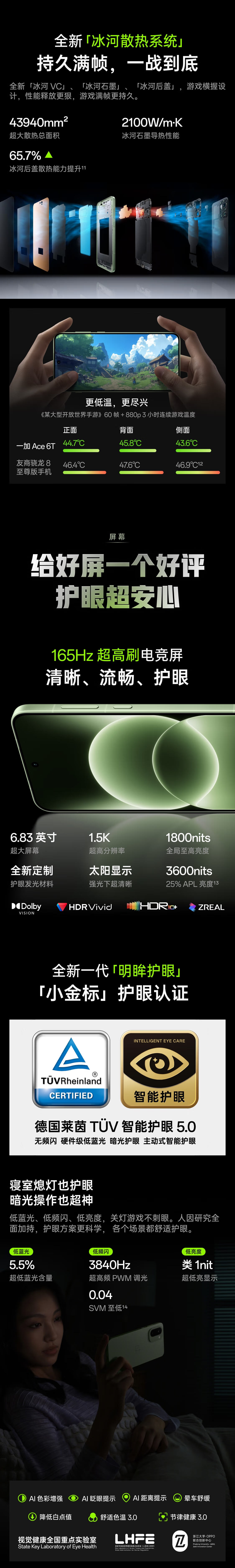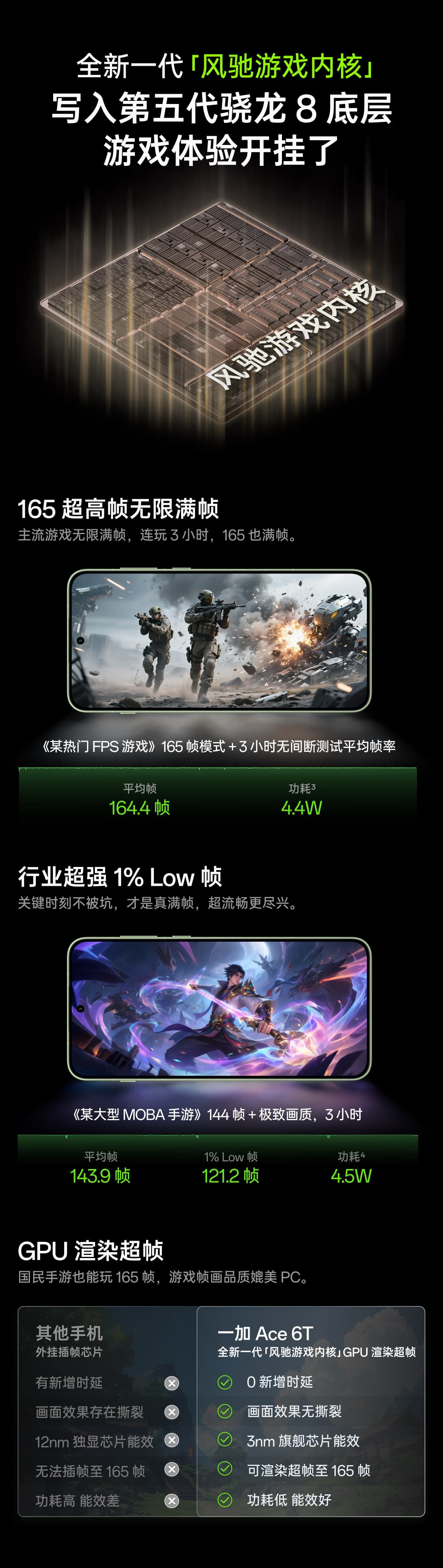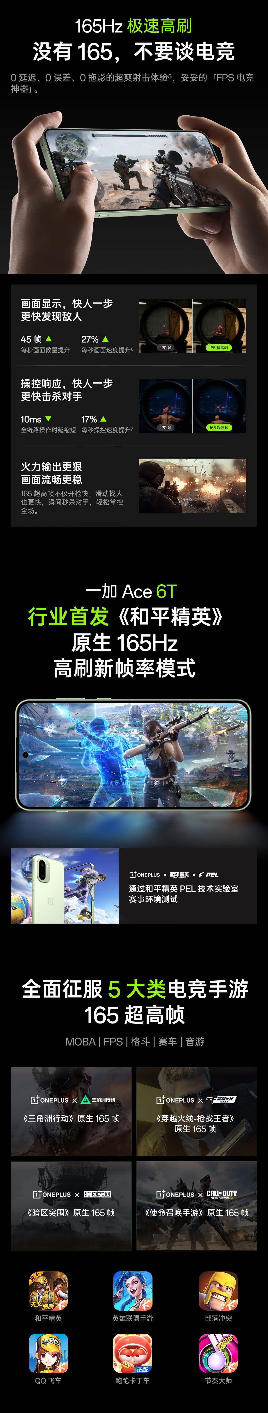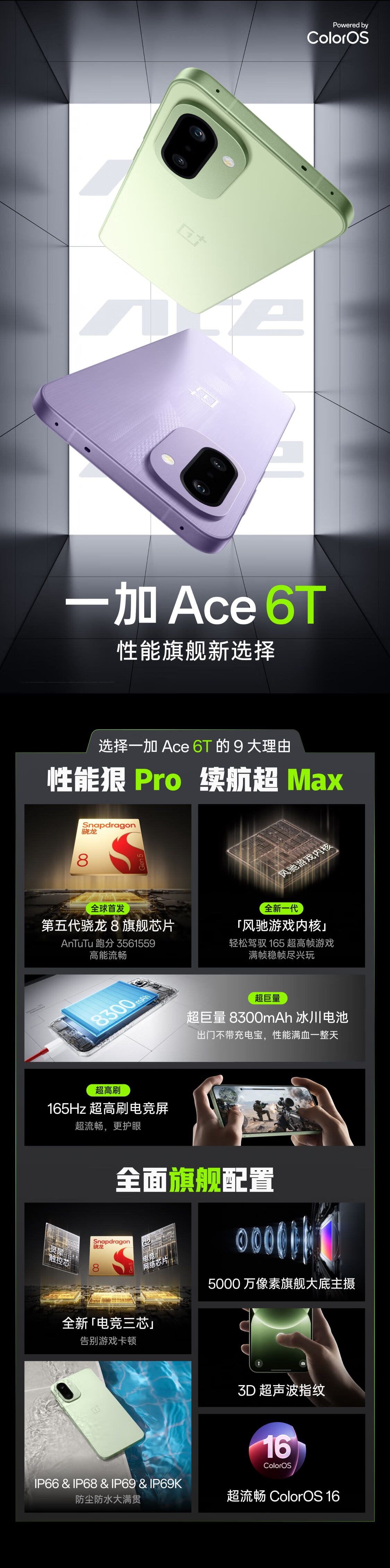 一加 Ace 6T 12GB+256GB 闪速黑 oppo 第五代骁龙 8 芯片 165Hz 超高刷电竞屏 性能旗舰AI智能游戏手机
