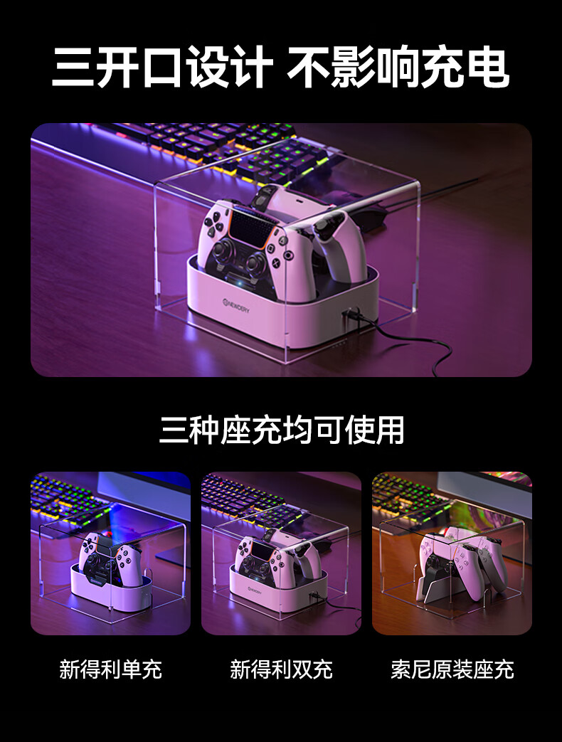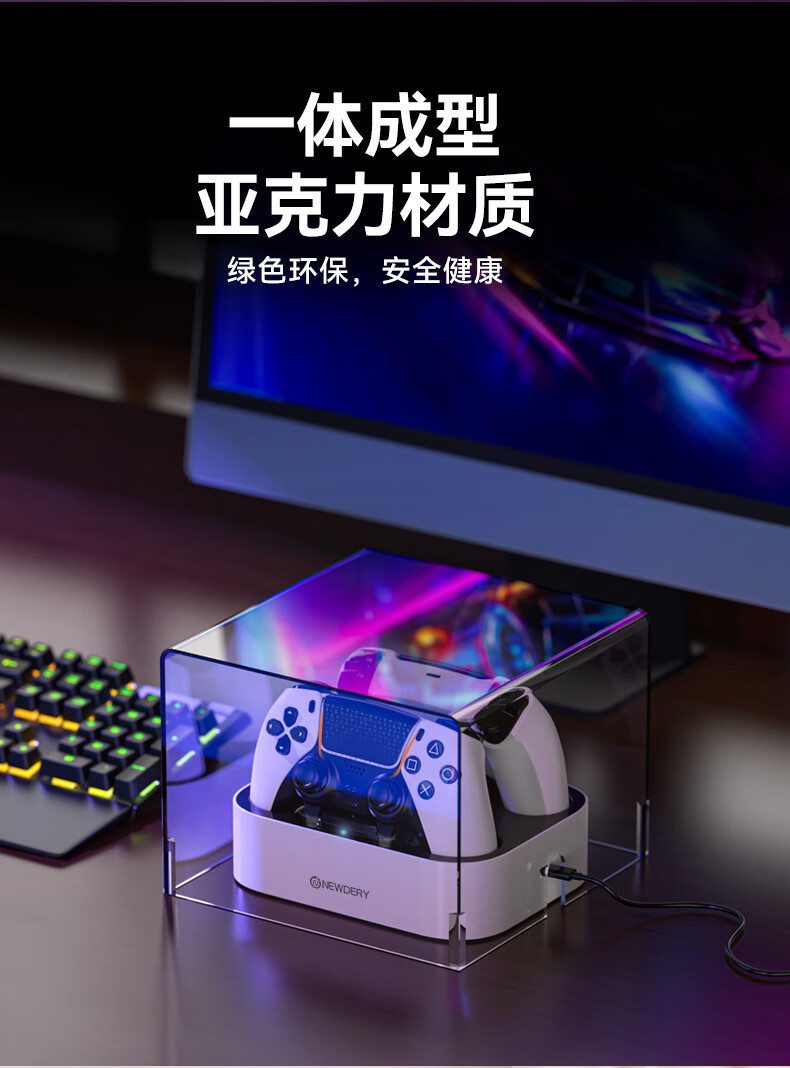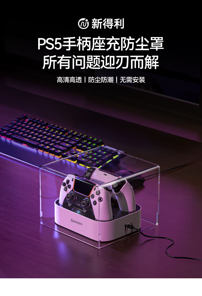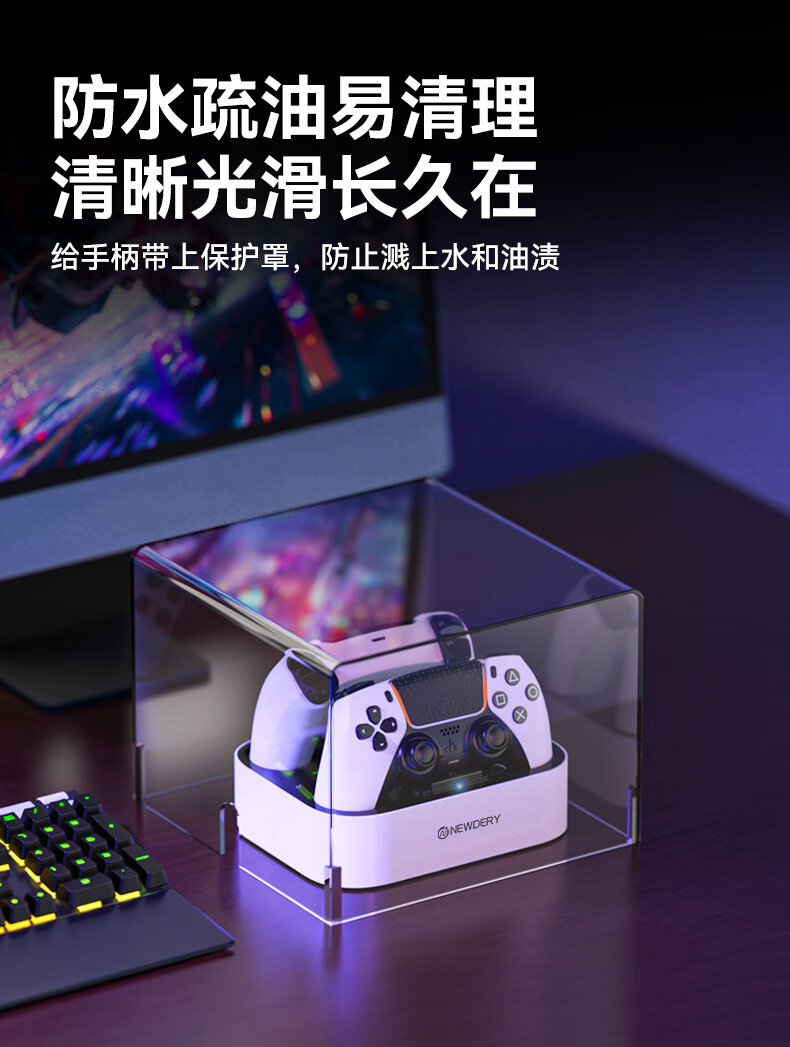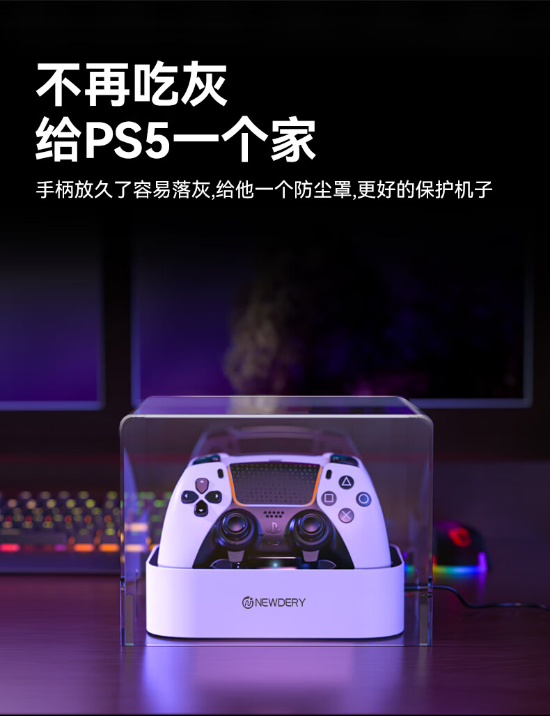 新得利PS5手柄座充防尘罩原装游戏手柄充电底座收纳盒透明亚克力保护壳支架一体式免安装罩子配件 亚克力丨PS5手柄防尘罩【一体免安装/高清高透】