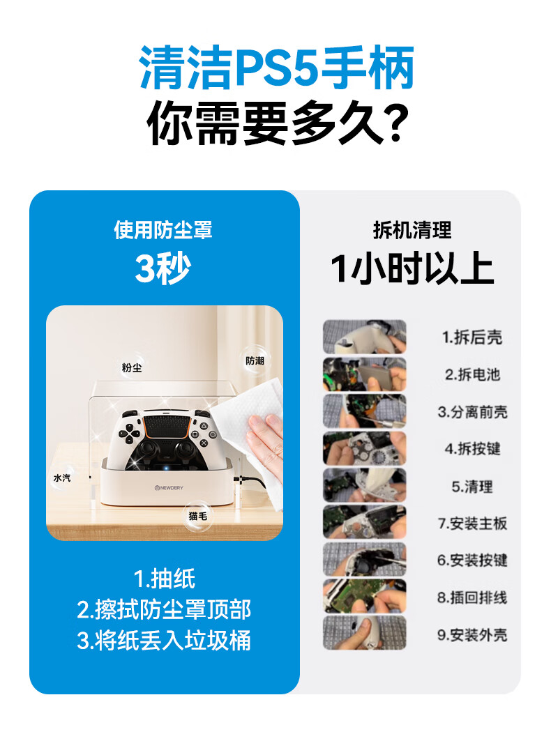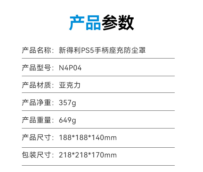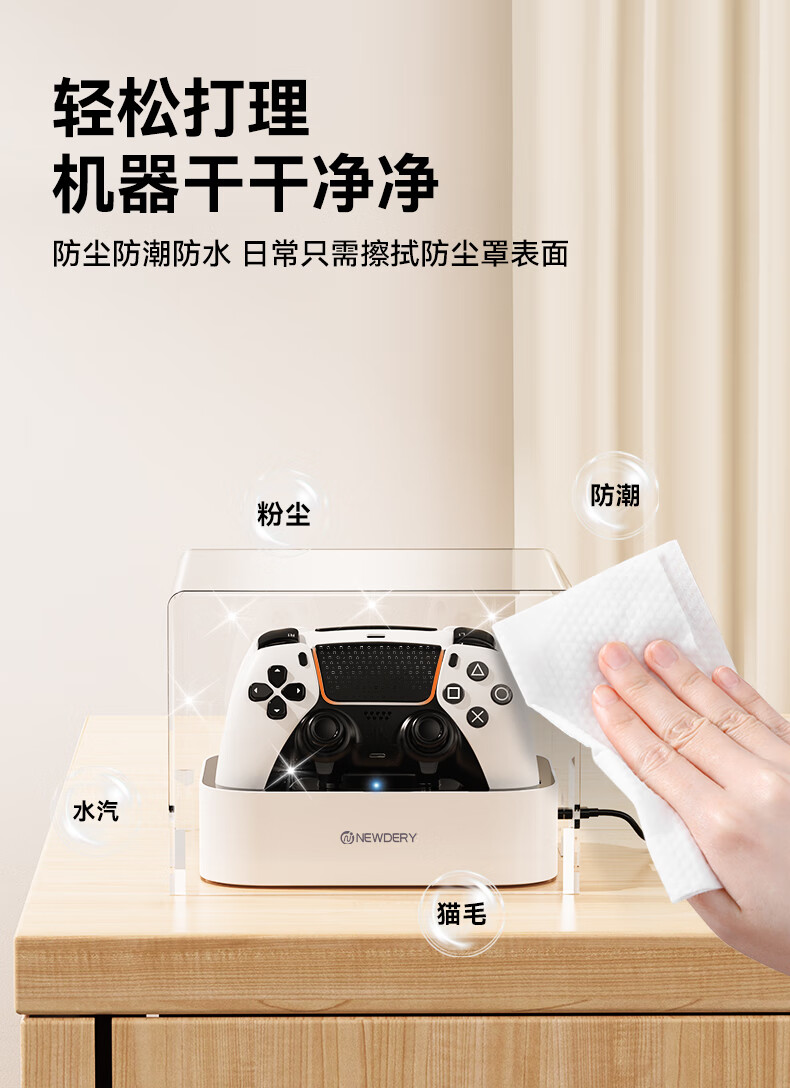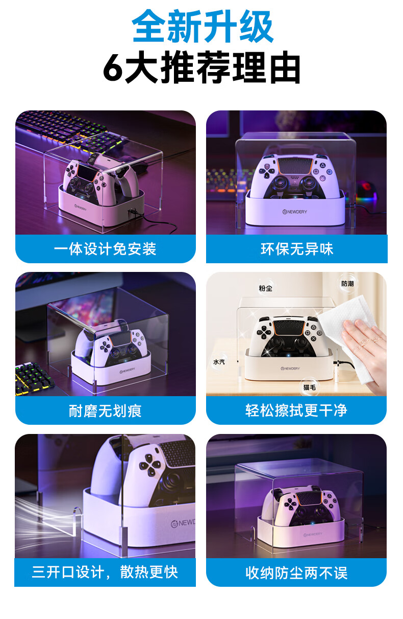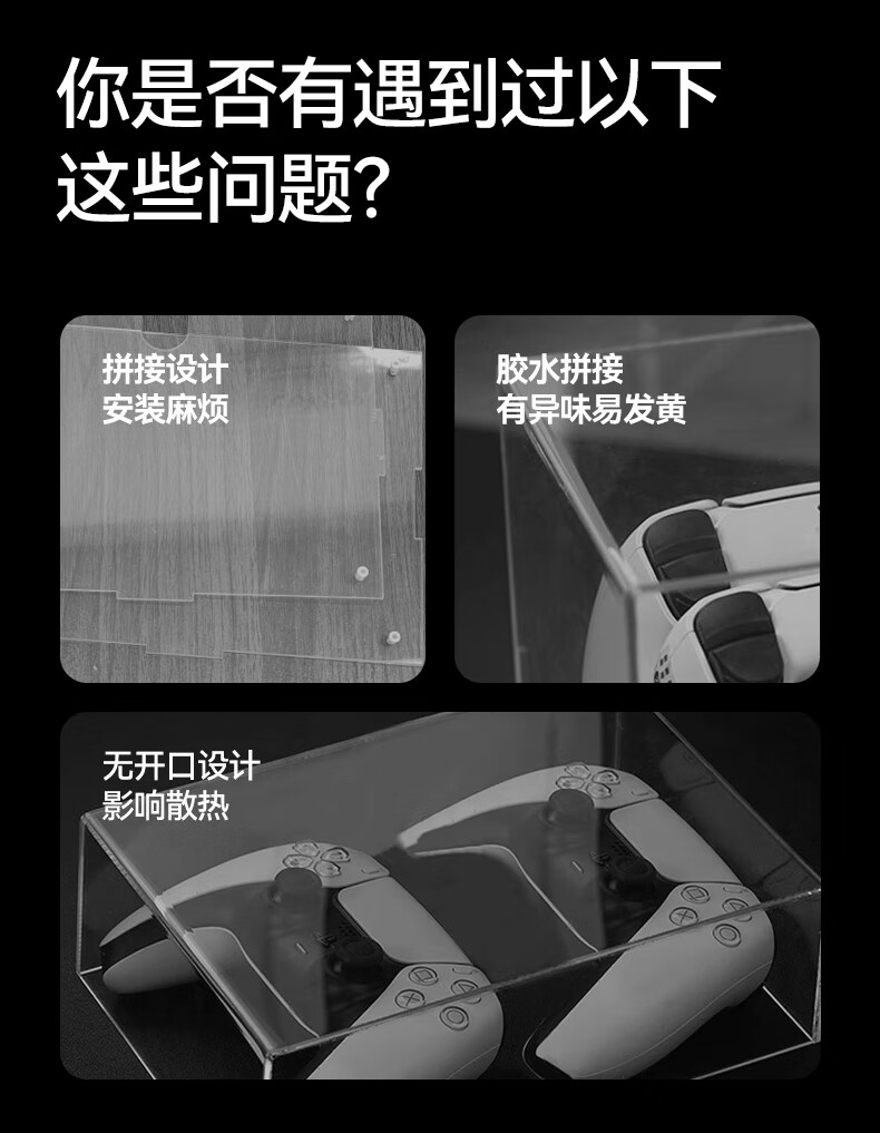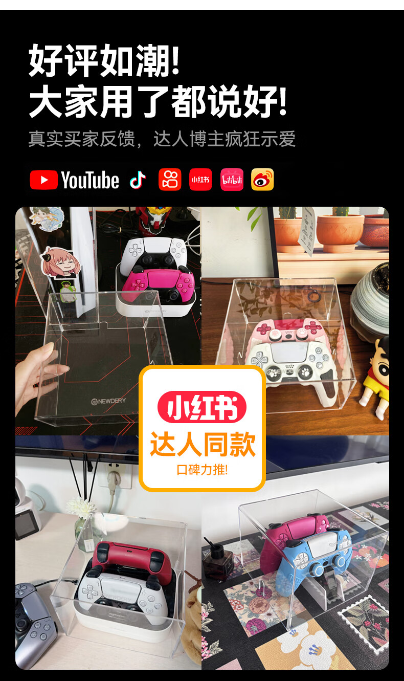 新得利PS5手柄座充防尘罩原装游戏手柄充电底座收纳盒透明亚克力保护壳支架一体式免安装罩子配件 亚克力丨PS5手柄防尘罩【一体免安装/高清高透】