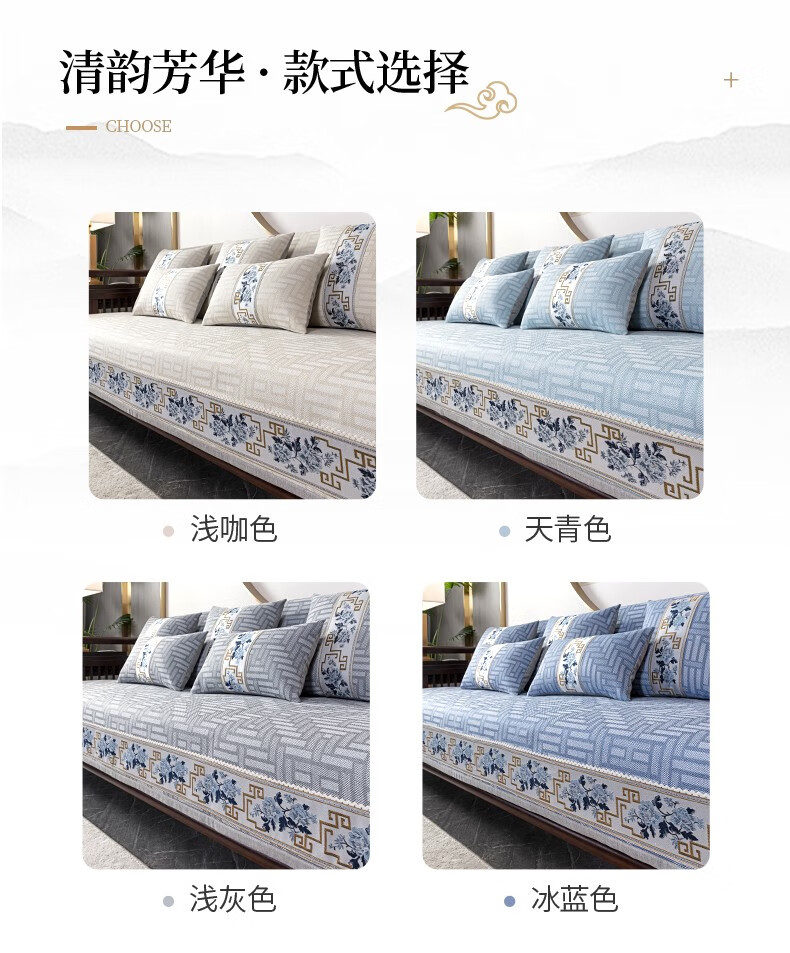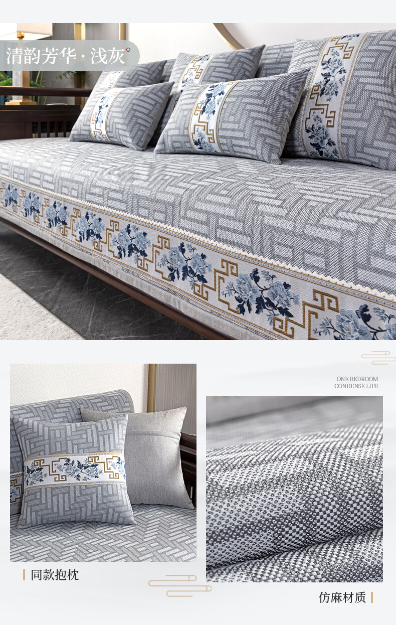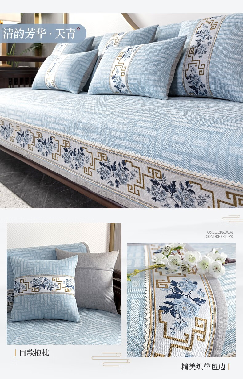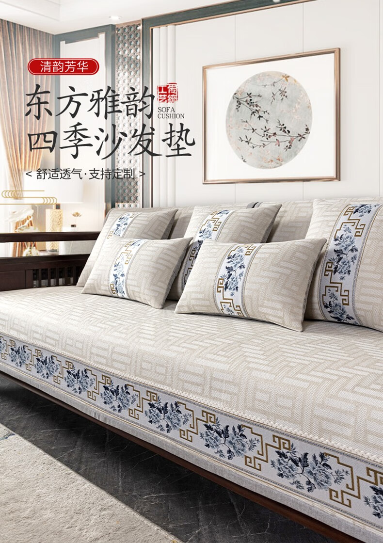 索菲娜 新中式沙发垫坐垫防滑三座一贵妃沙发罩巾四季红木沙发垫子 yd清韵芳华-浅咖色 宽110*长210cm一片