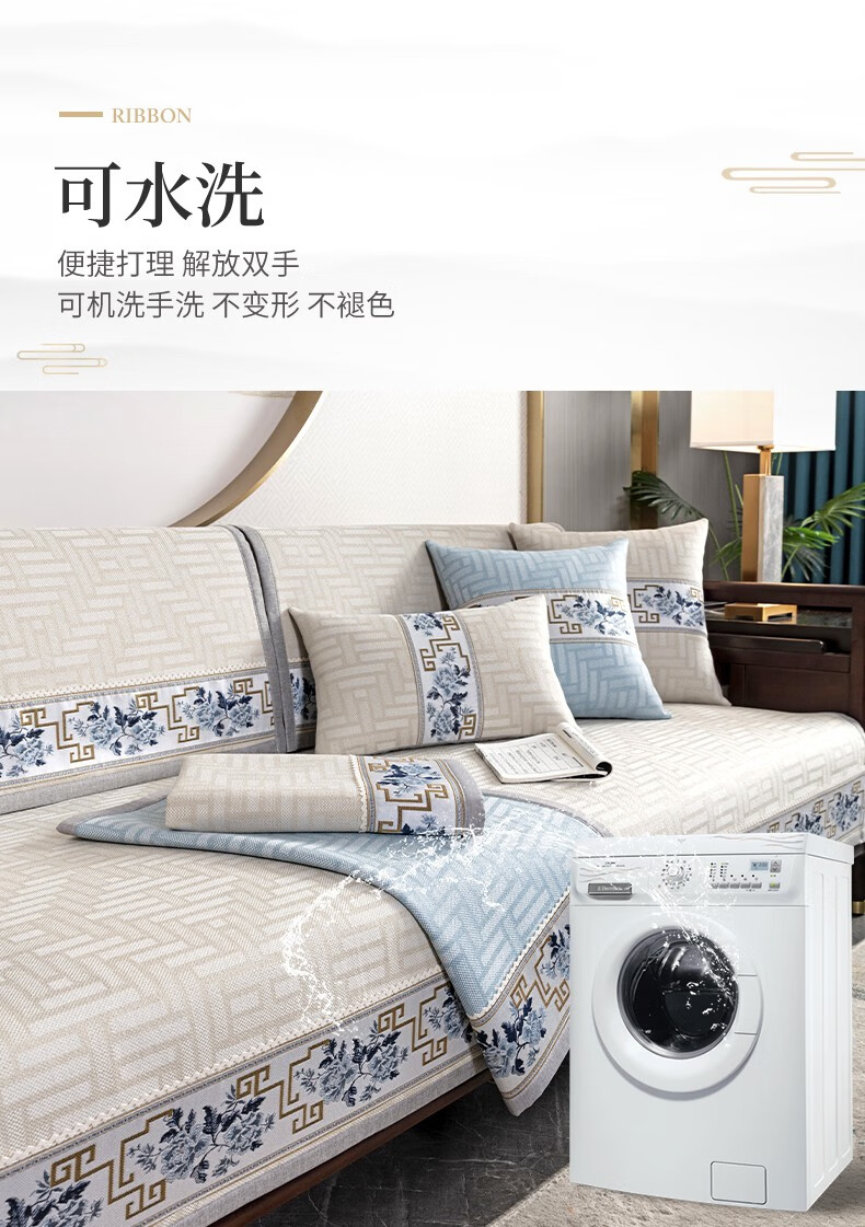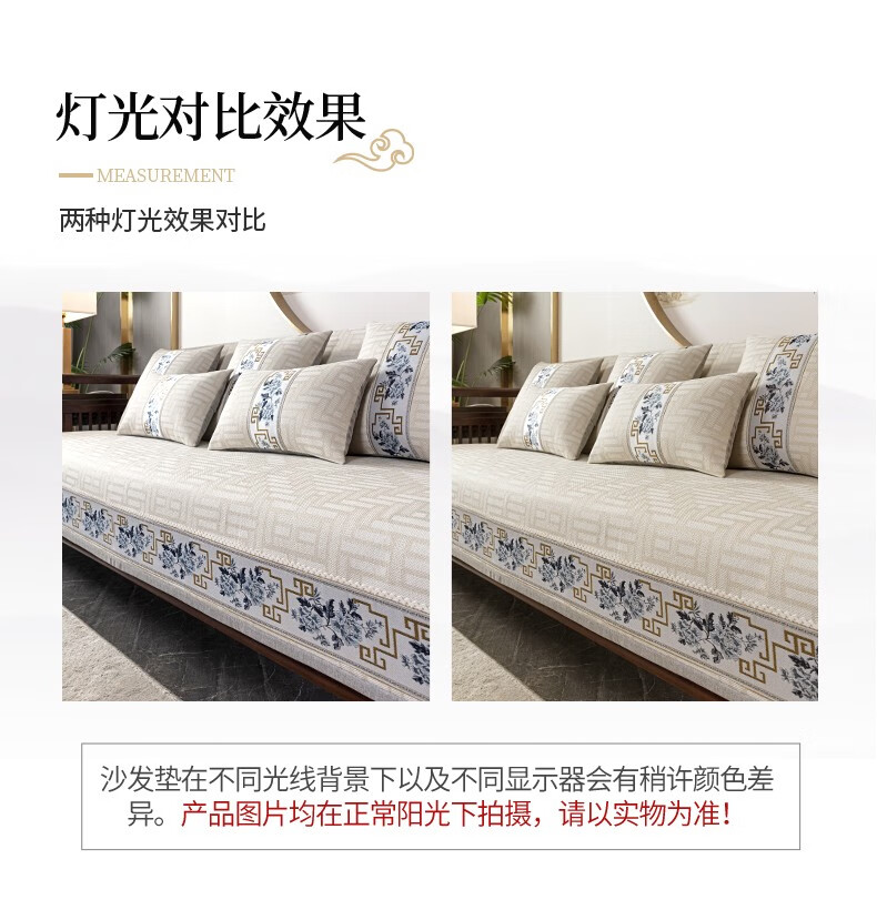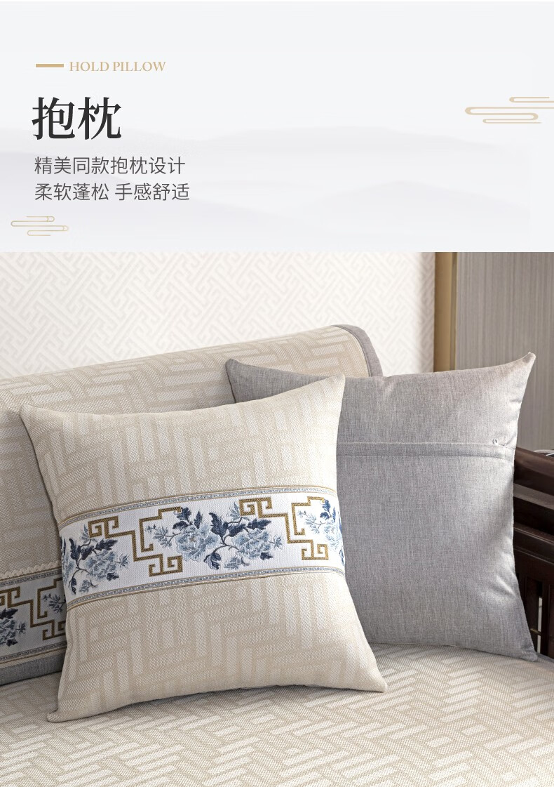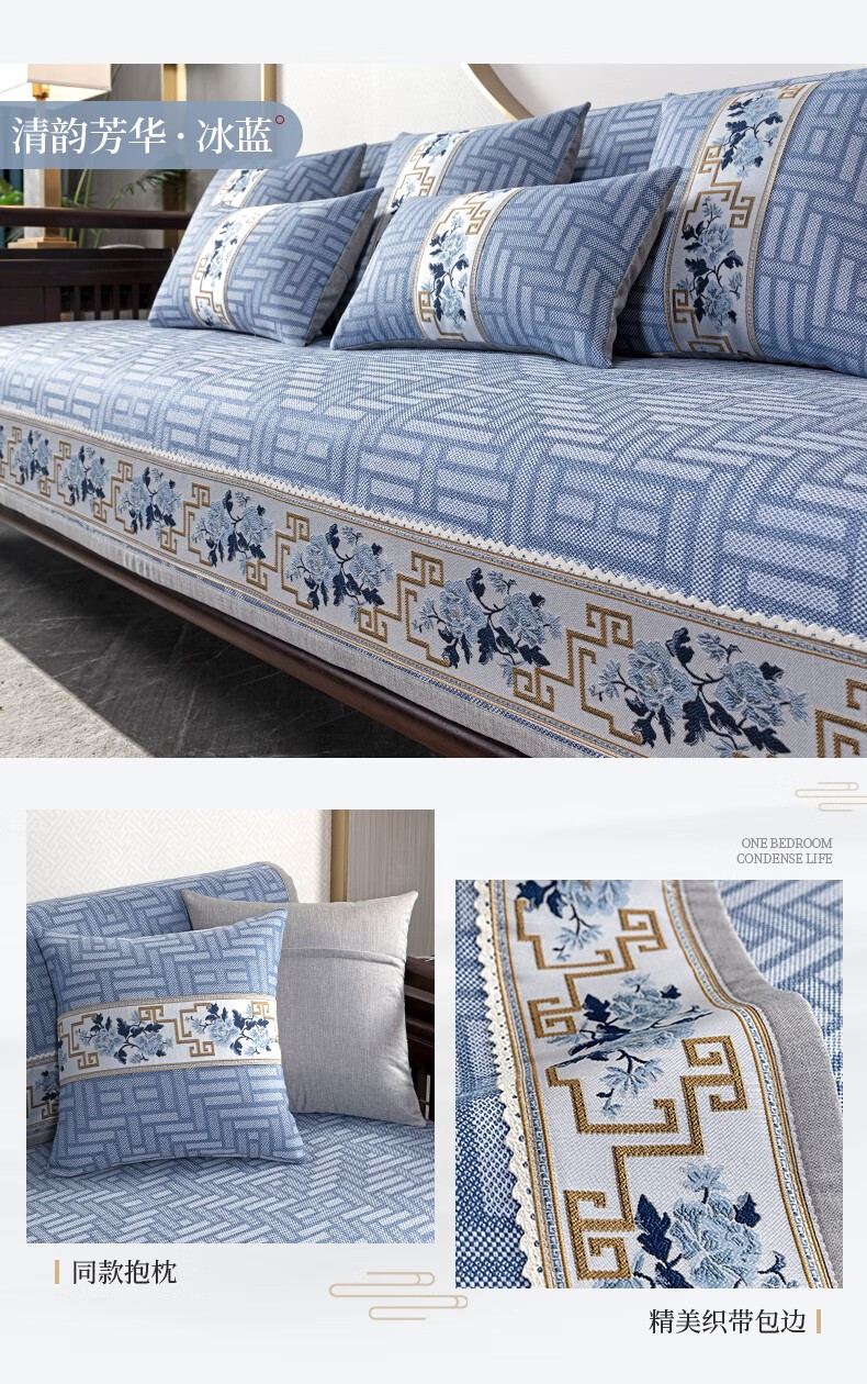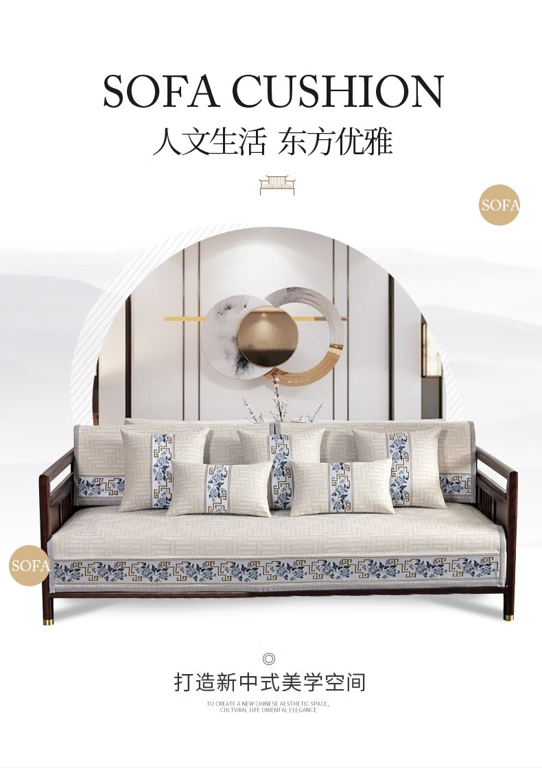 索菲娜 新中式沙发垫坐垫防滑三座一贵妃沙发罩巾四季红木沙发垫子 yd清韵芳华-浅咖色 宽110*长210cm一片