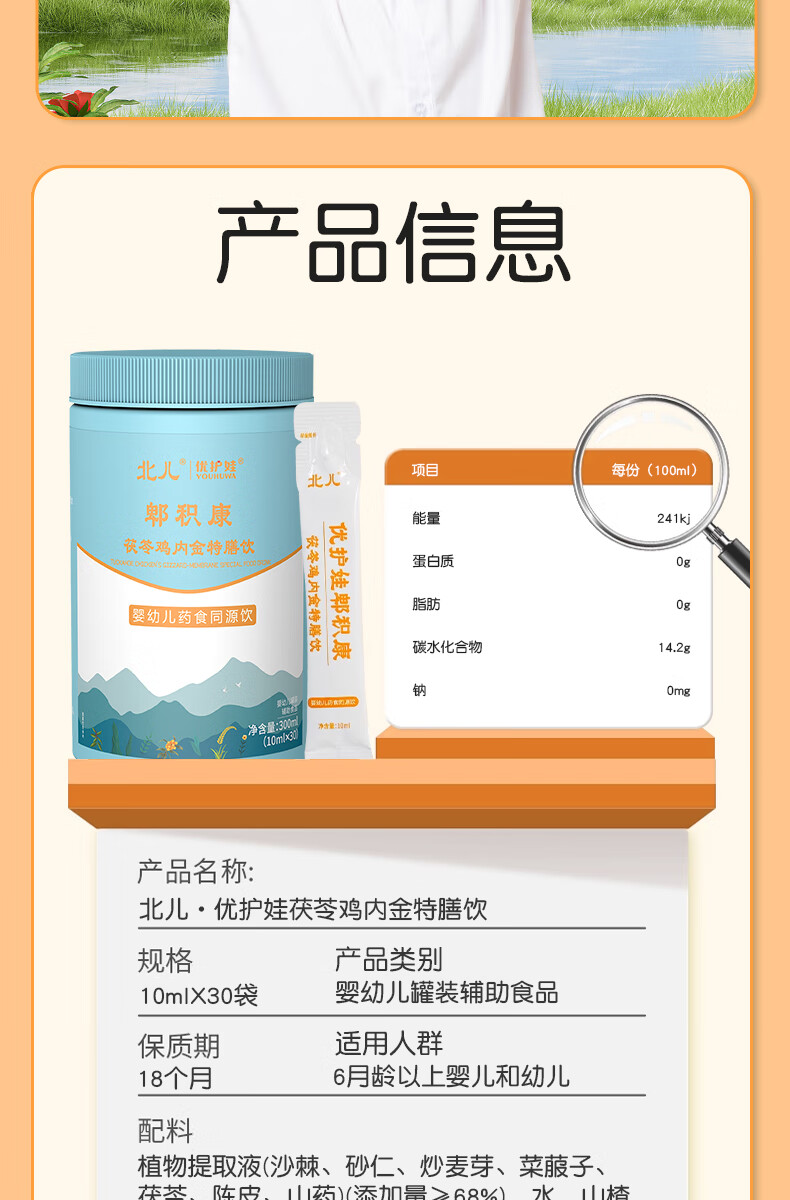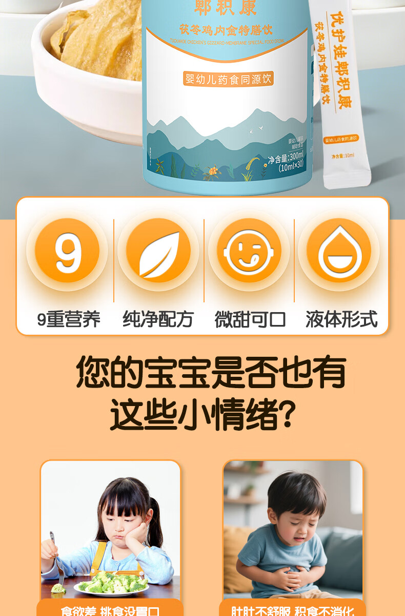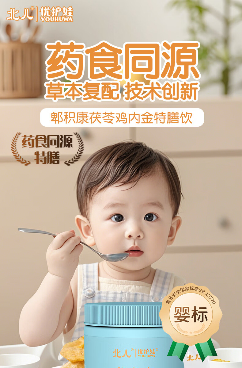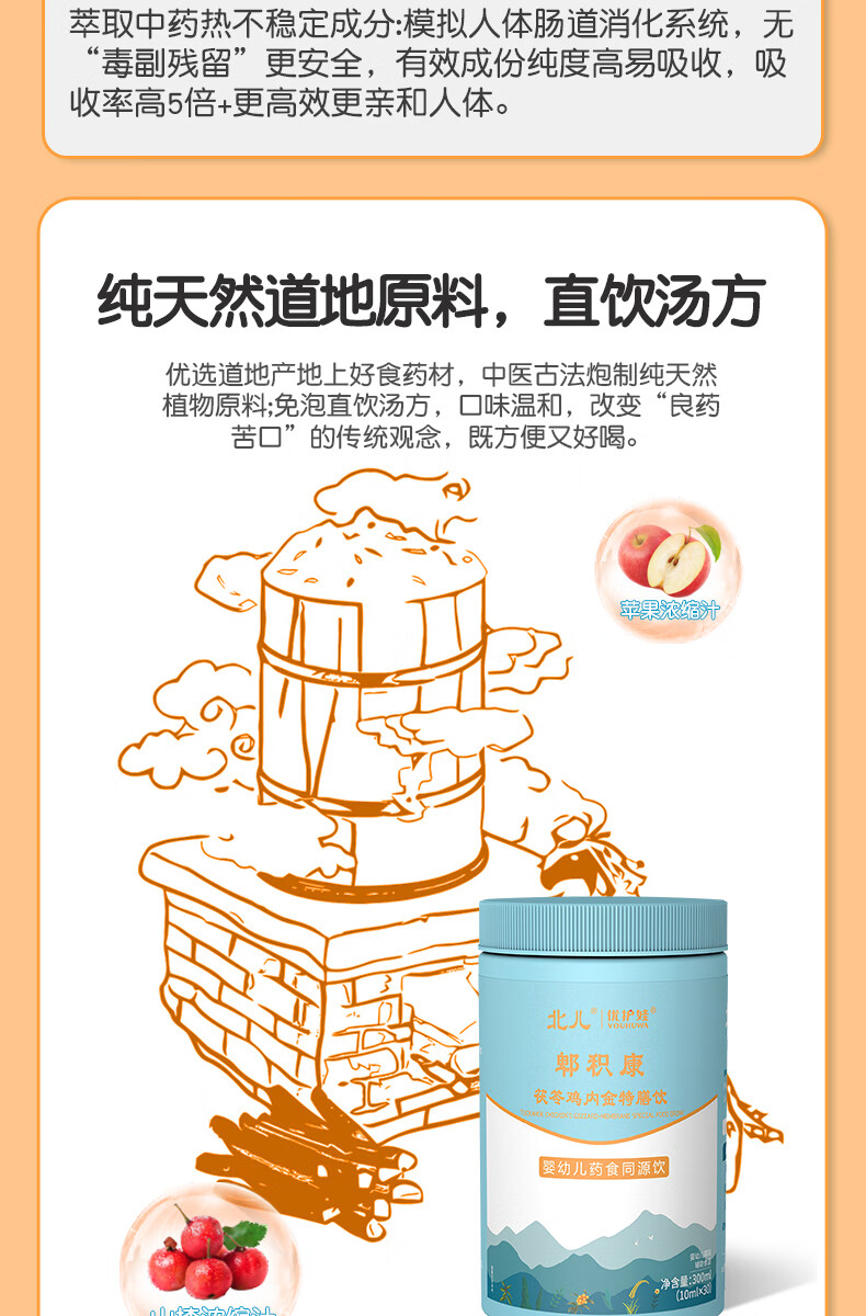 北儿优护娃 郫积康 儿童积食 消化不好 茯苓山楂鸡内金特膳饮中药食品 郫积康 茯苓鸡内金【满额赠玩具】 30条*1罐