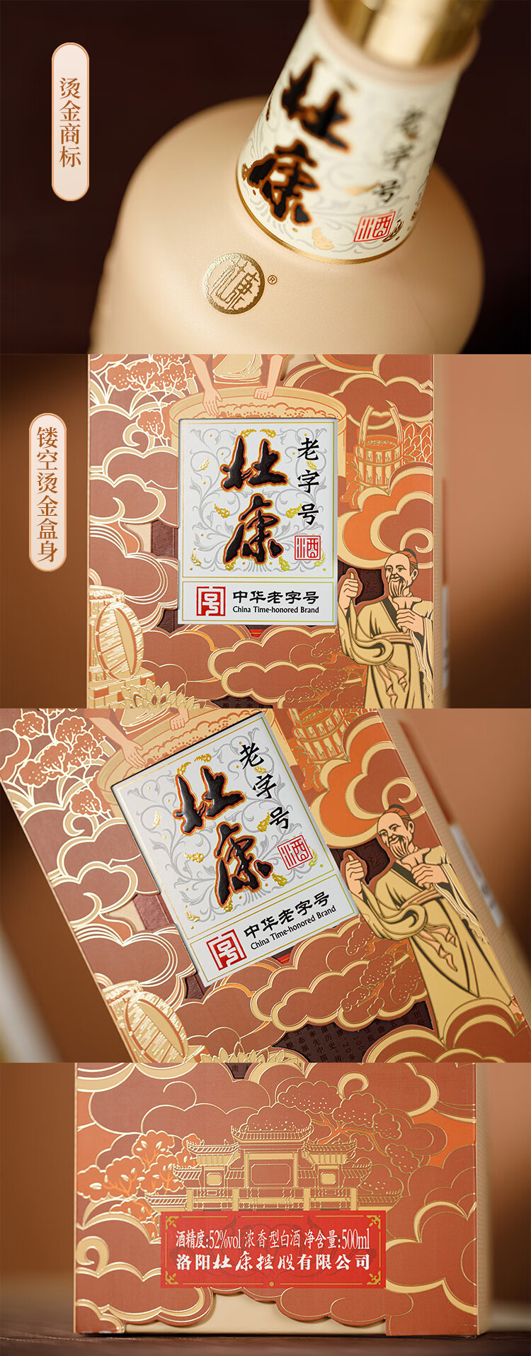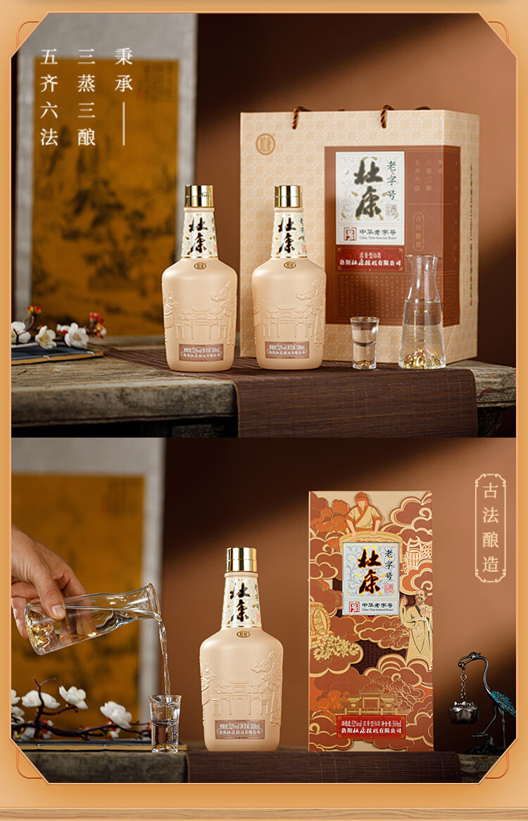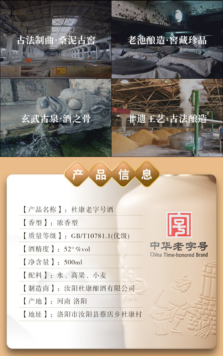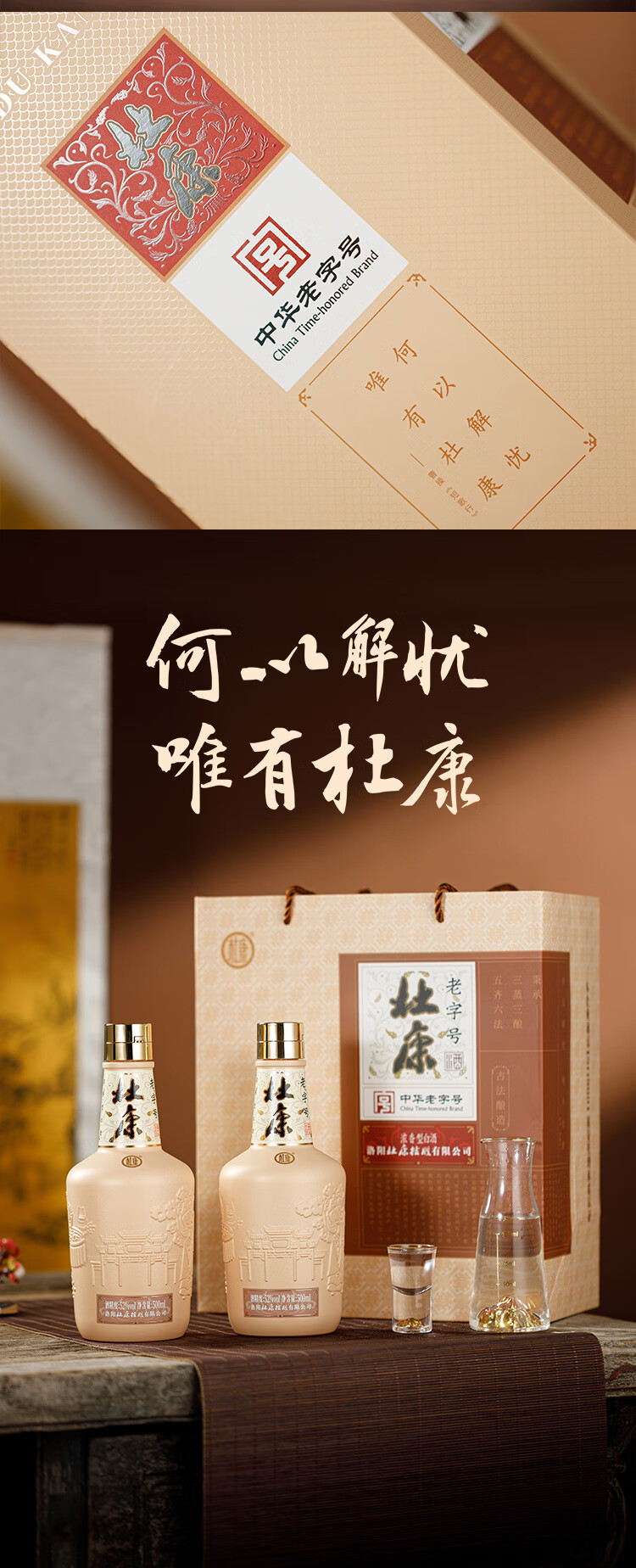 杜康中华老字号52度浓香型白酒 纯粮酿造 送礼宴请婚宴酒 52度 500mL 6瓶 整箱装