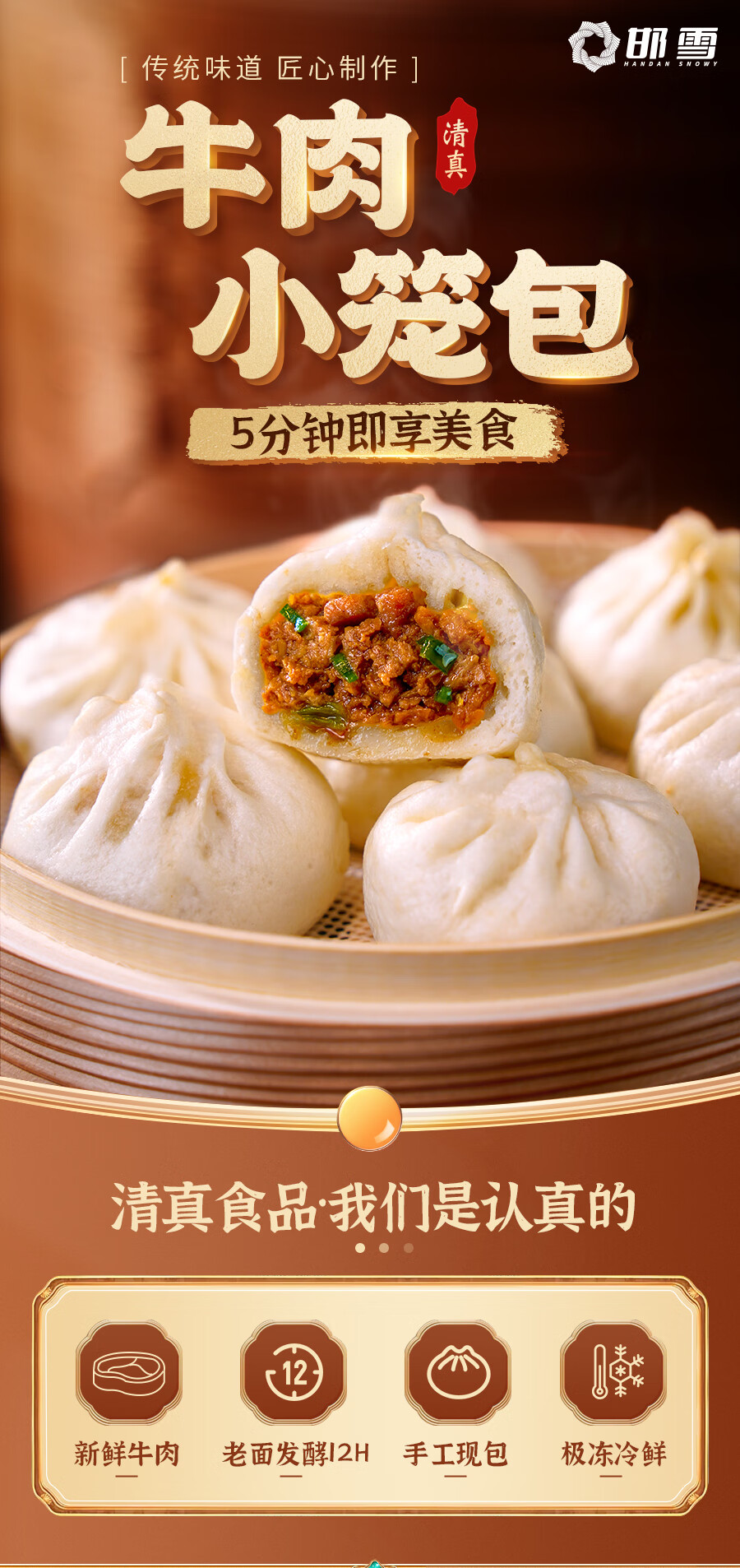邯雪食品【到手十包】清真牛肉小笼包正宗老面美味速冻早餐半成品早饭包子 50个 老面小笼包*10袋