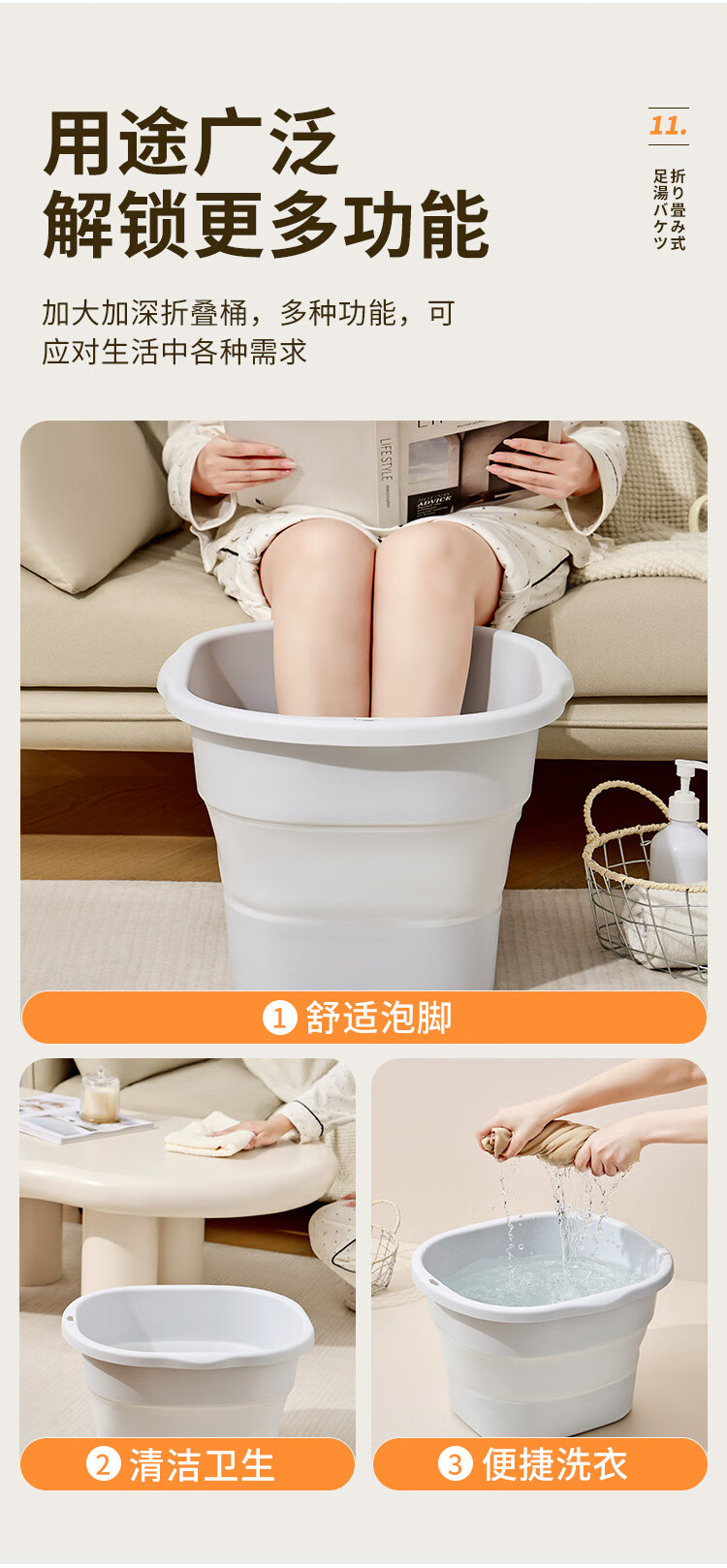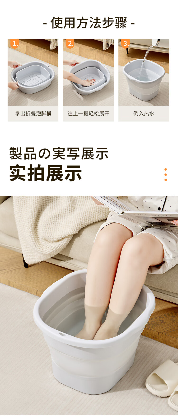 Imakara洗脚泡脚盆足浴盆过膝折叠泡脚桶可折叠过小腿高深桶塑料女士专用 可折叠家用洗脚泡脚桶女士男士专用