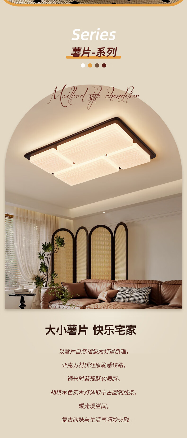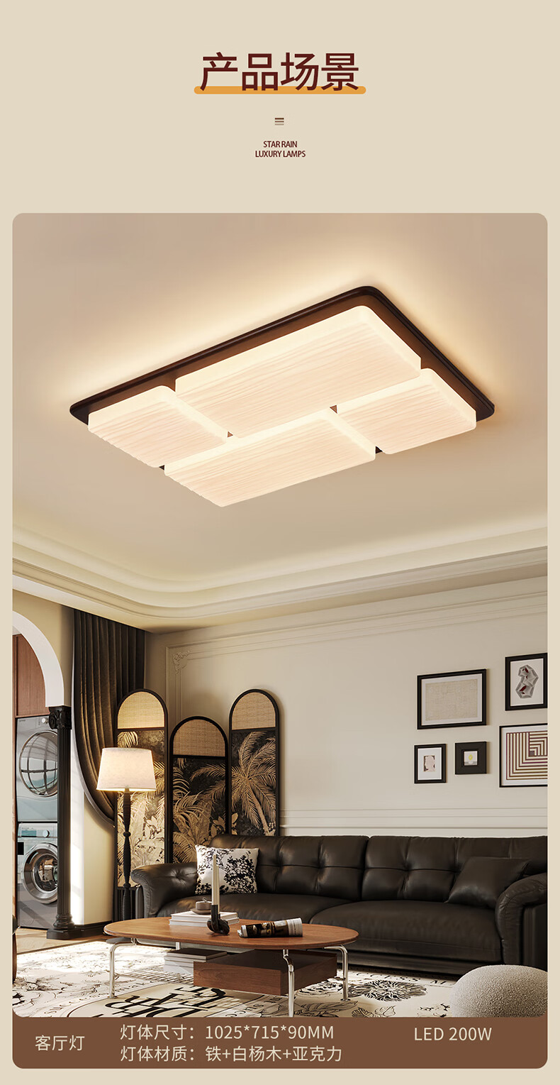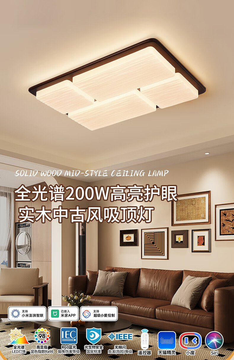 雷士(NVC)中古风led护眼高亮客厅吸顶灯创意新款全屋灯具新中式卧室书房灯 【智能调光】薯片全光谱200W客厅灯