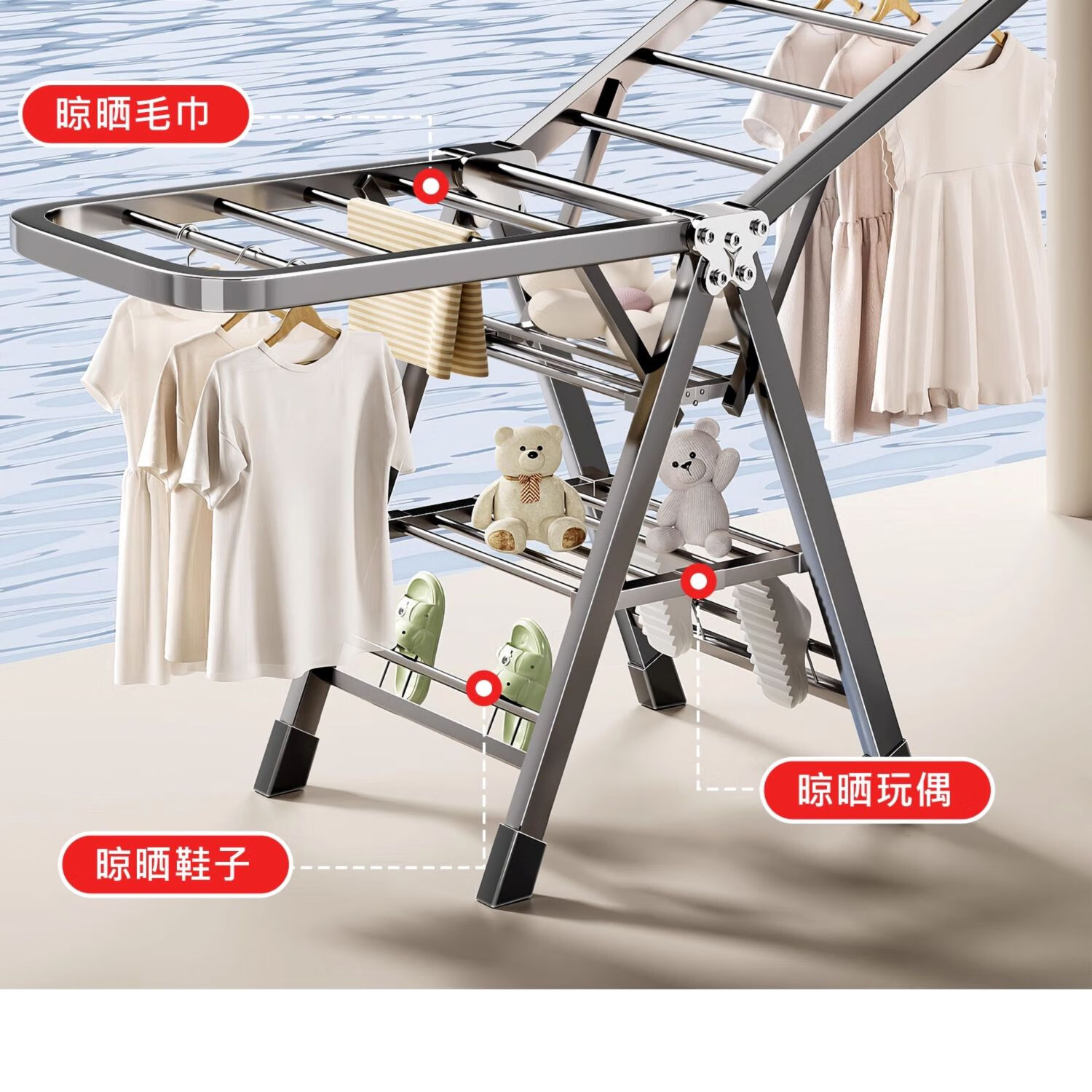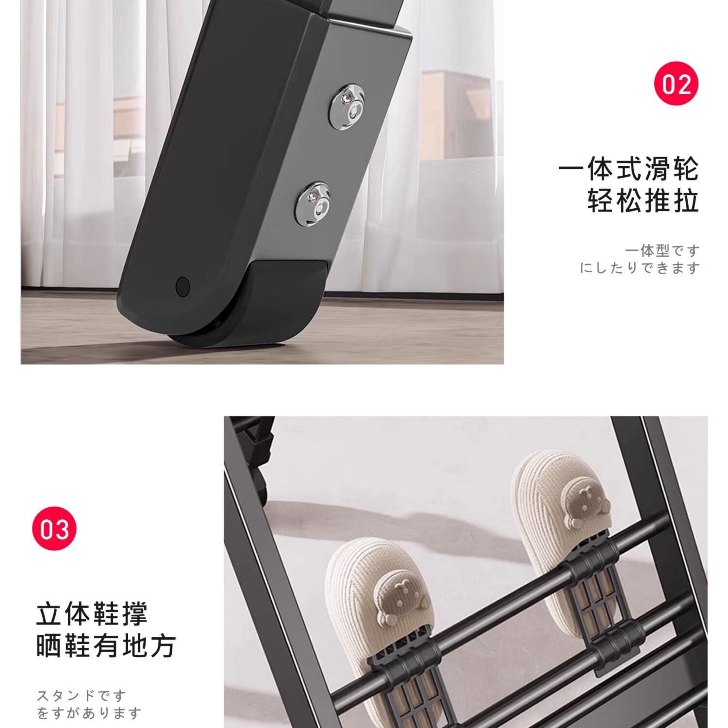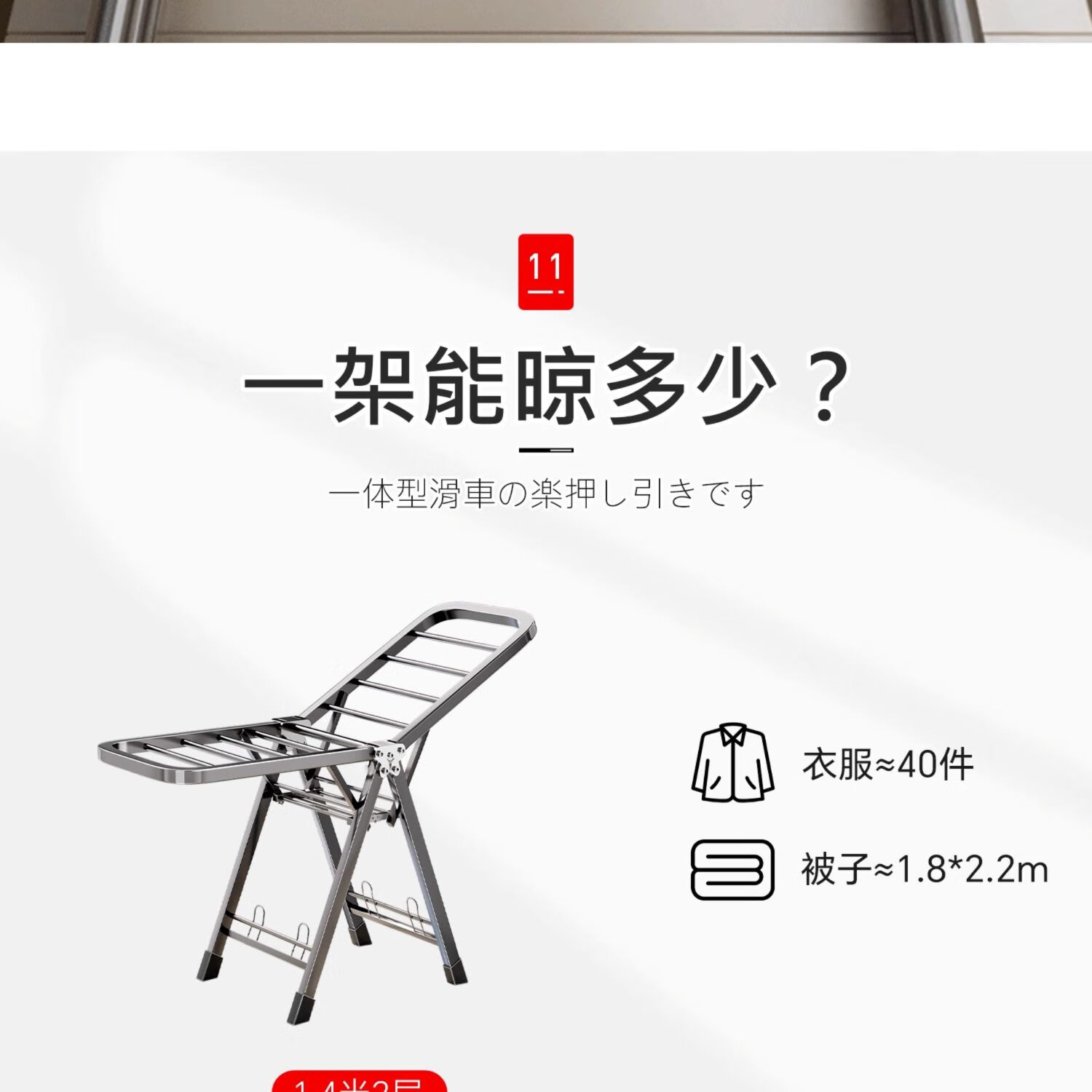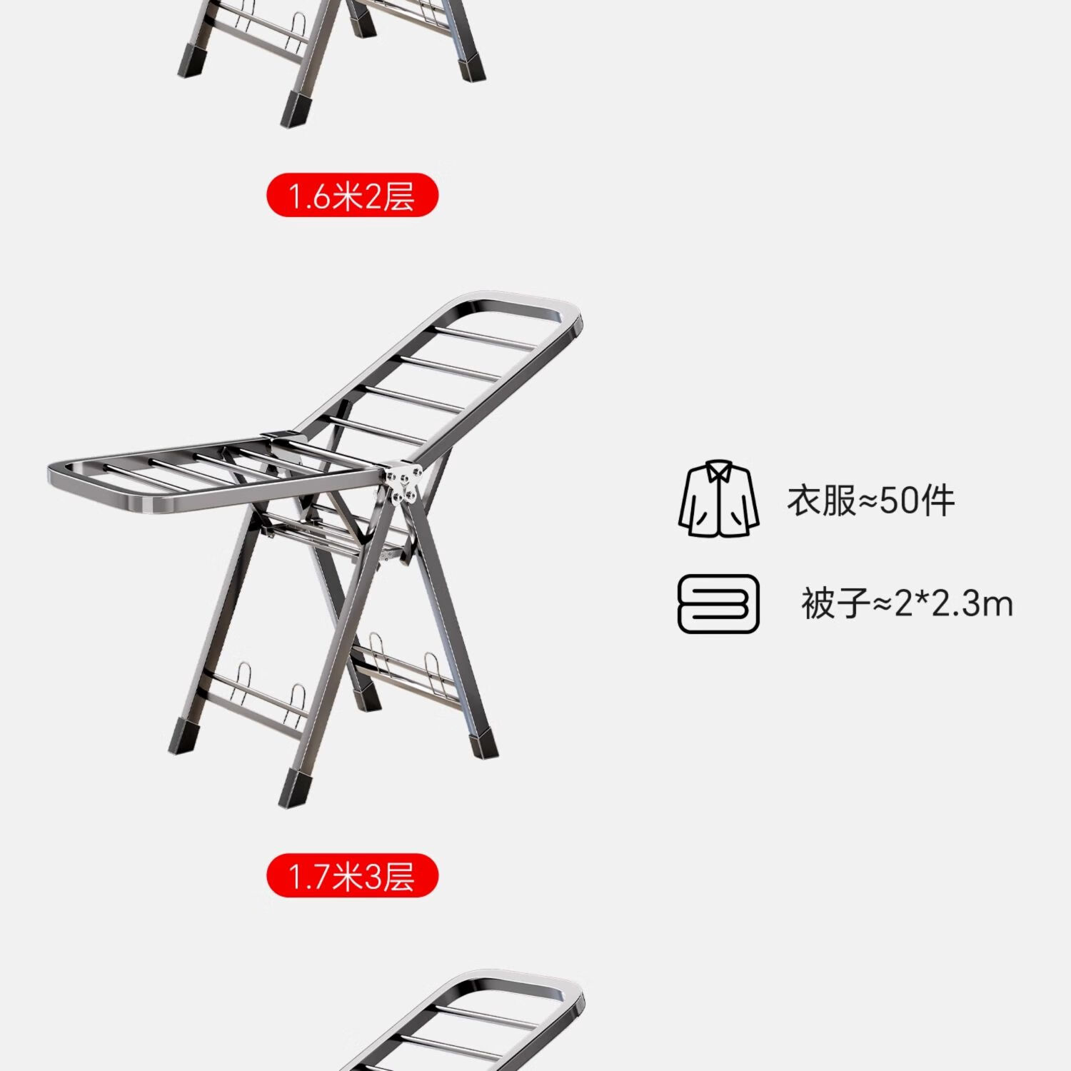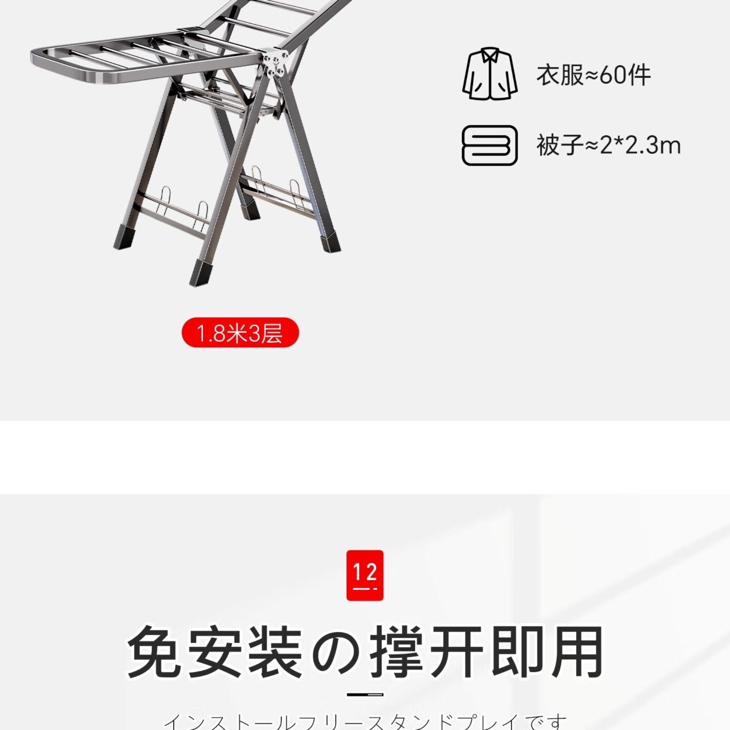 吱凡日本折叠晾衣架落地阳台家用室内晒衣服被子神器式可晾晒衣架杆子 【星耀黑】1.8米-3层+鞋托