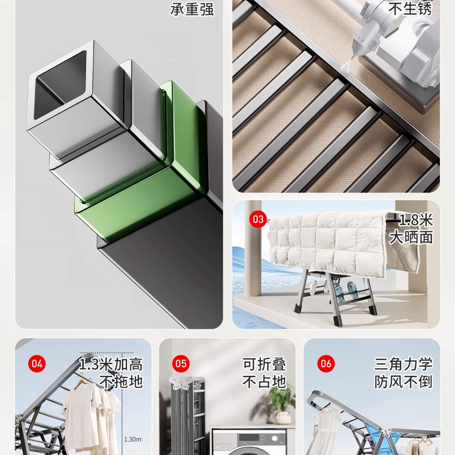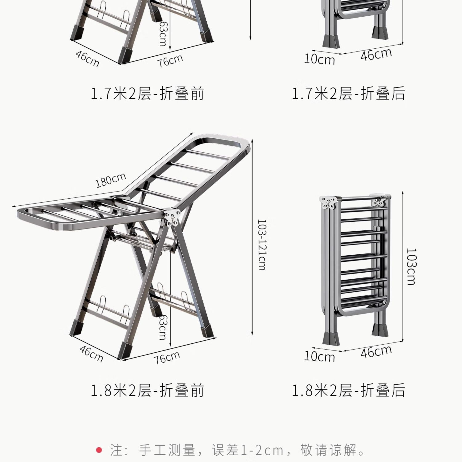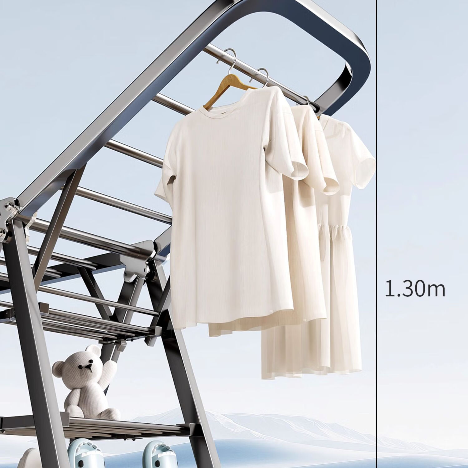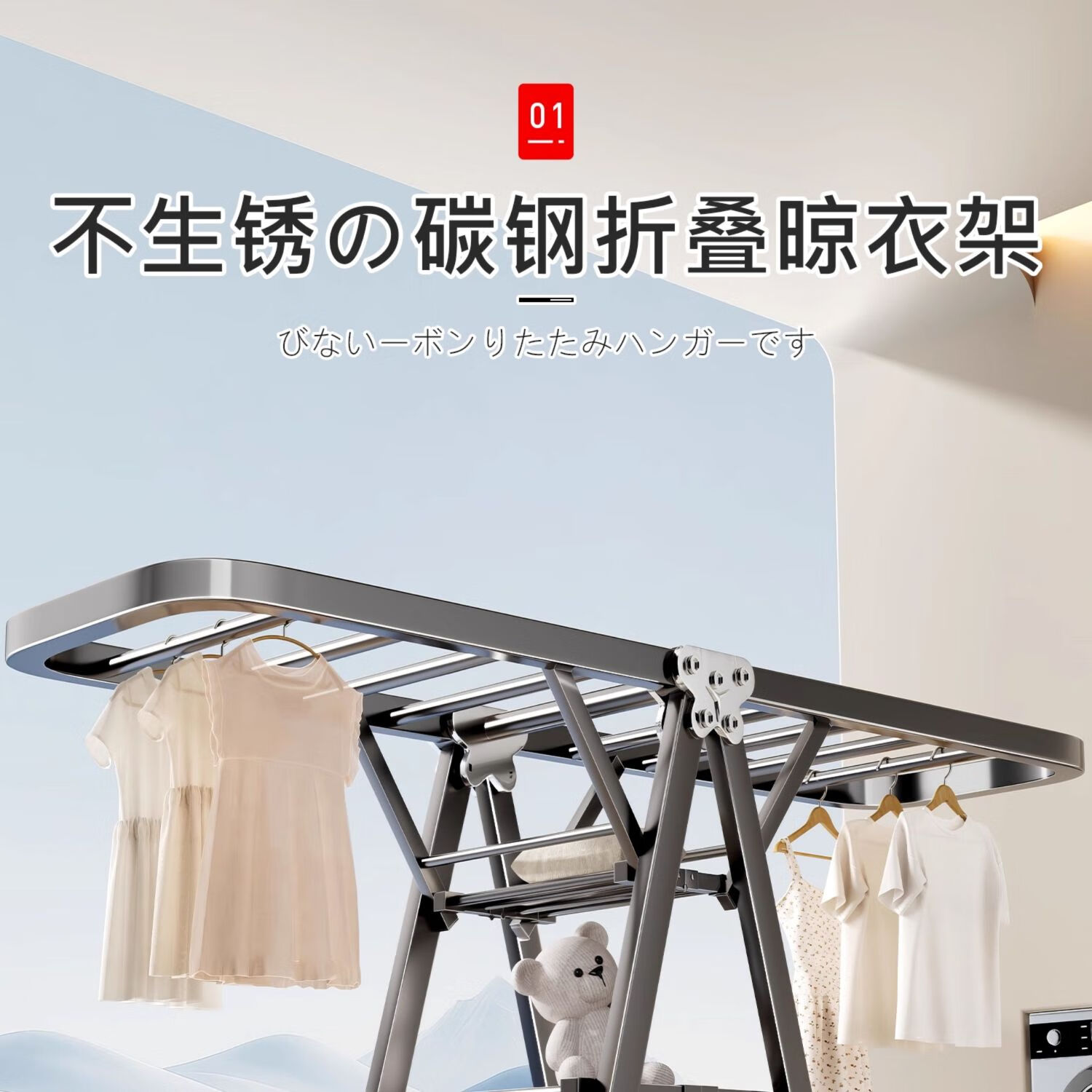 吱凡日本折叠晾衣架落地阳台家用室内晒衣服被子神器式可晾晒衣架杆子 【星耀黑】1.8米-3层+鞋托