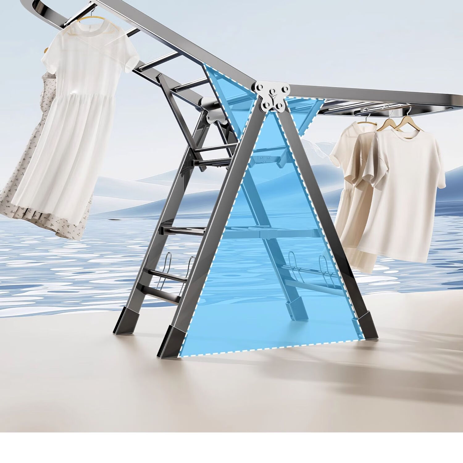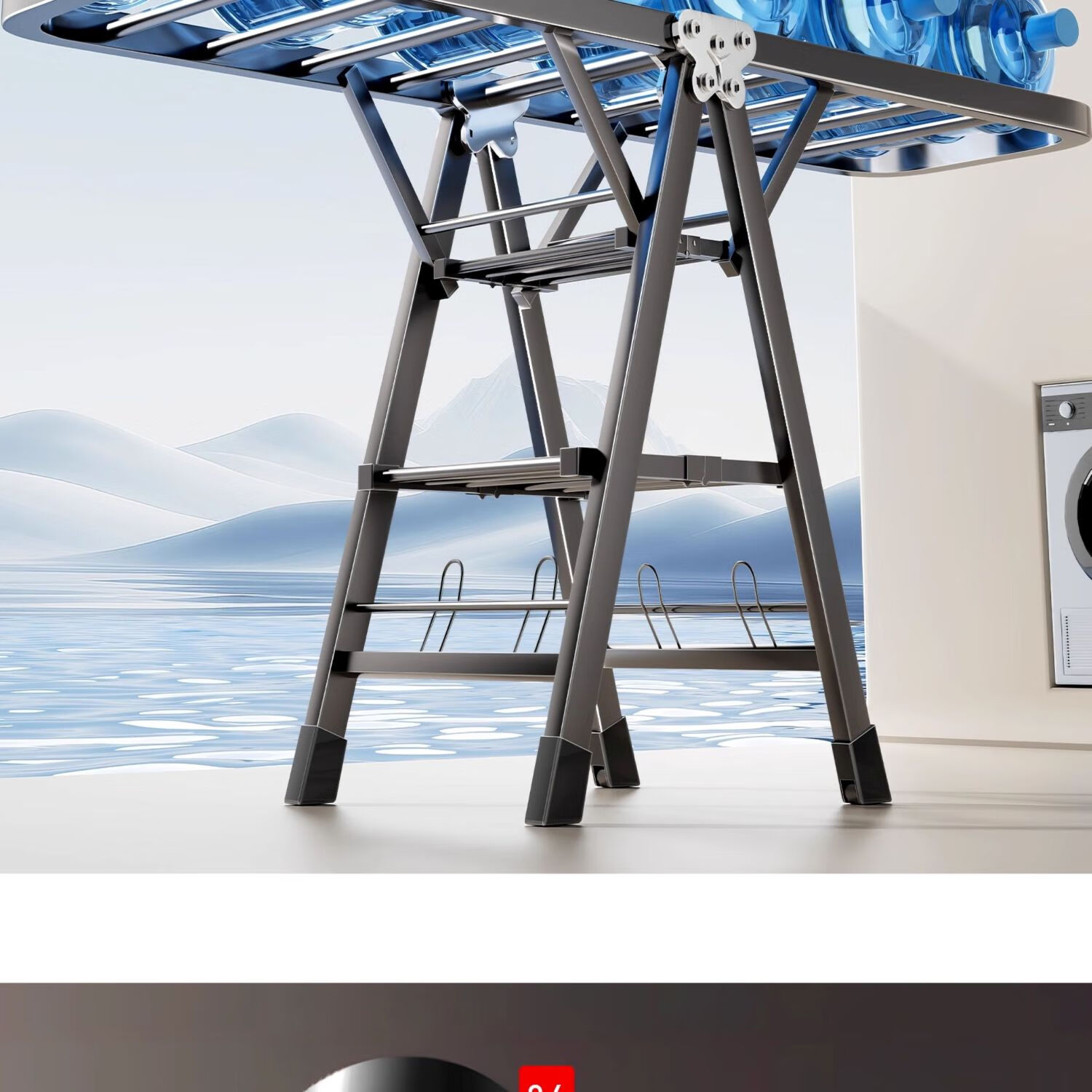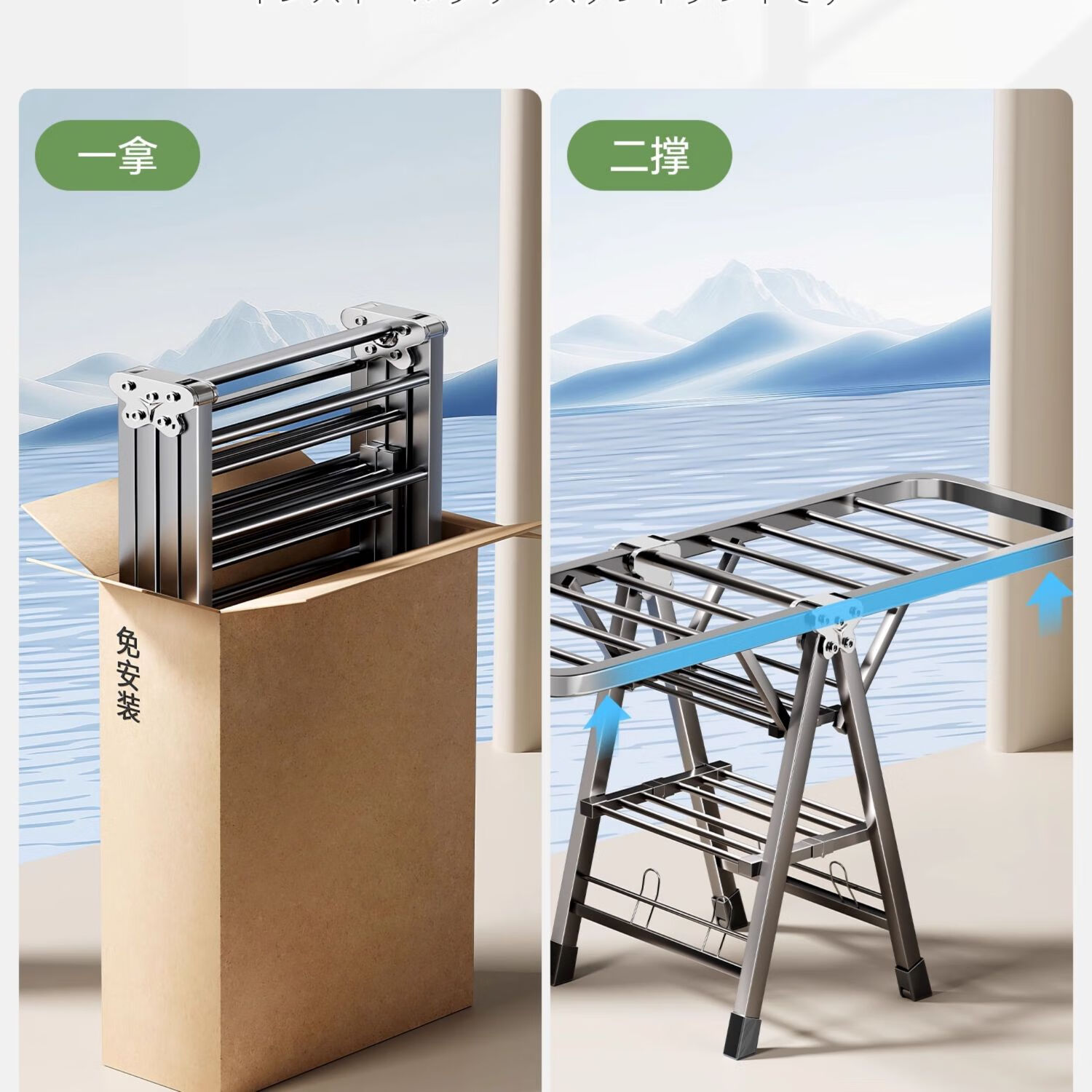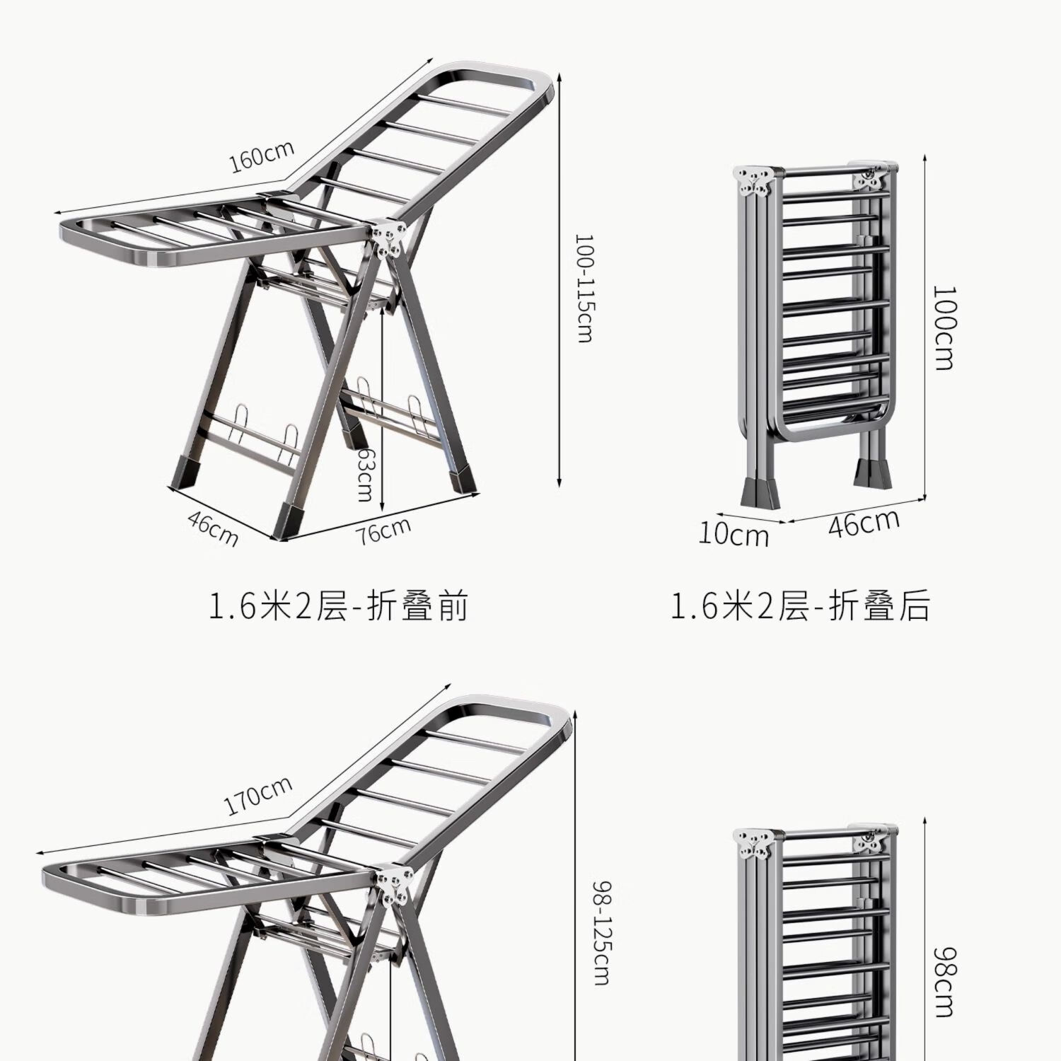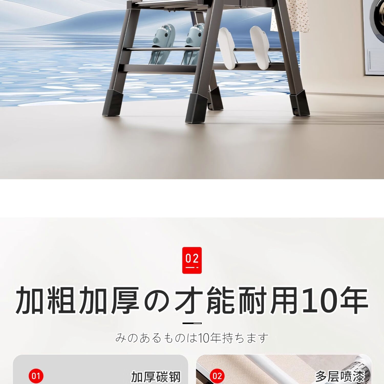 吱凡日本折叠晾衣架落地阳台家用室内晒衣服被子神器式可晾晒衣架杆子 【星耀黑】1.8米-3层+鞋托