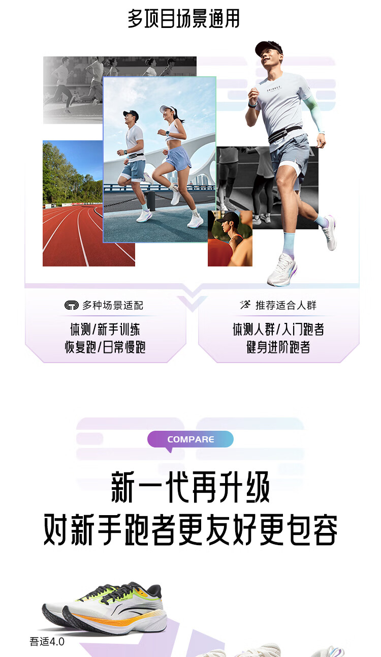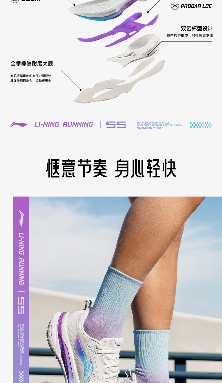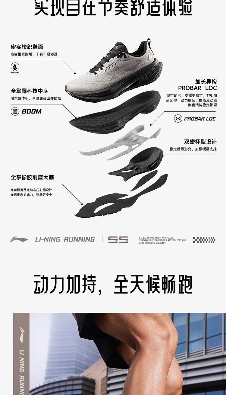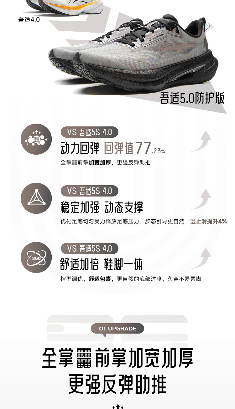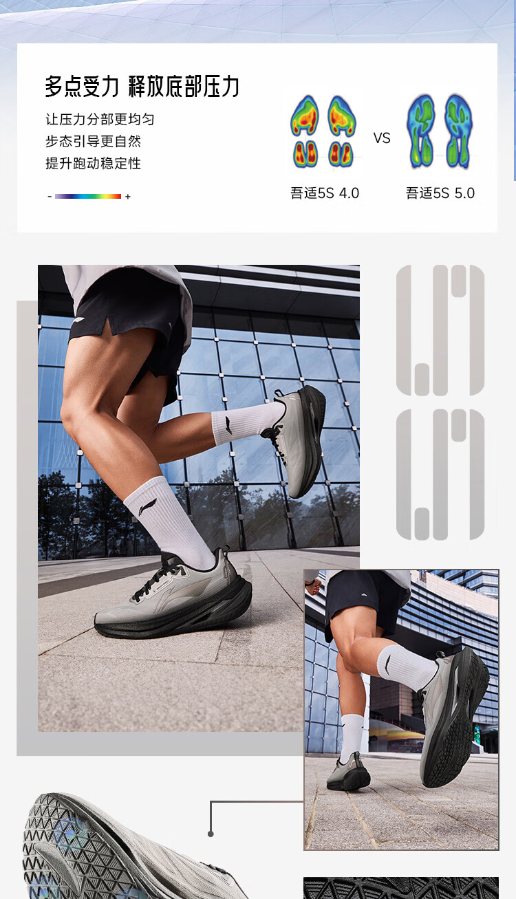 李宁吾适5S5.0|减震跑步鞋男鞋25新款轻便透气百搭体测低帮运动鞋 【透气贾卡】云雾白-1 吾适5S 5.0 43
