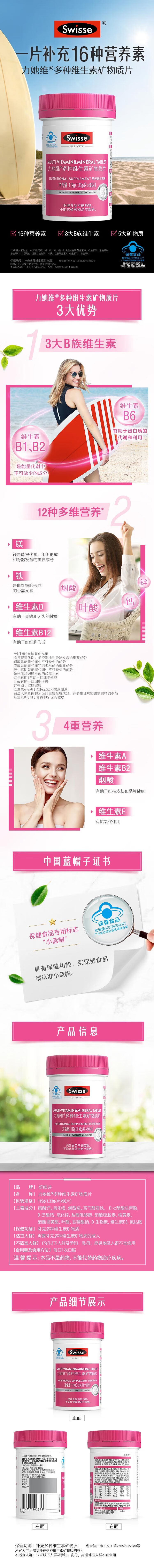 Swisse斯维诗 力她维多种维生素矿物质片 营养素补充剂 蓝帽标识 【女士复合维生素】1.33g/片*90片*1罐