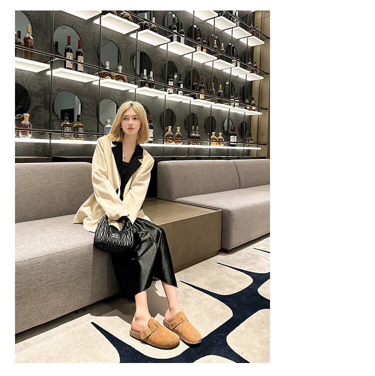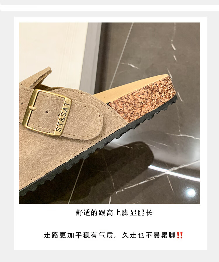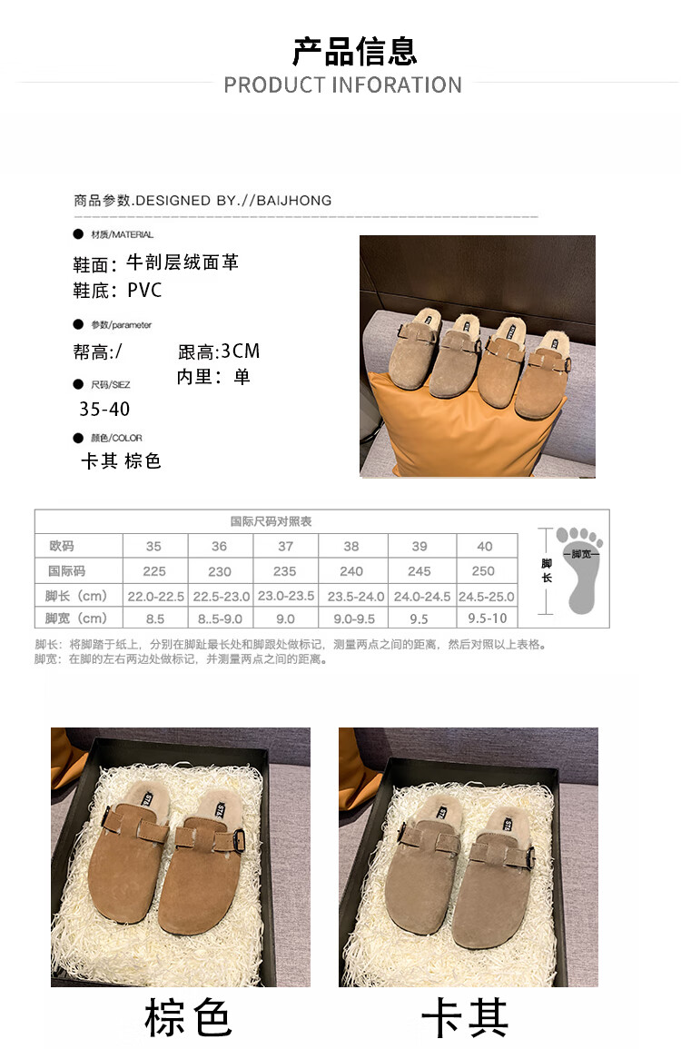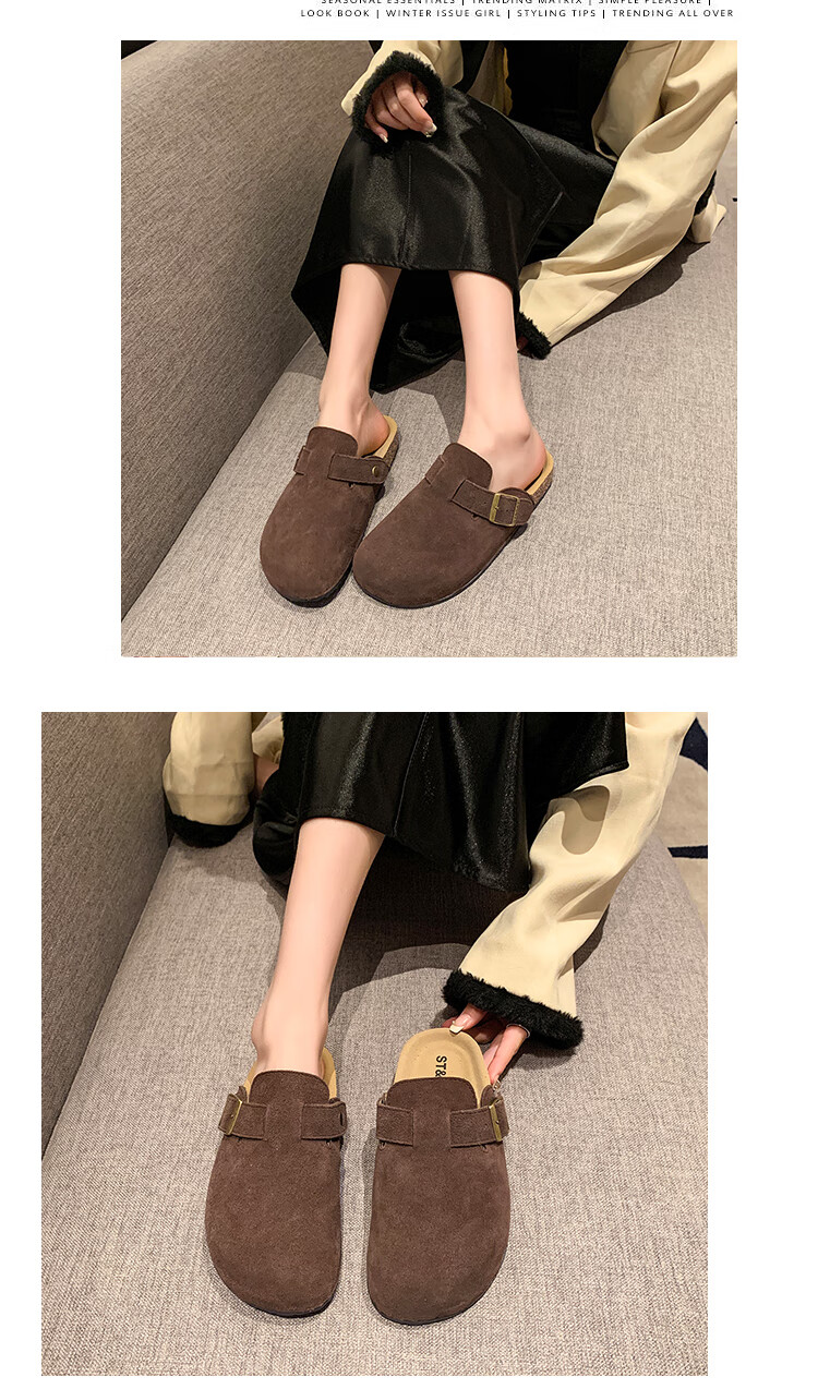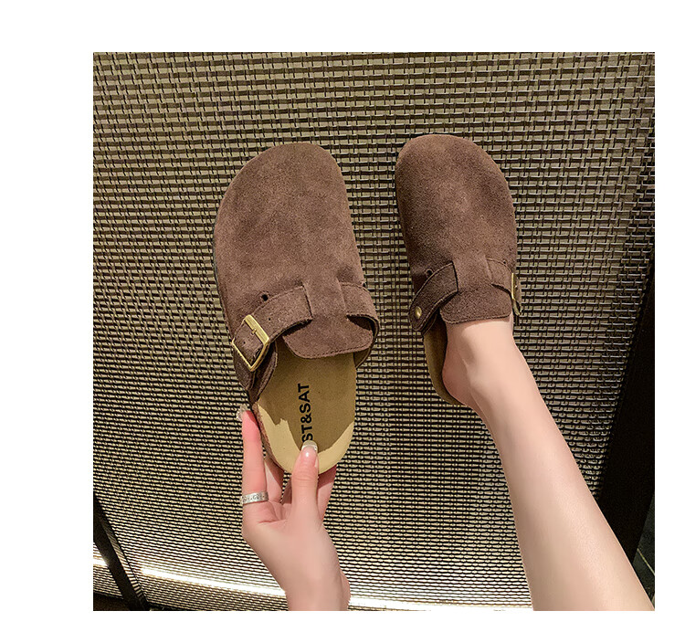 星期六【复古勃肯鞋】厚底增高保暖2024秋冬新款百搭舒适防滑勃肯棉拖 棕色/红棕色 36
