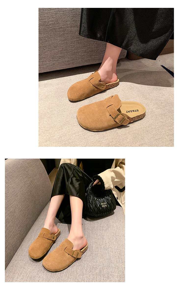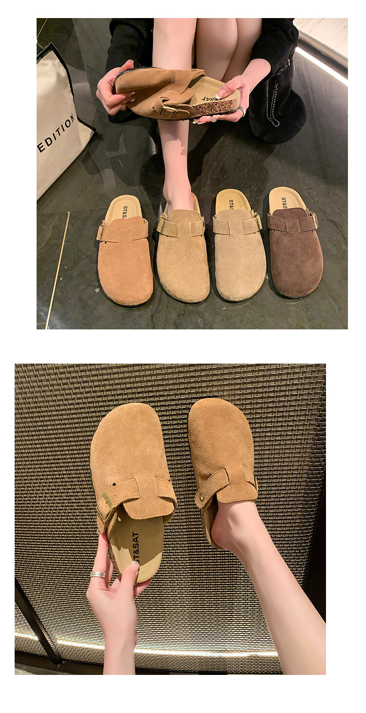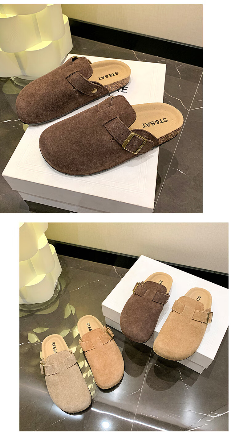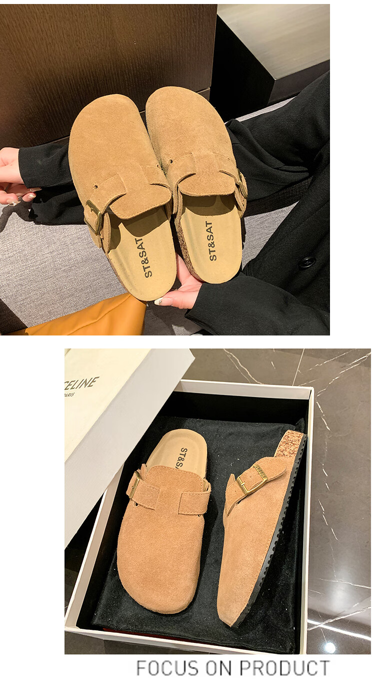 星期六【复古勃肯鞋】厚底增高保暖2024秋冬新款百搭舒适防滑勃肯棉拖 棕色/红棕色 36