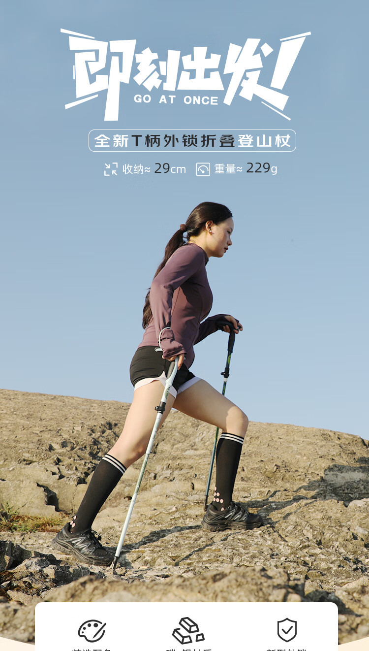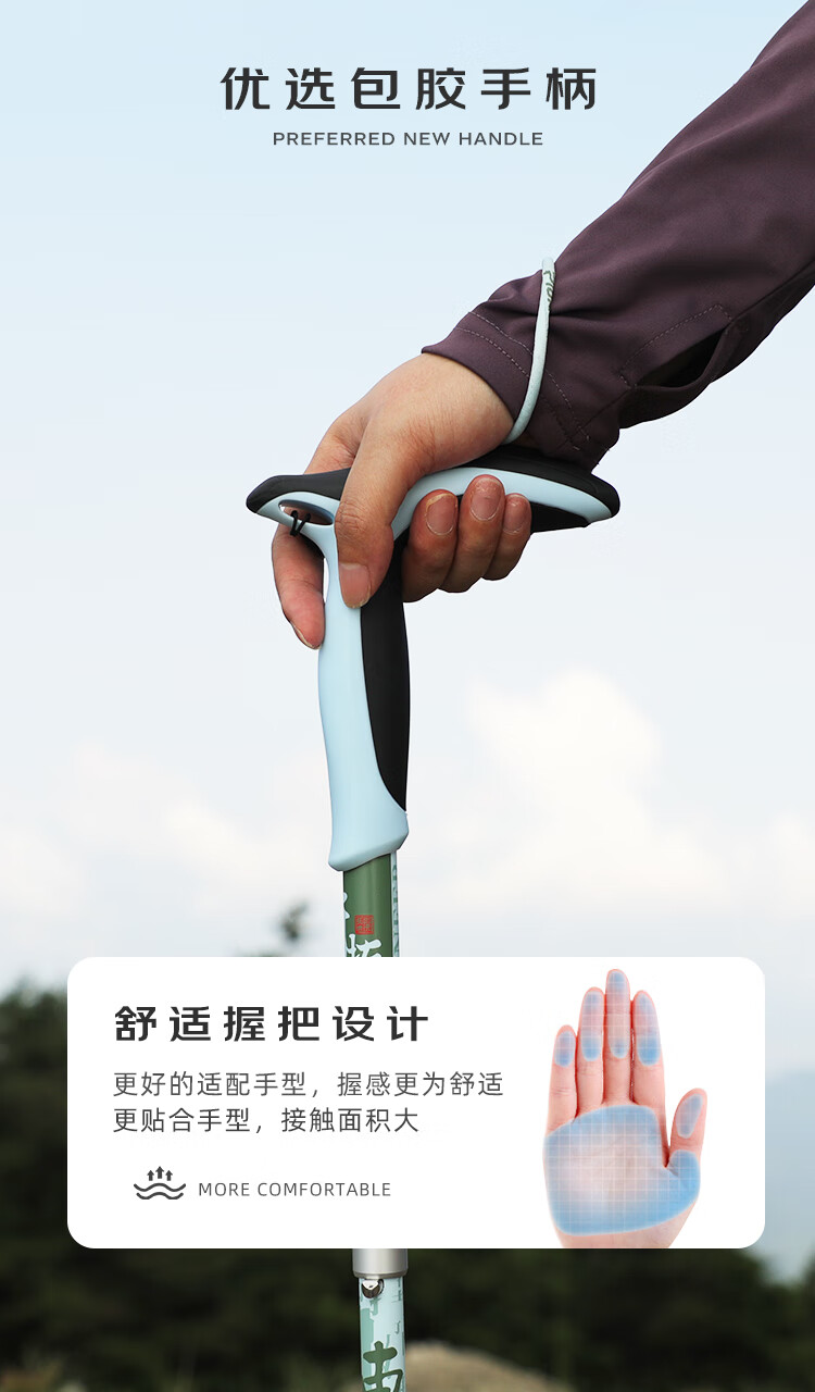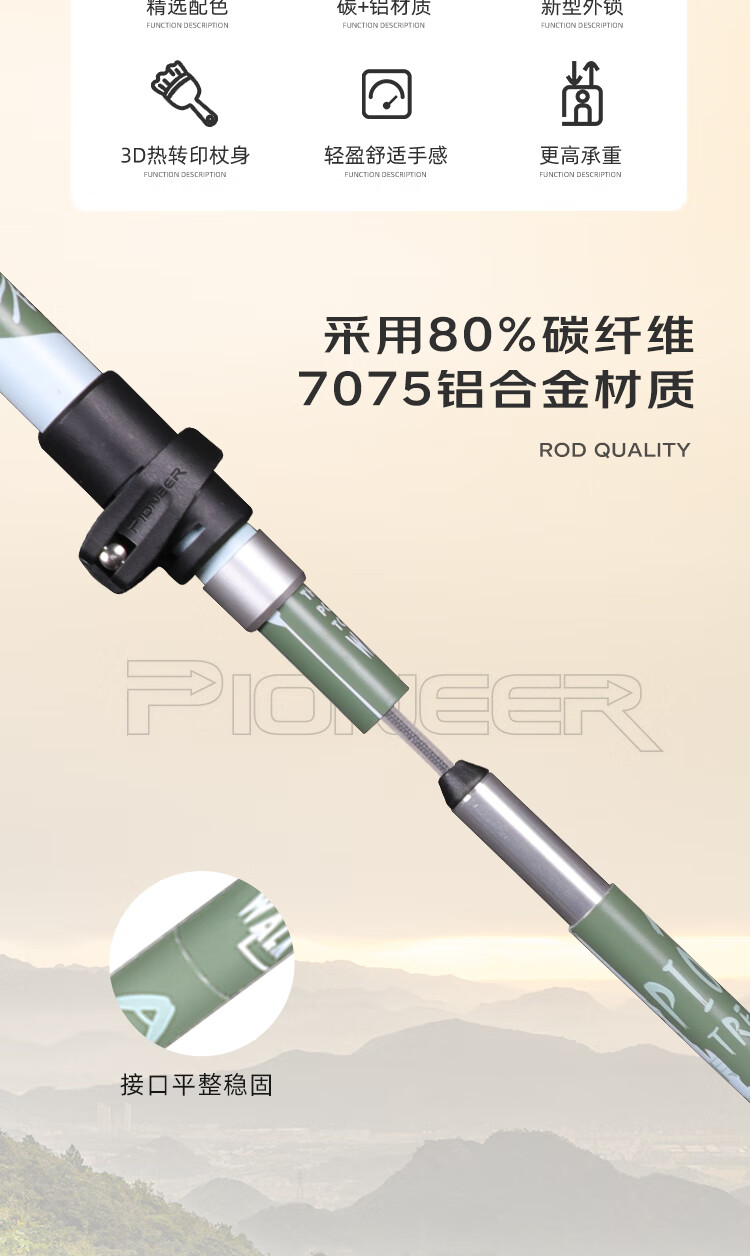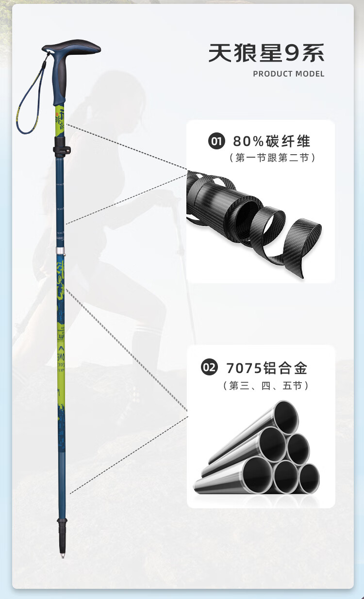 开拓者(pioneer)天狼星9系登山杖碳纤维碳素铝合金折叠式户外老人手杖料见青山