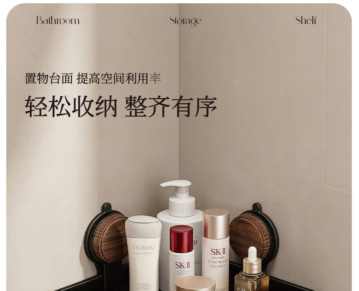 梵瀚浴室收纳架置物架免打孔三角篮墙角架厕所洗手间吸盘置物架 浴室三角架