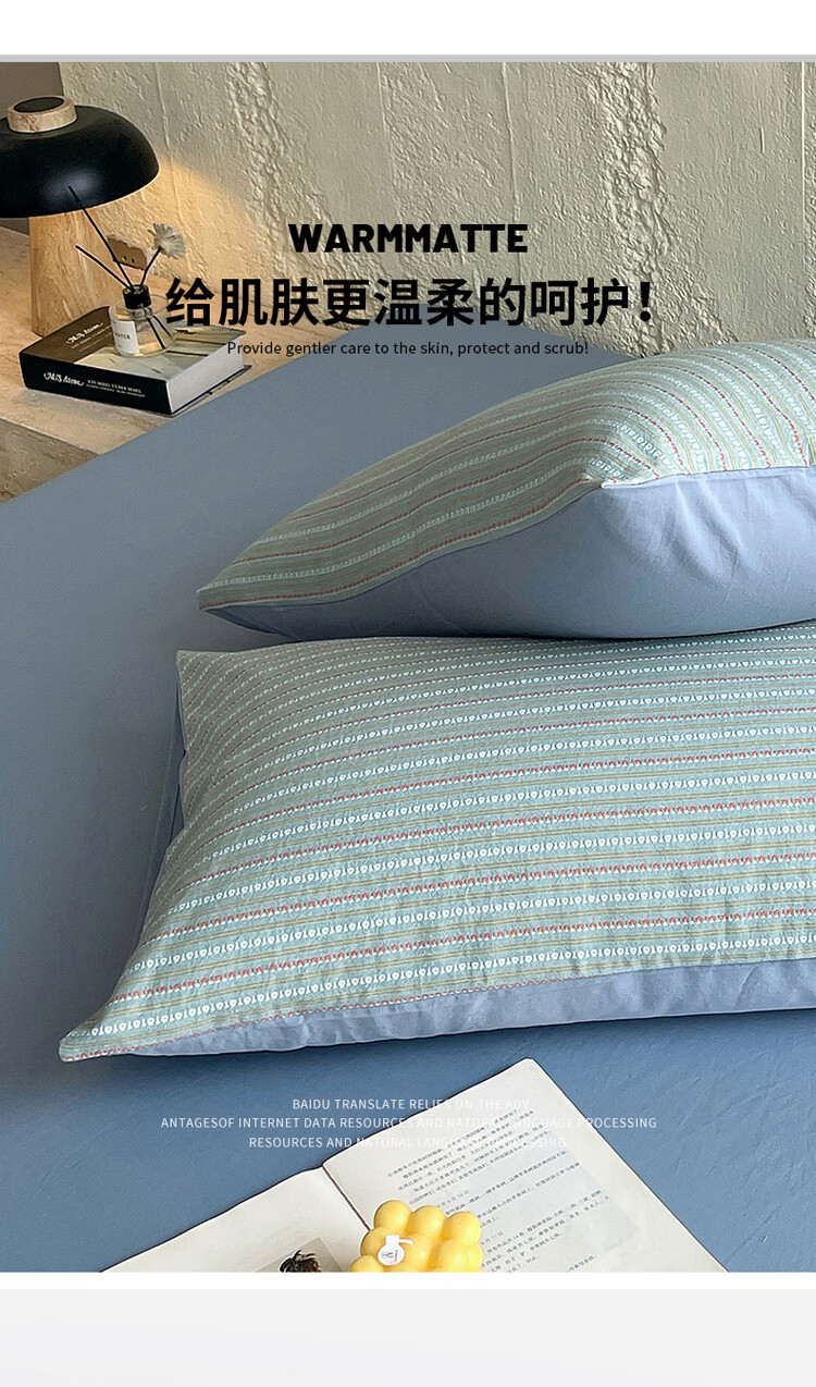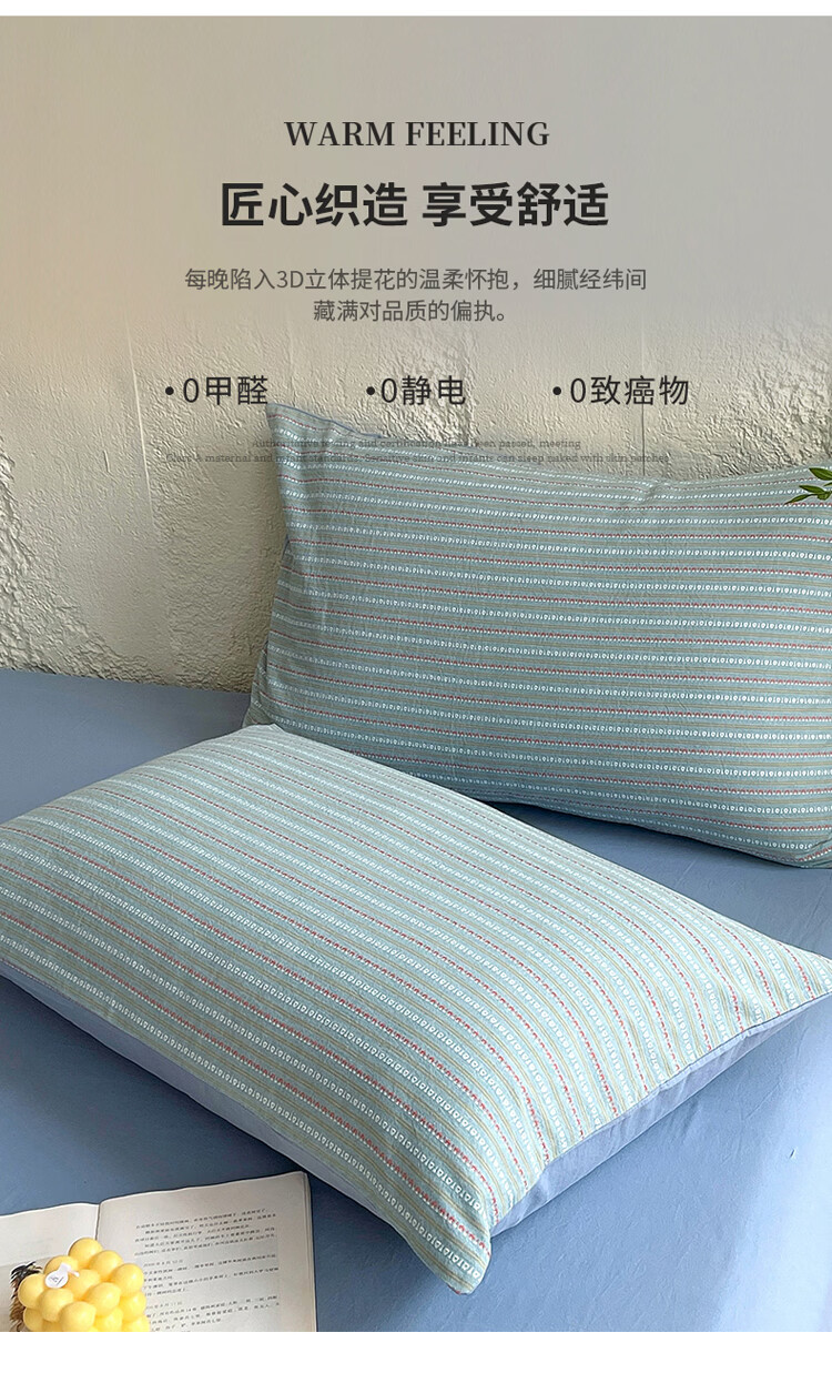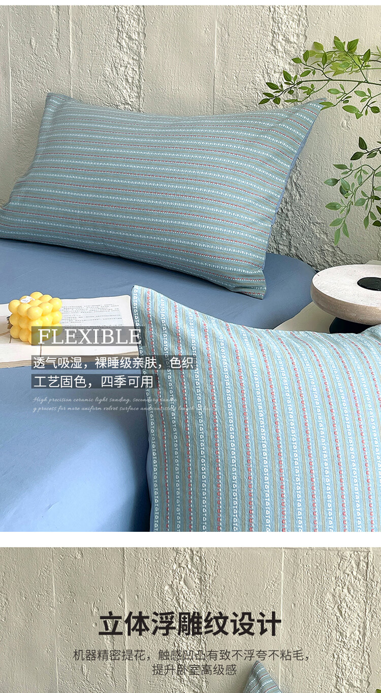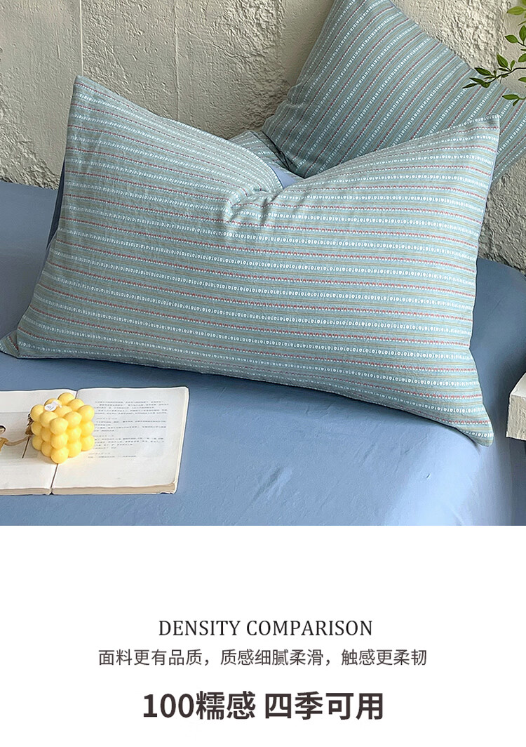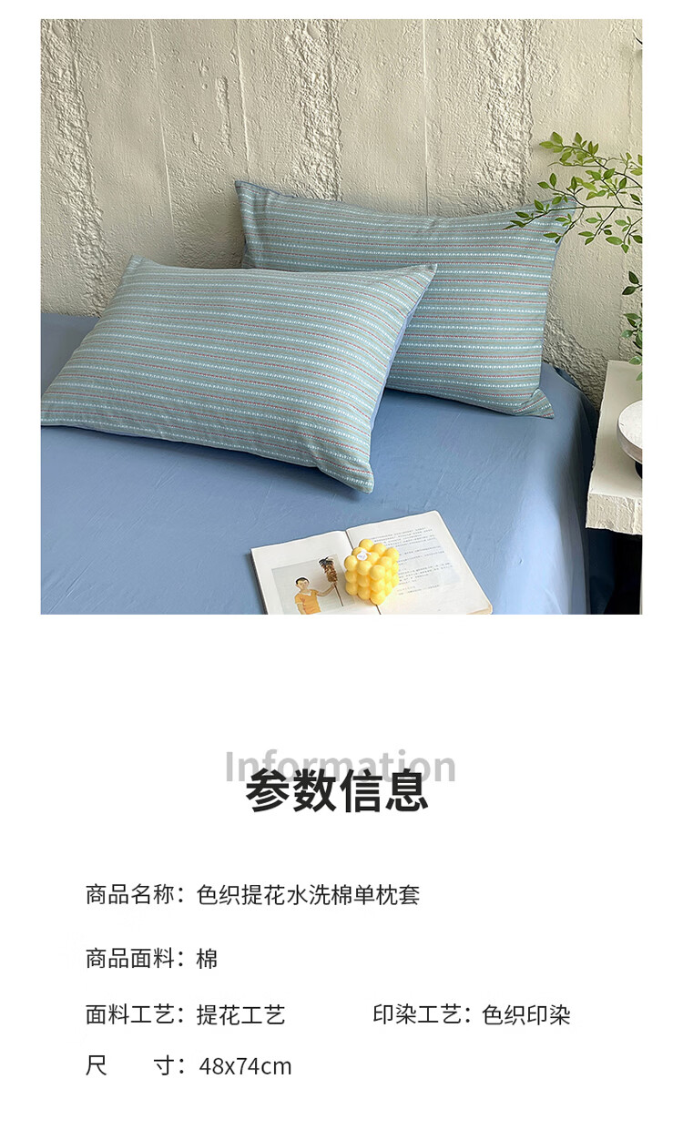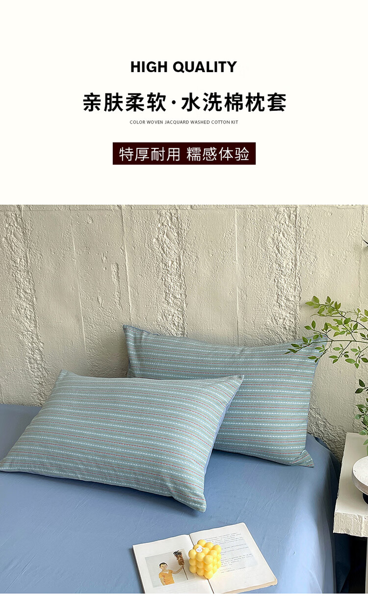 ROLAND LIVE全棉色织提花斜纹水洗棉单枕套48*74cm单人枕枕头套一对装枕芯套 CW 全棉水洗棉单枕套-半夏宝兰 一对装 48*74cm