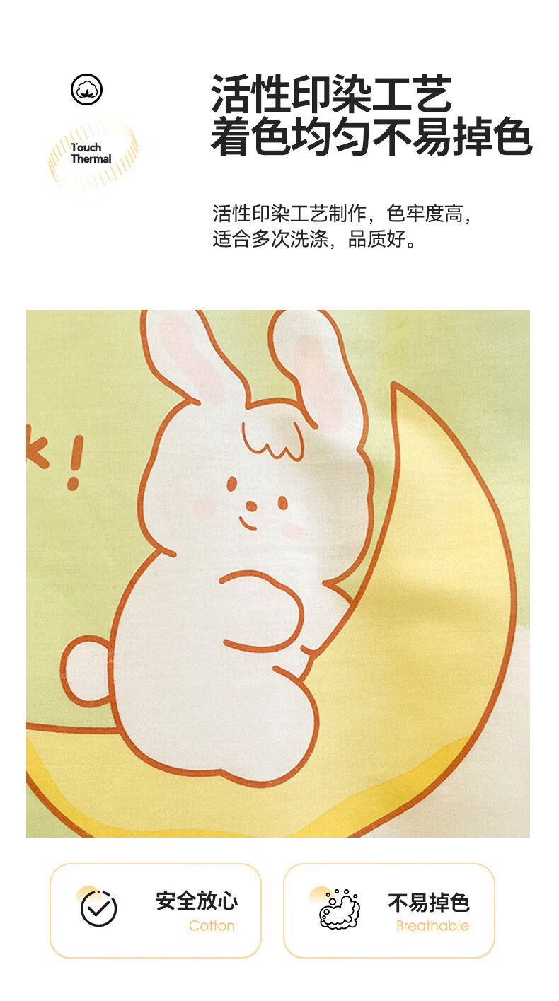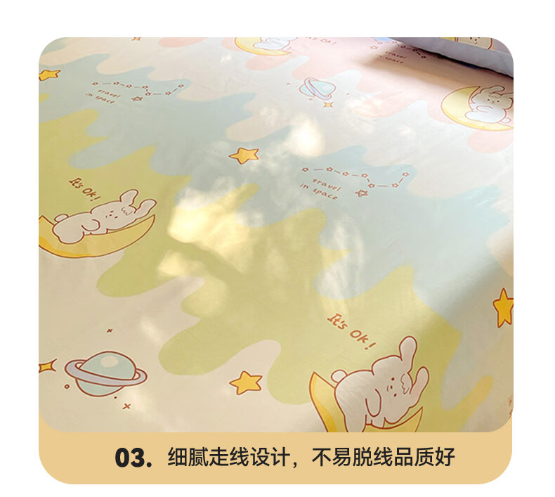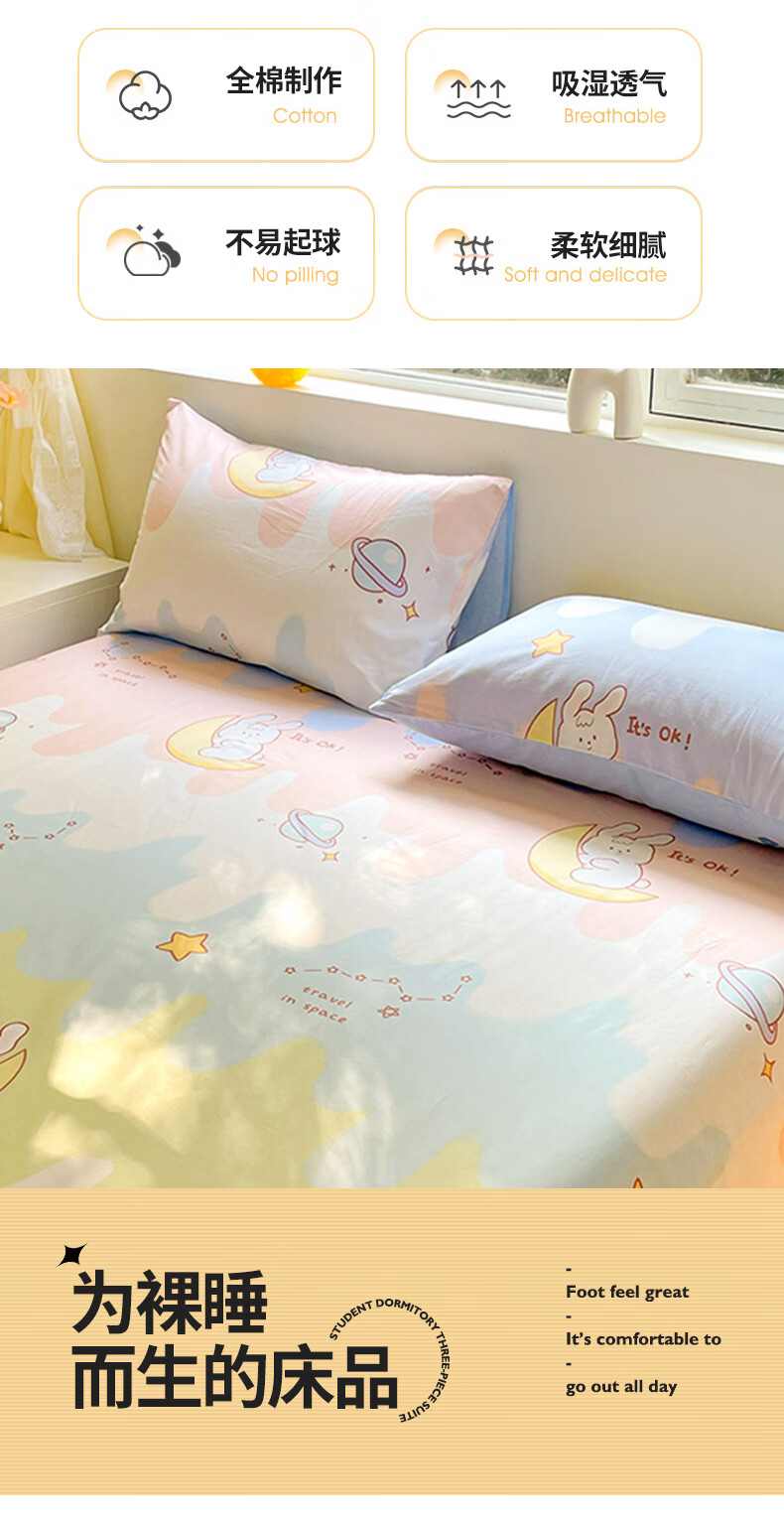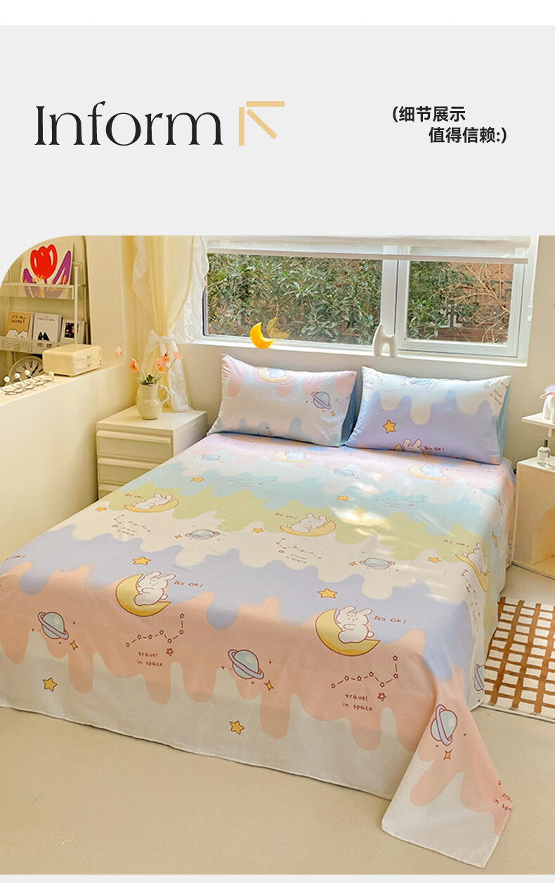 无印良品100%纯棉床单单件全棉宿舍单人床盖被单家用双人裸睡床罩床上用品 月亮兔 【100%全棉 适合裸睡】 160x230cm单床单【适用1.2m床】