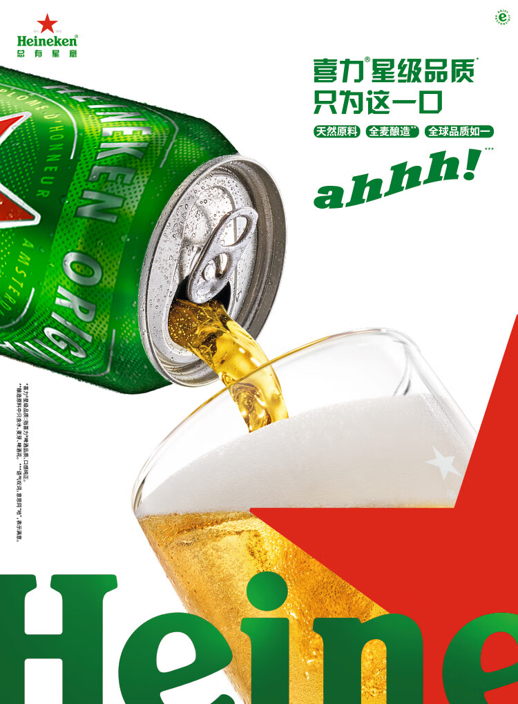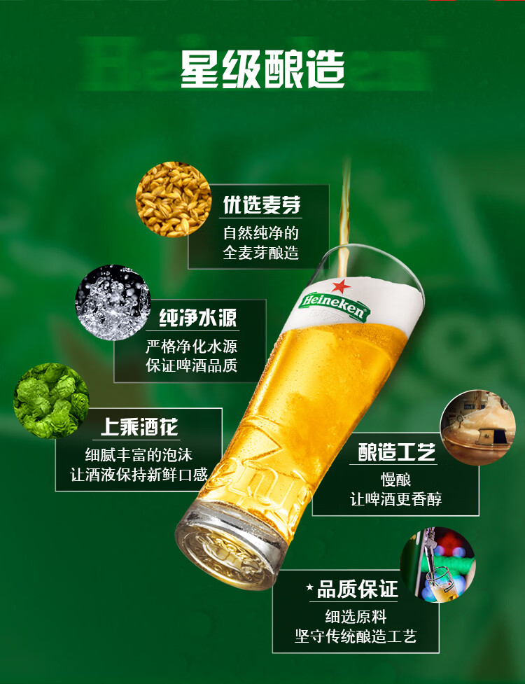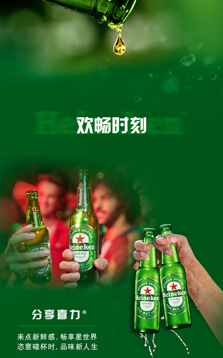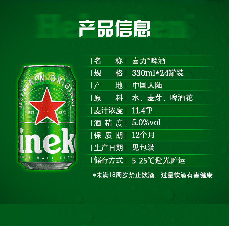 喜力经典啤酒 麦芽浓度11.4 330ml*24听整箱装 年货新年送礼