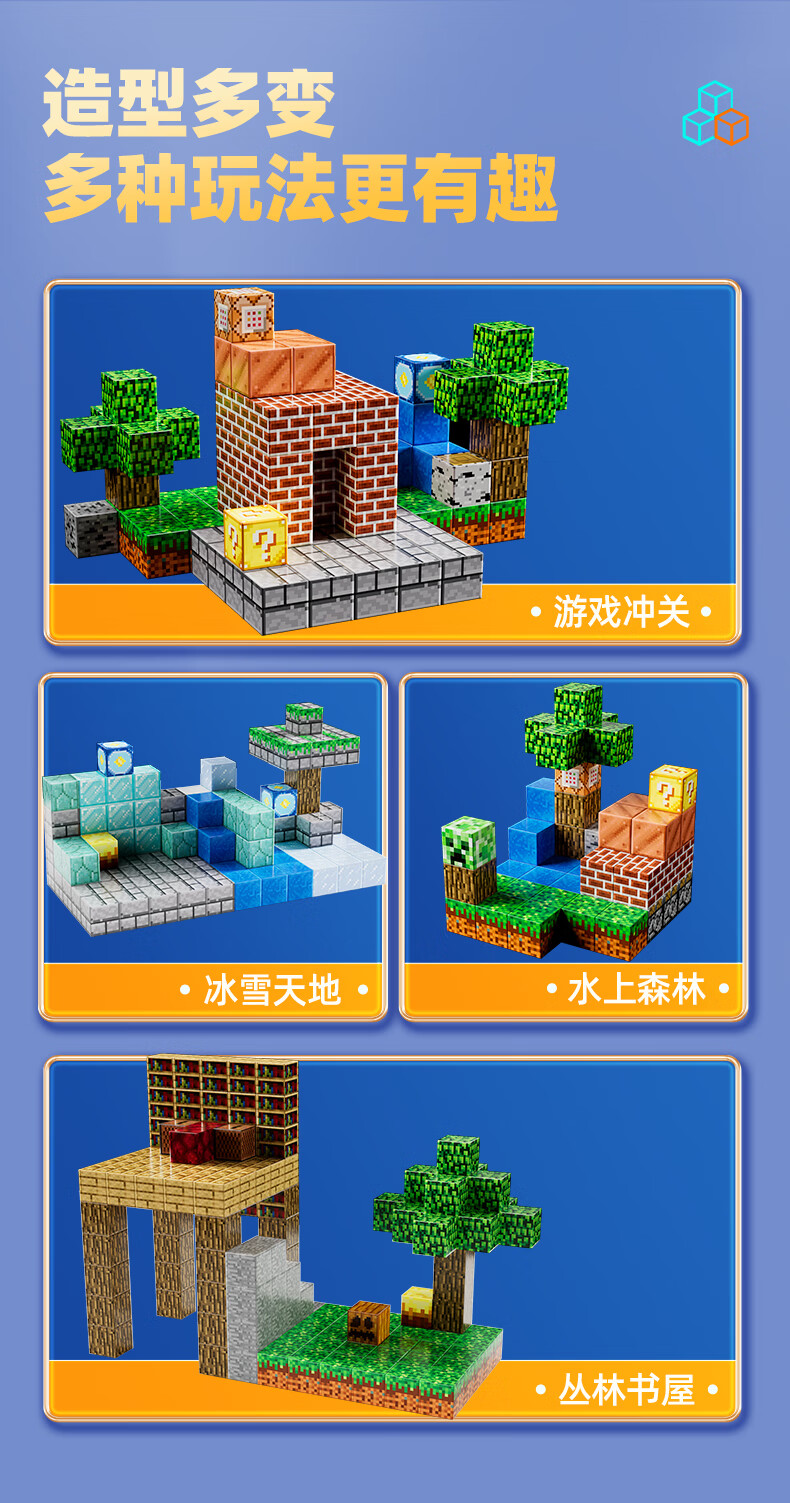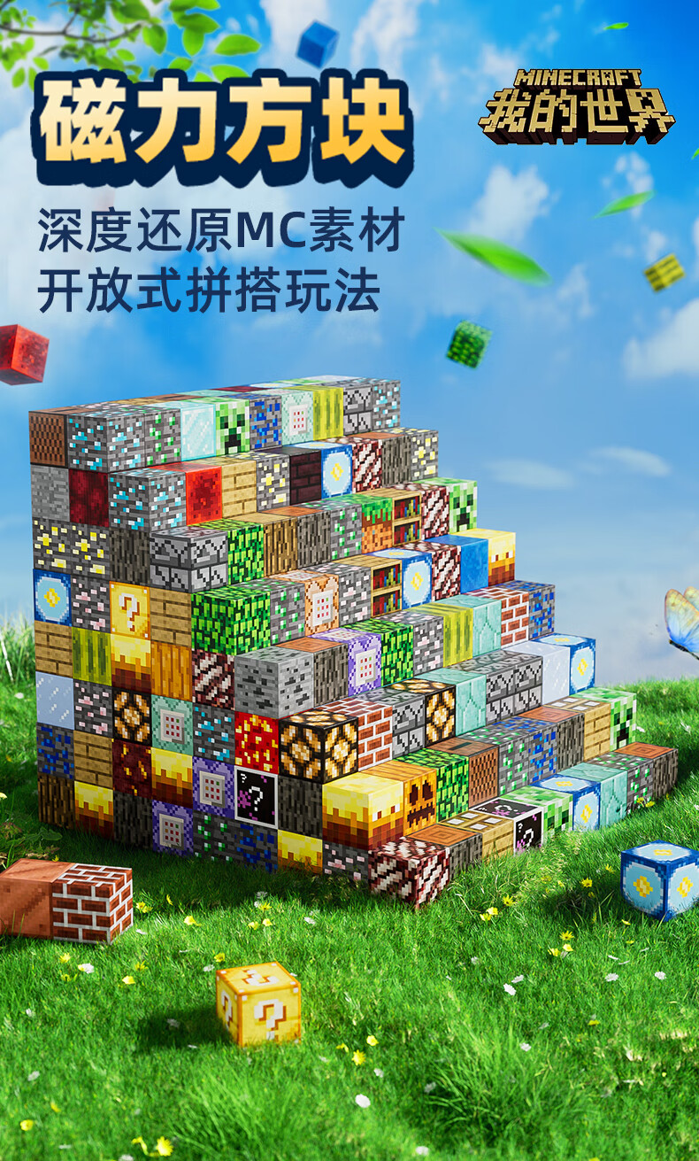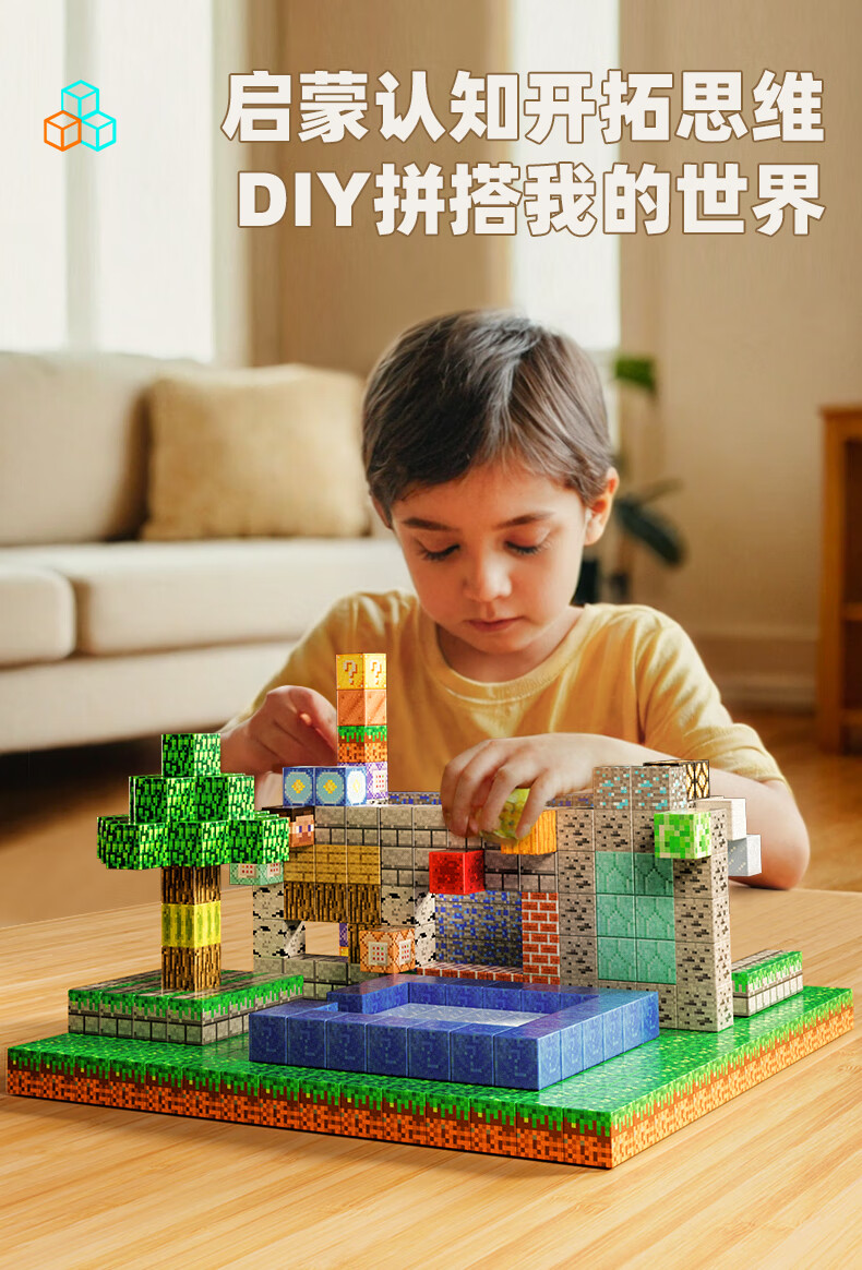星涯优品儿童节礼物积木拼插玩具迷你我的世界磁力方块全套6-10岁男孩女孩 【性价比推荐】随机68颗粒+5人仔+27武器+收纳盒