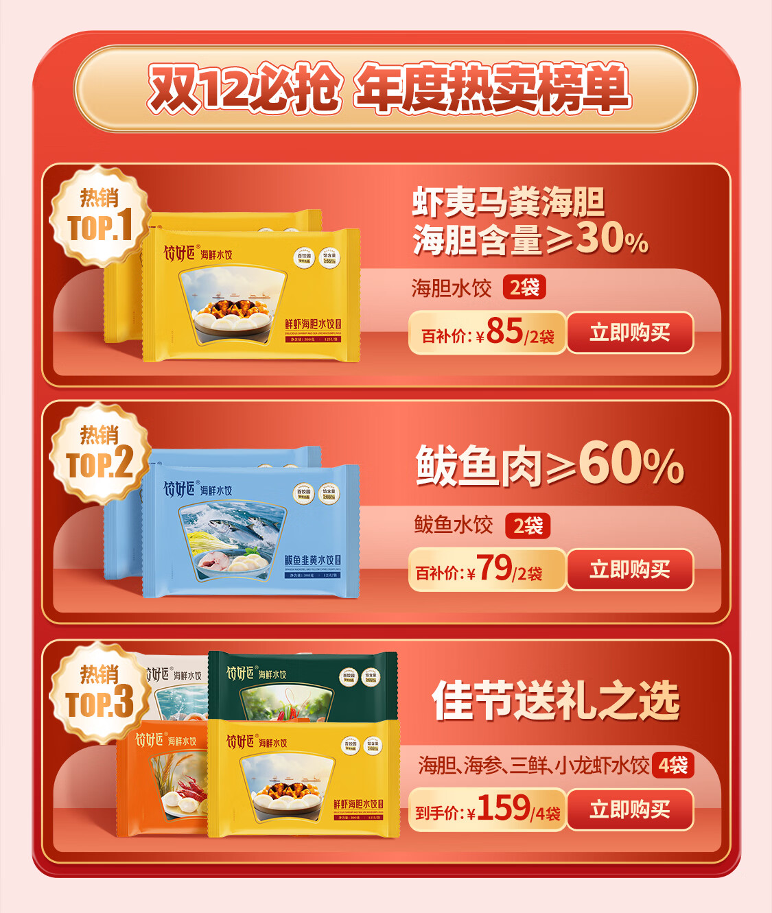 饺好运海鲜水饺海胆手工水饺海参小龙虾三鲜速冻水饺早餐速食 海胆+海参+鲅鱼(380g*3袋)