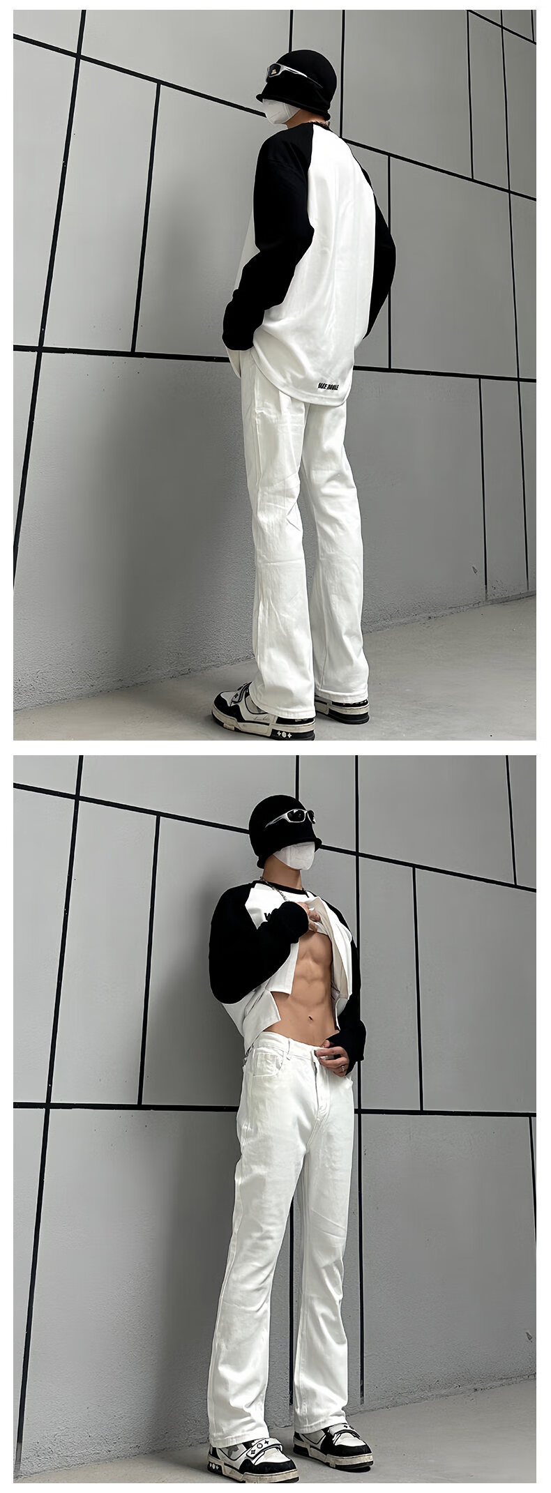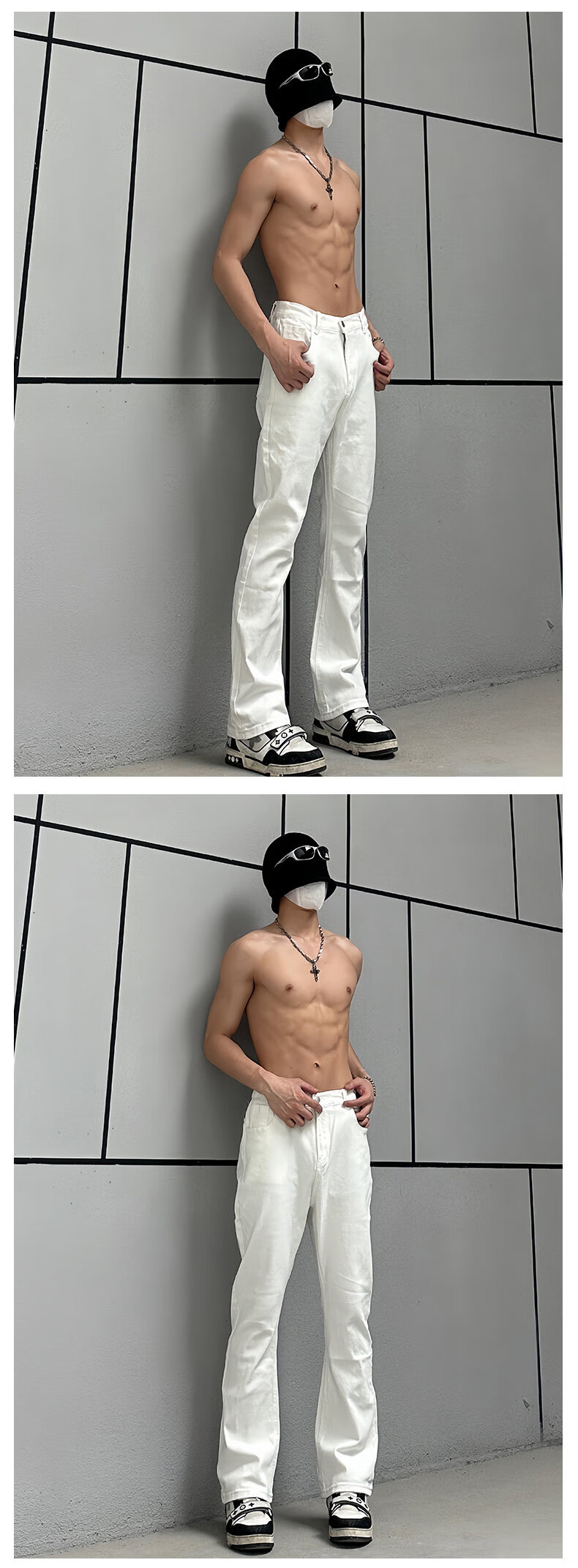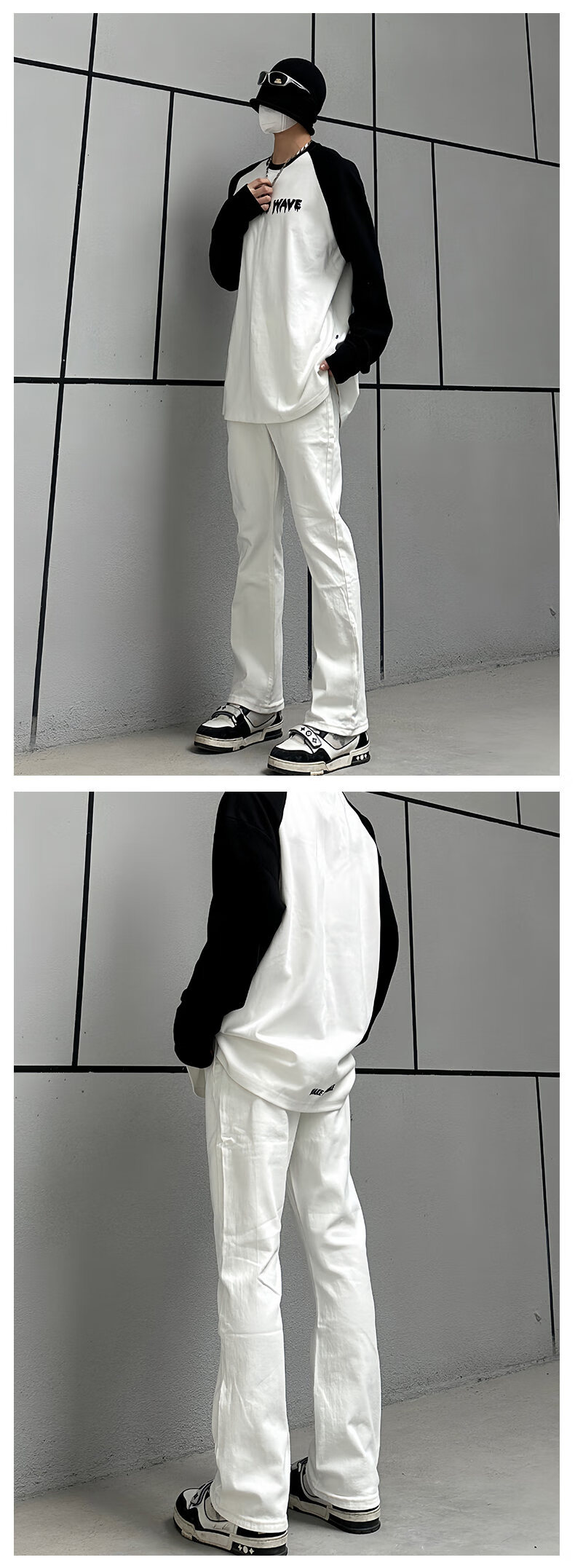 黑盒白秋季裤子男潮牌美式vibe高街微喇牛仔裤男款修身直筒休闲裤男装 白色 加绒 XL 【建议130-145斤】