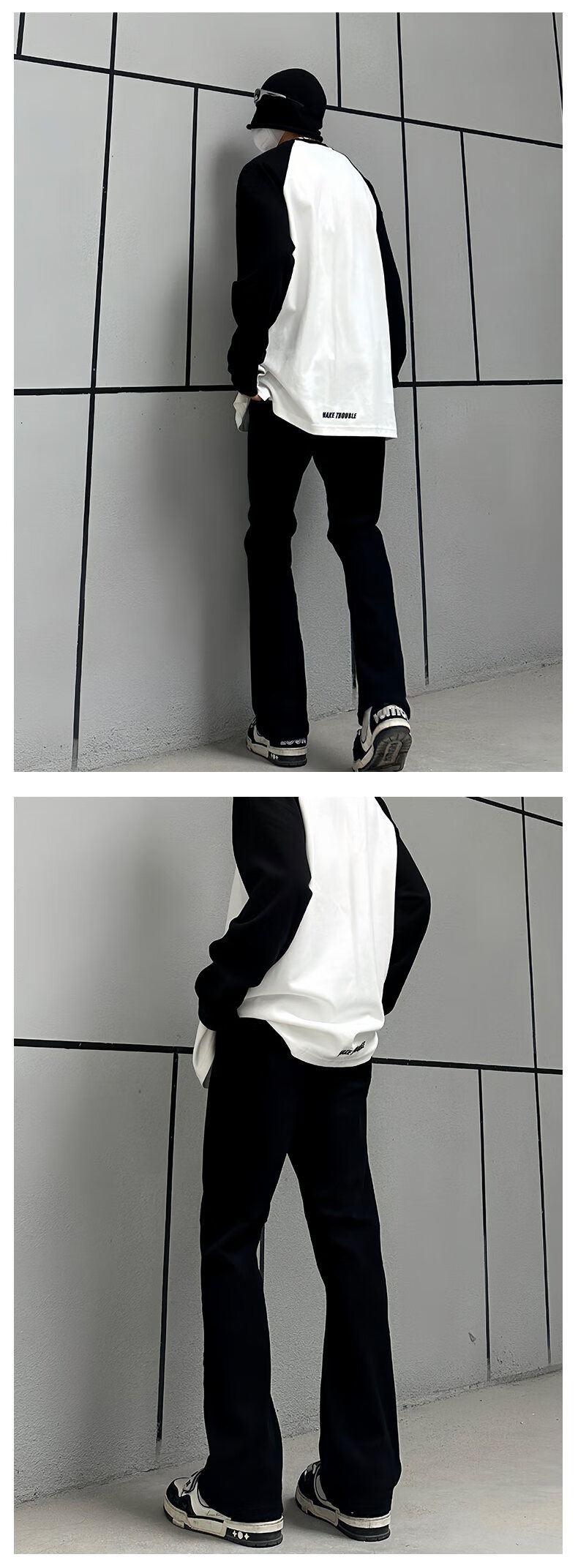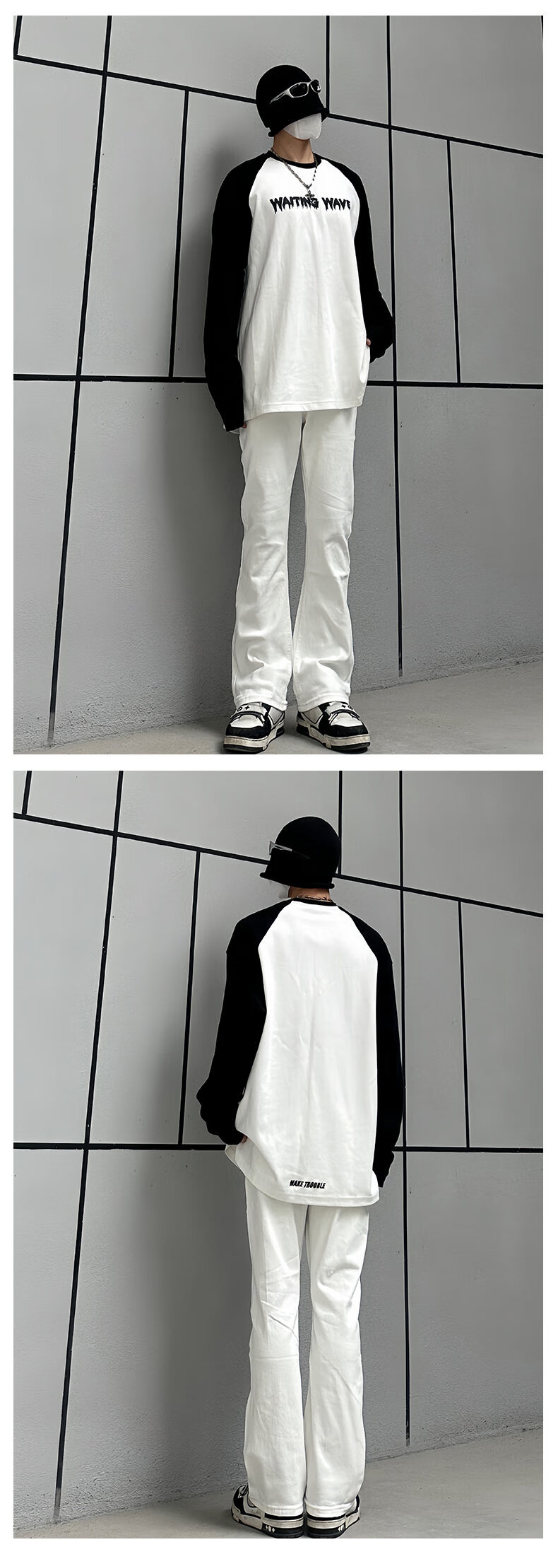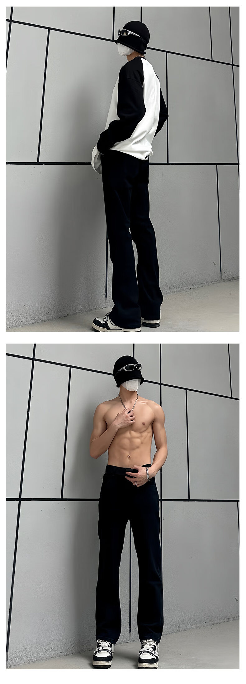 黑盒白秋季裤子男潮牌美式vibe高街微喇牛仔裤男款修身直筒休闲裤男装 白色 加绒 XL 【建议130-145斤】