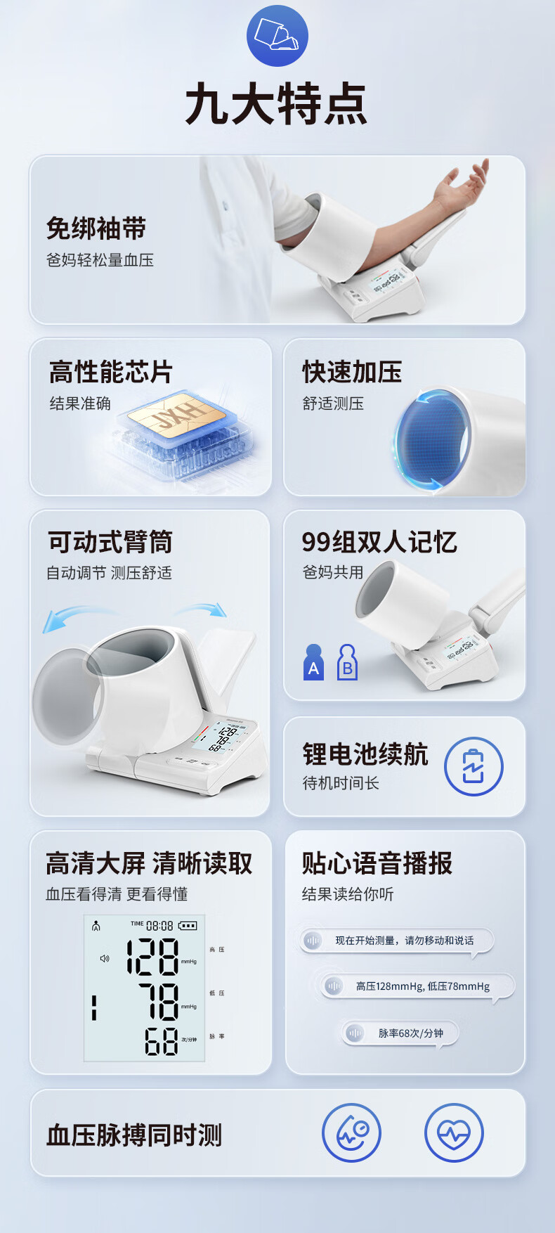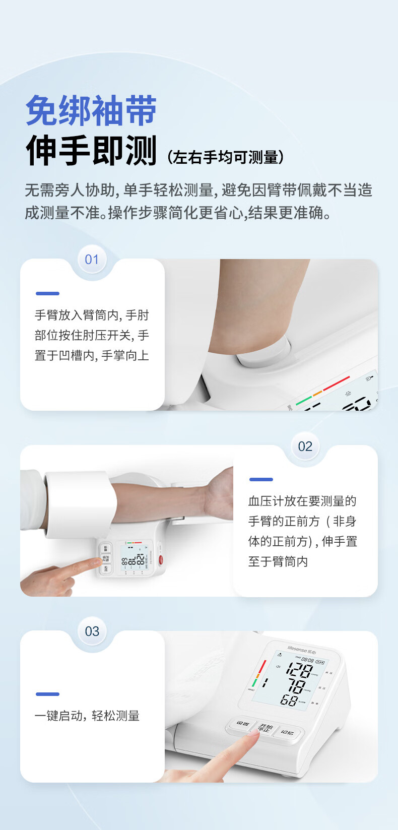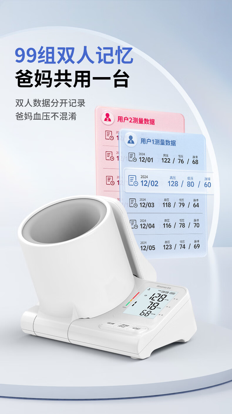 乐心电子血压仪家用臂筒式血压计血压测量仪医用高精准测压仪器充电款 【医用高精准】免绑袖带+高清三色背光+语音播报