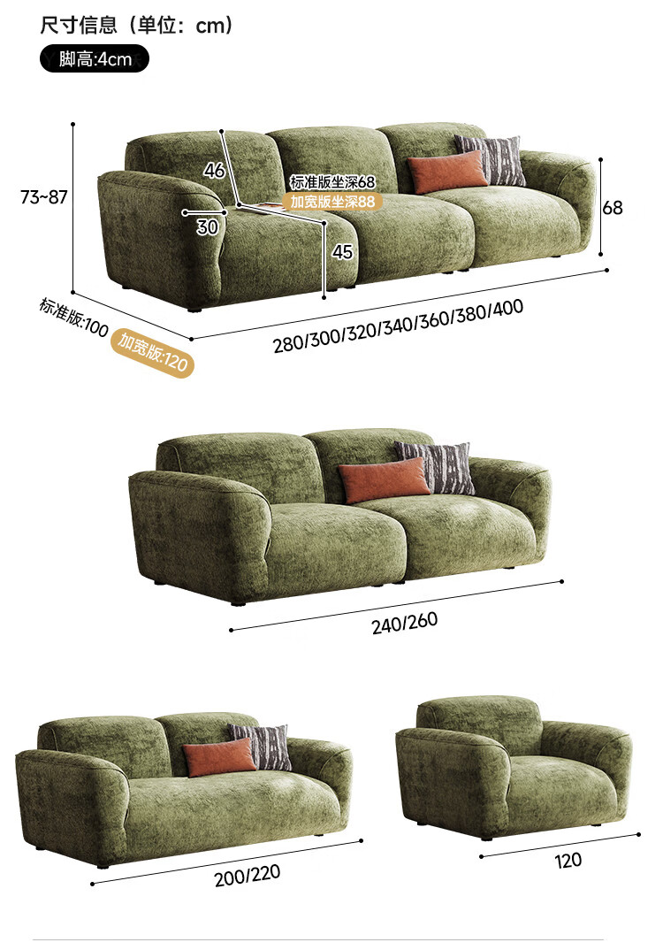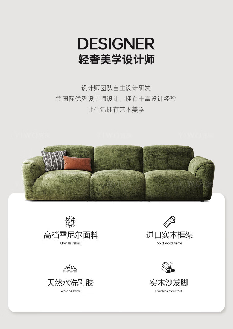 溥畔宜沃法式复古可全拆洗雪尼尔绒格兰德布艺沙发可调节靠背客厅直排 4.0米多人位可摺叠靠背[休闲加宽版1.2m宽 [功能版+可全拆洗]进口亲肤雪花·雪尼尔绒面料+