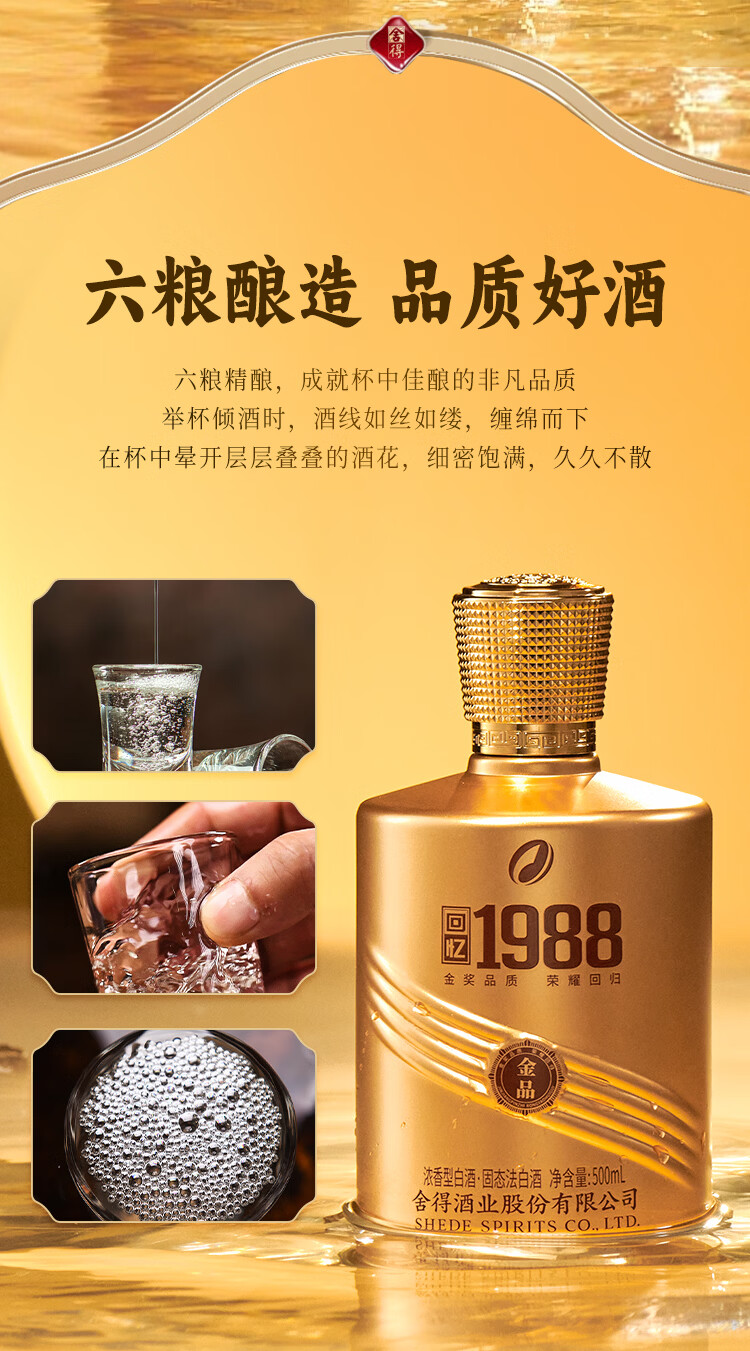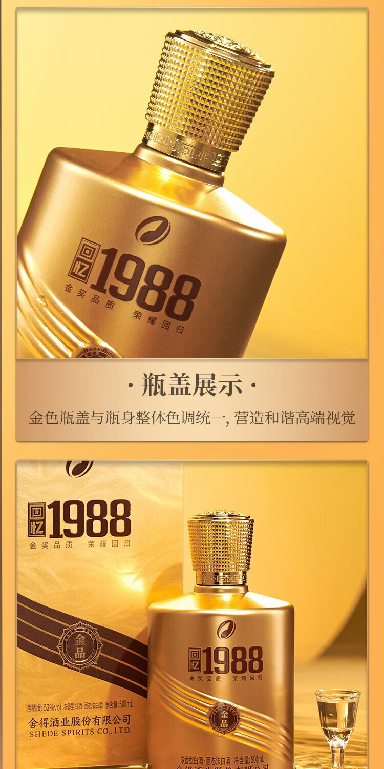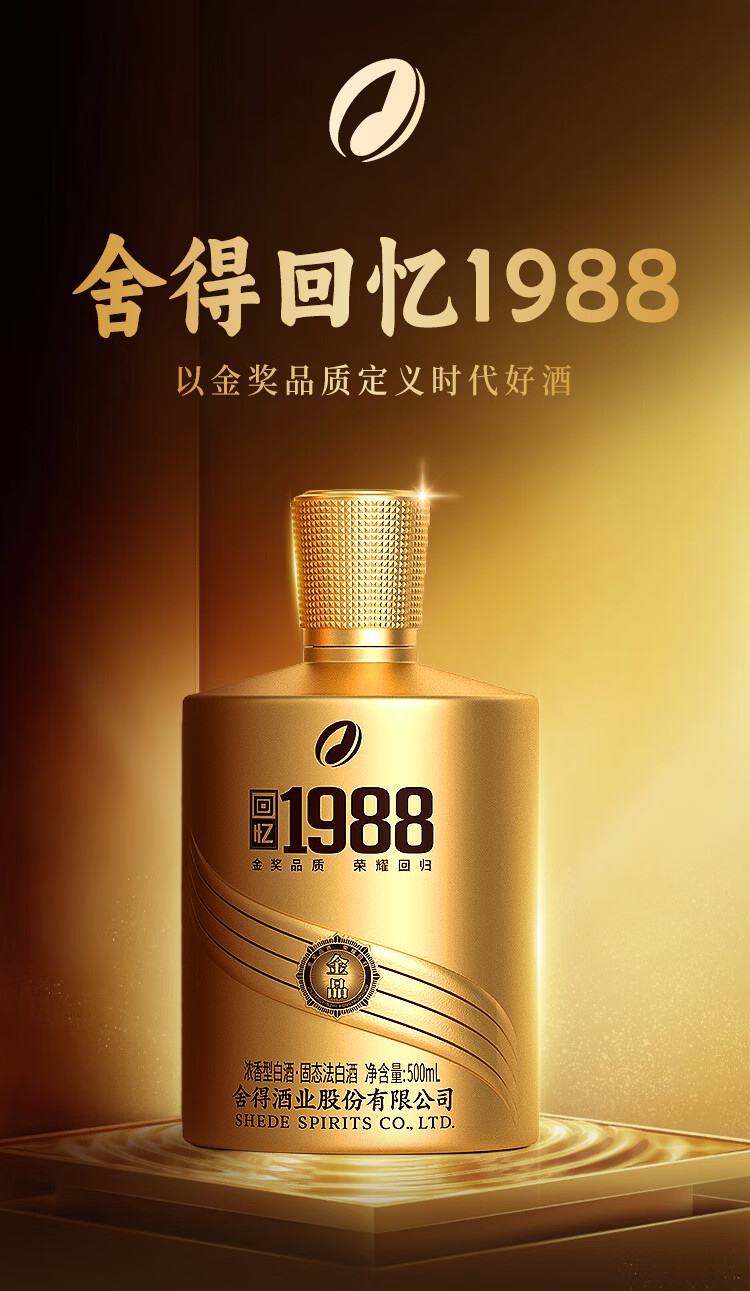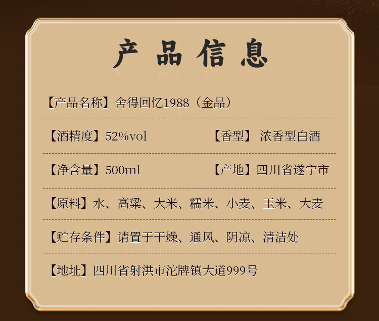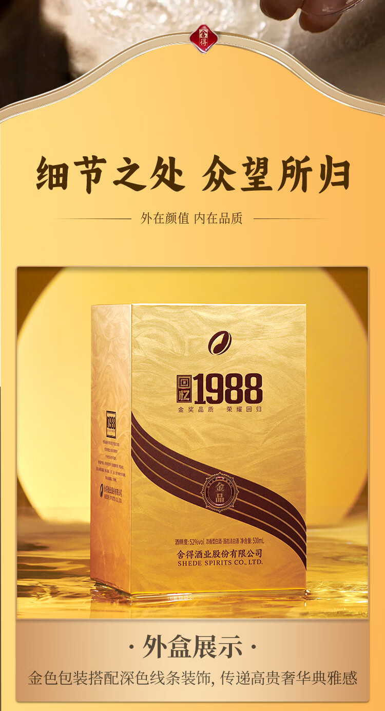 舍得浓香型白酒回忆1988金品高端白酒52度500mL礼盒装纯粮食老酒 52%vol 500mL 1瓶 舍得回忆1988金品单瓶