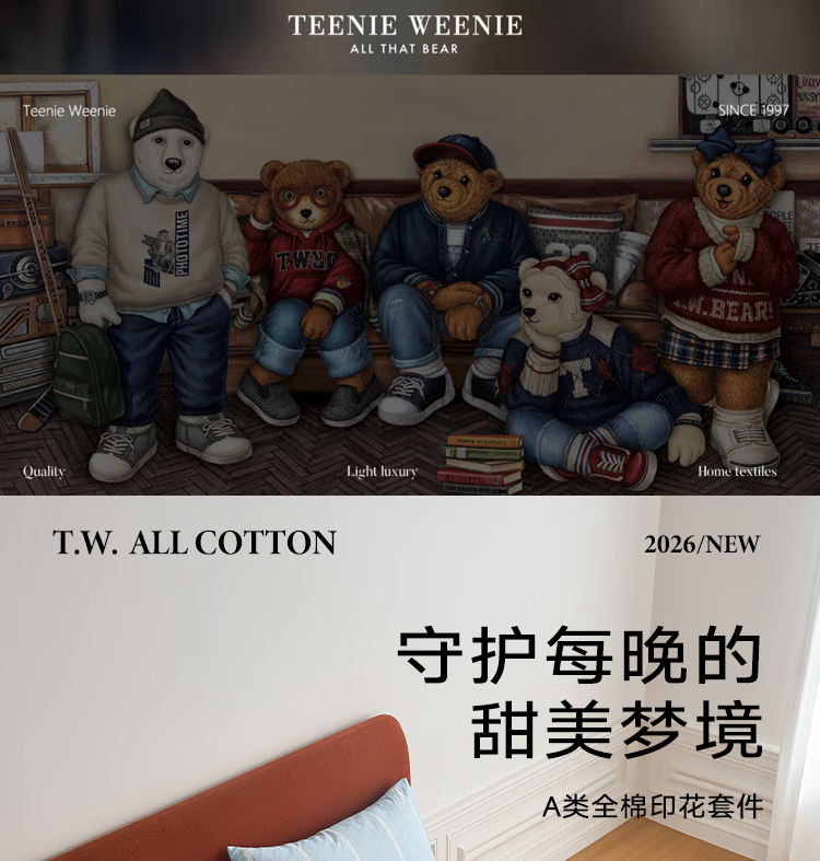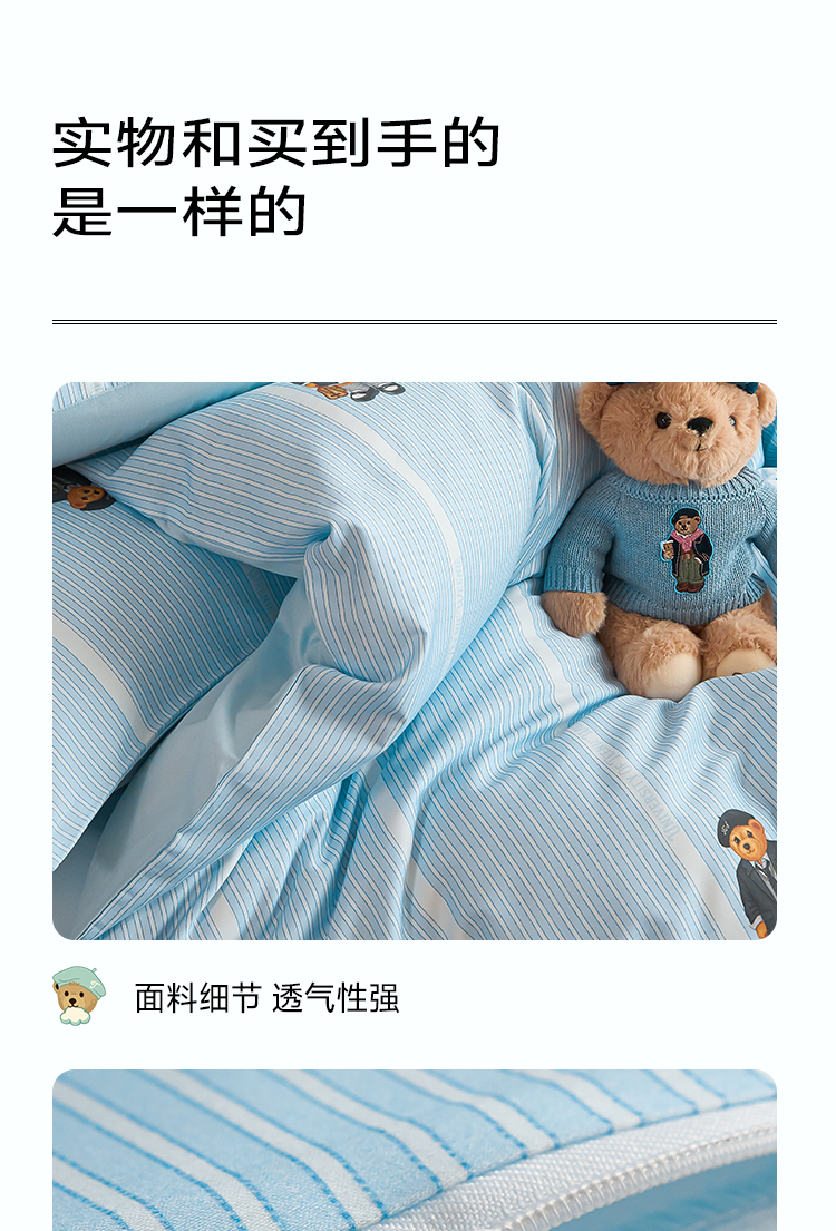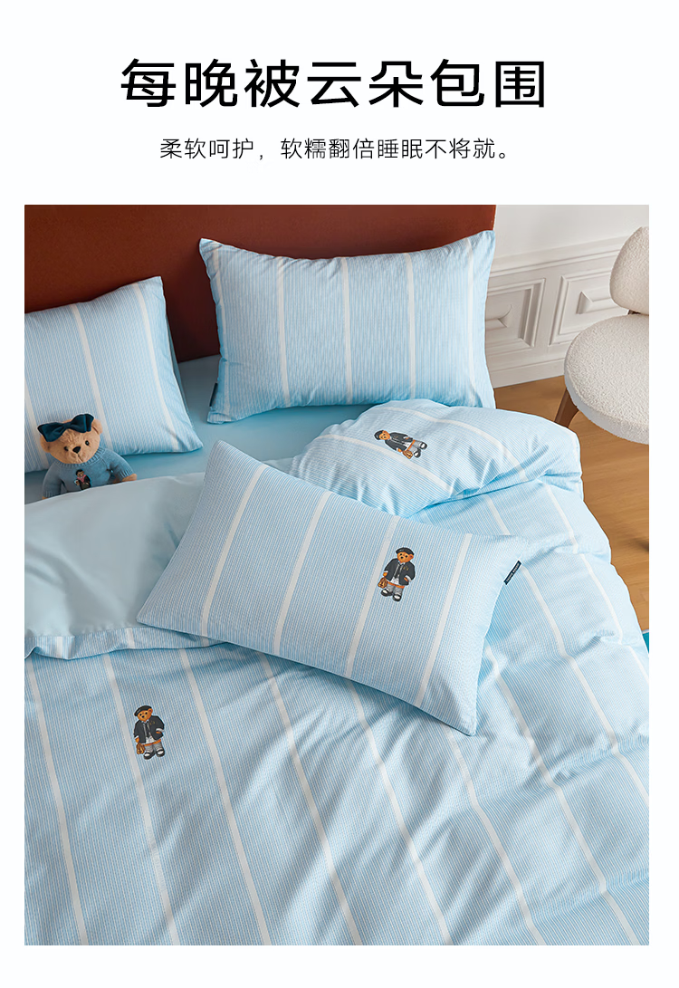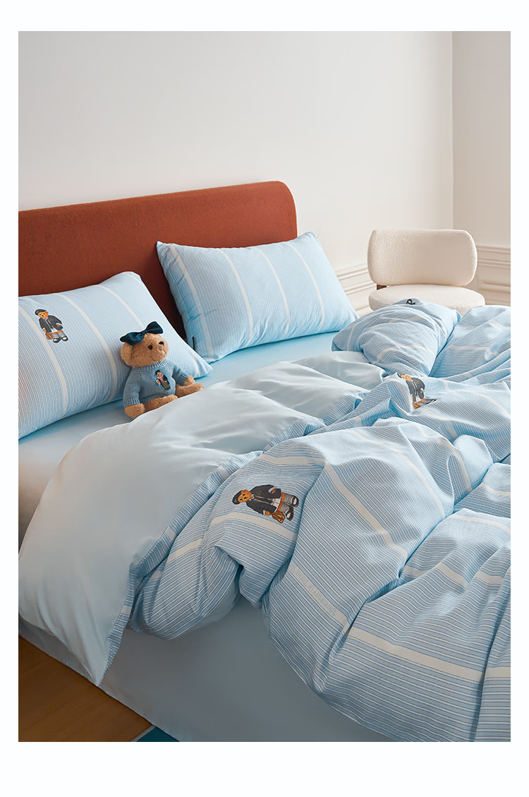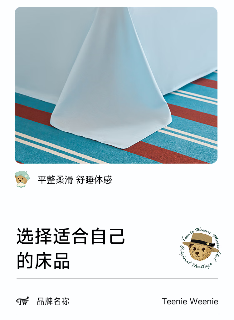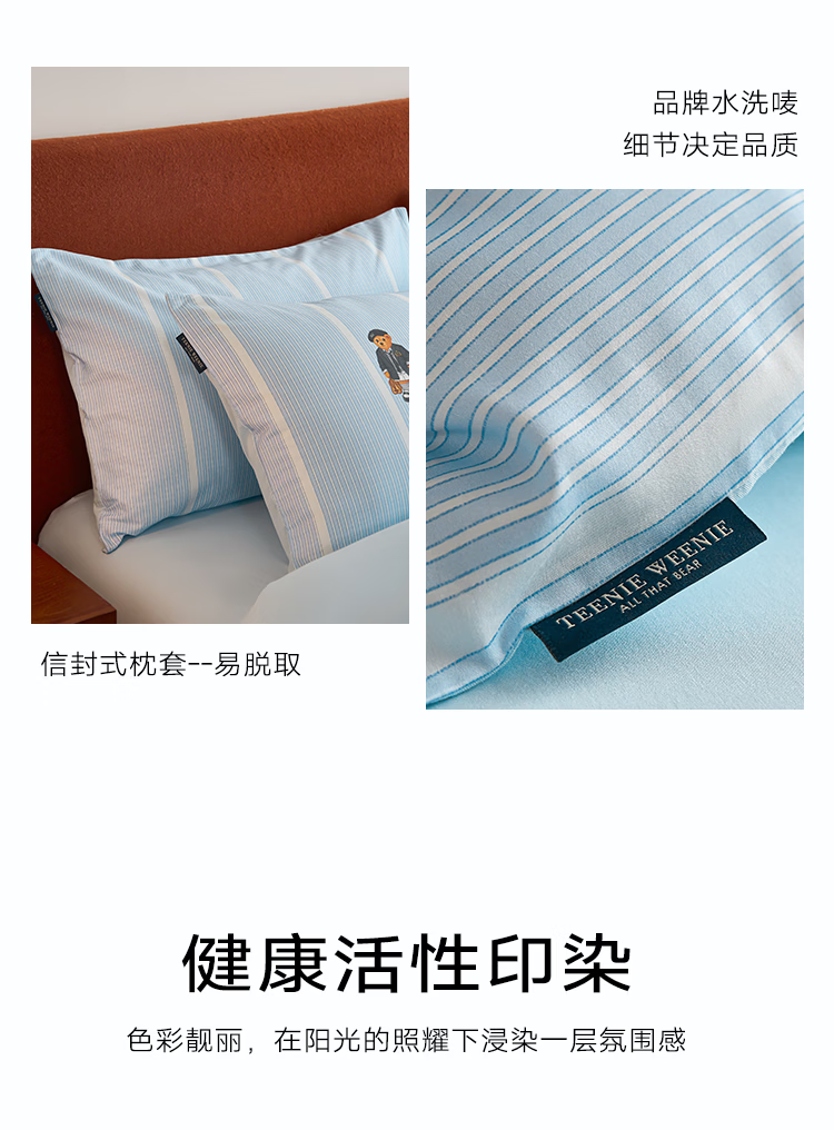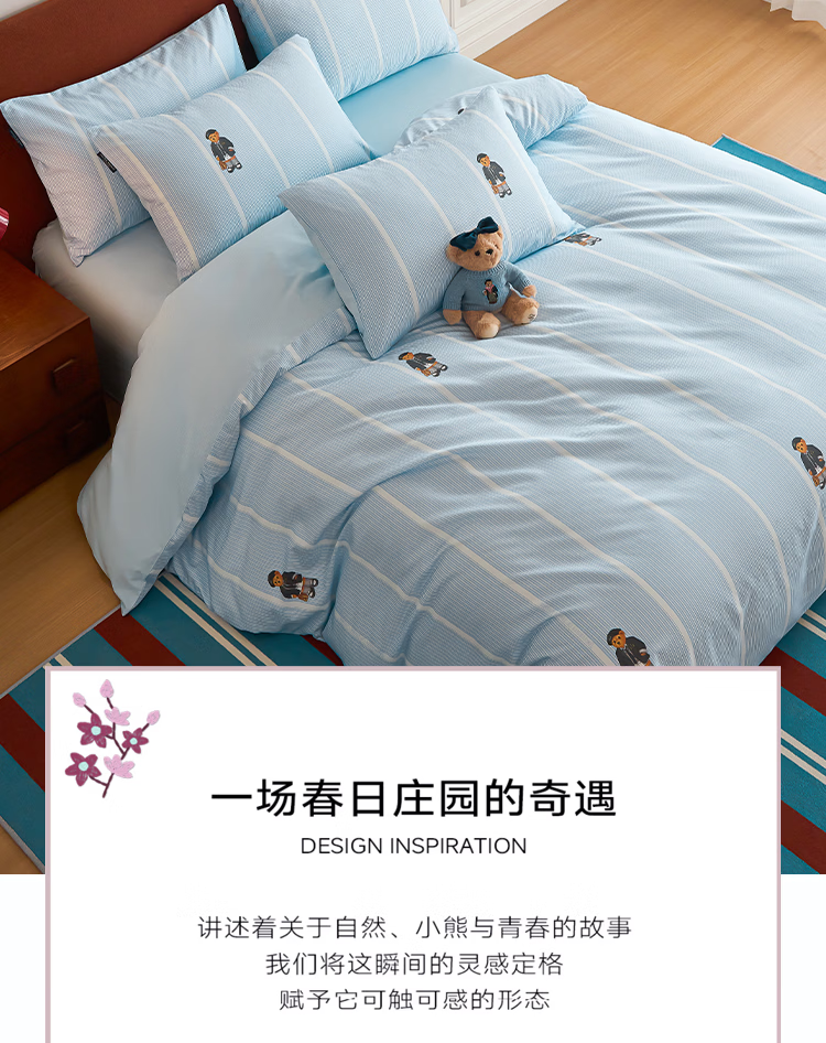 Teenie Weenie小熊26年新款100%纯棉A类全棉套件床单被套四件套床上用品三件套 【A类贴肤+春夏新款】 听松 1.5/1.8m 床单款 被套200*230cm 四件套