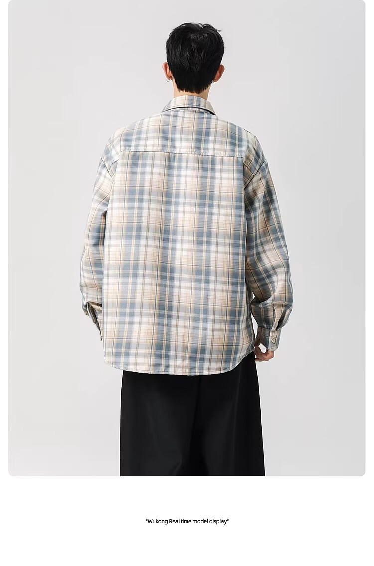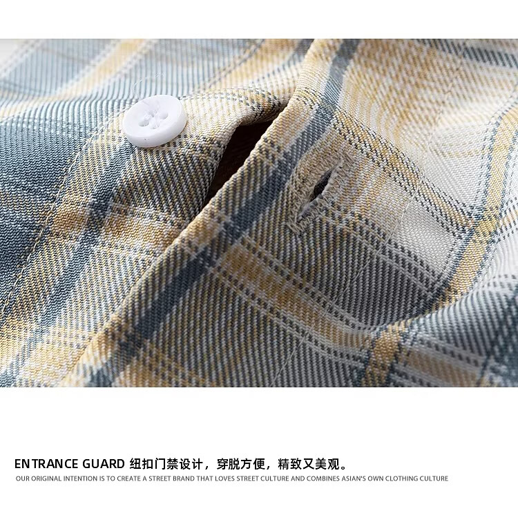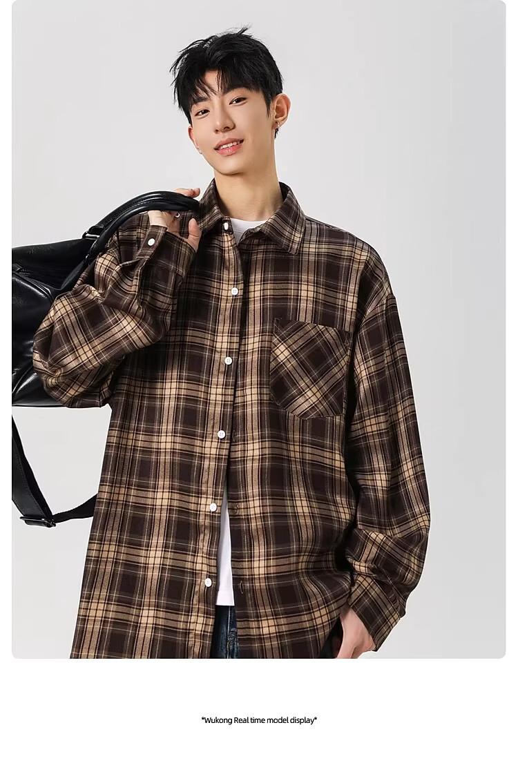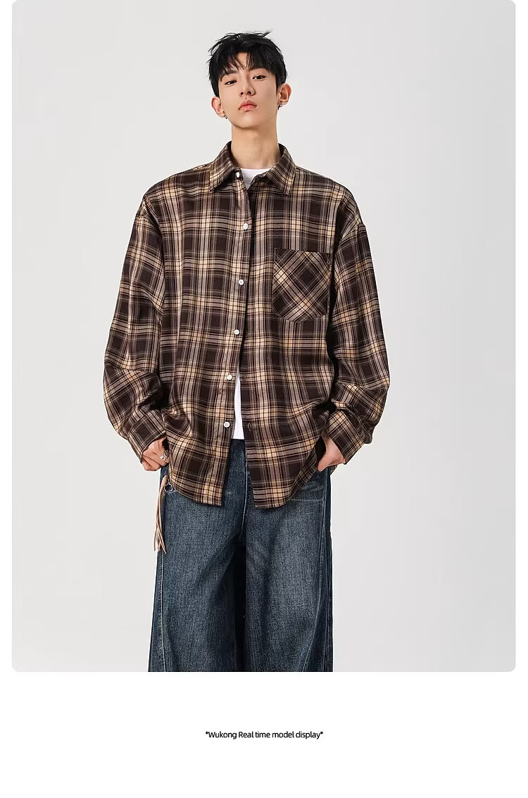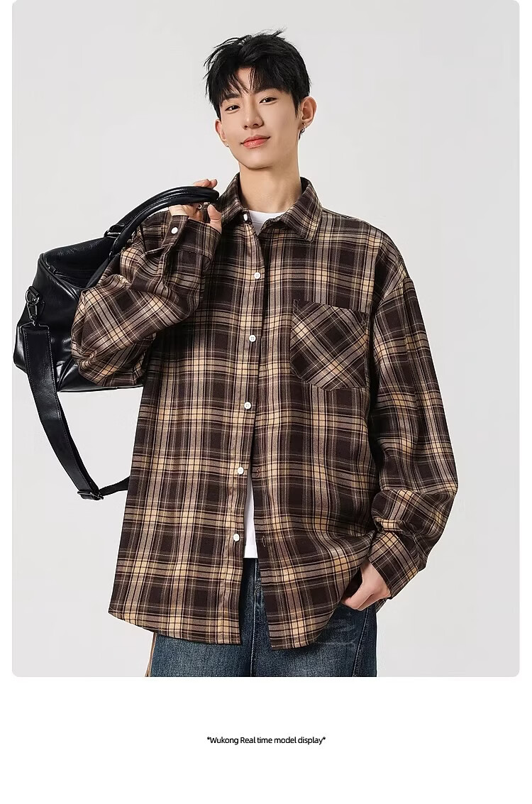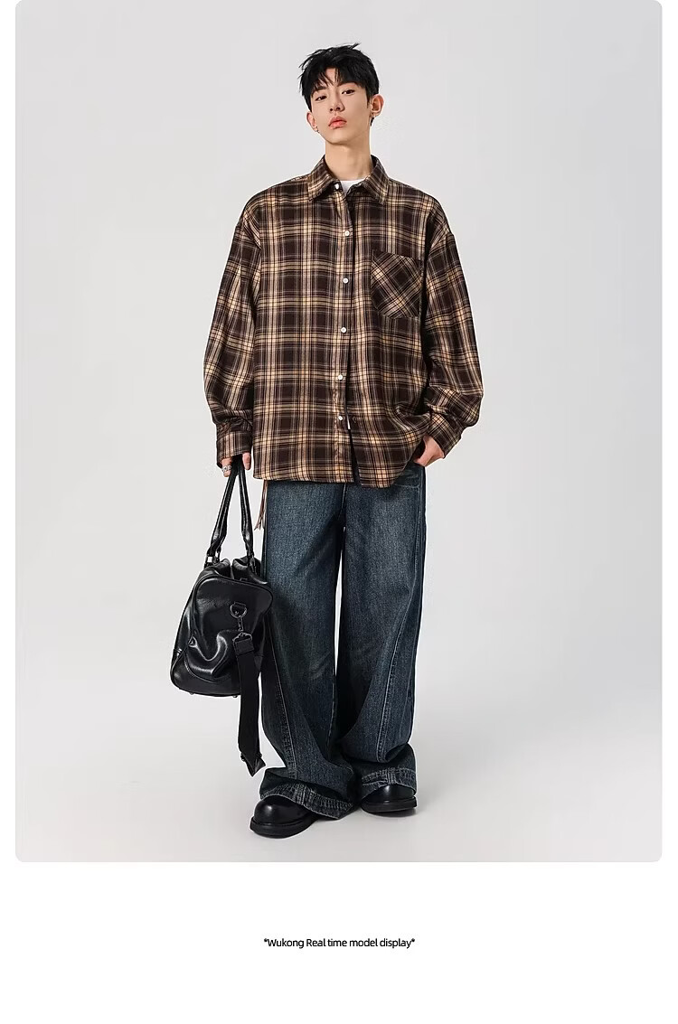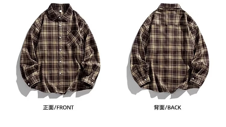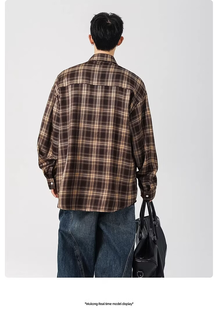 真维斯(Jeanswest)2025春季格子长袖衬衫男女潮牌复古宽松情侣休闲衬衣外套 土黄 S 【建议90-115斤】