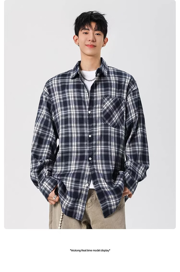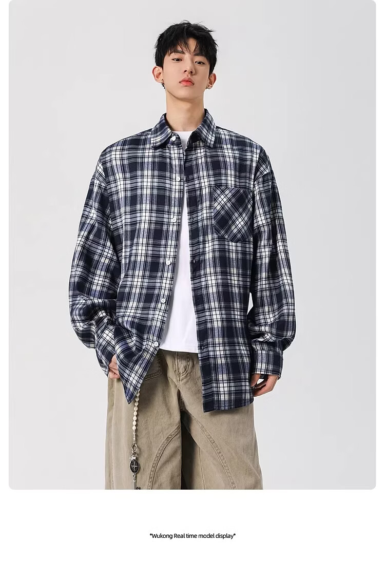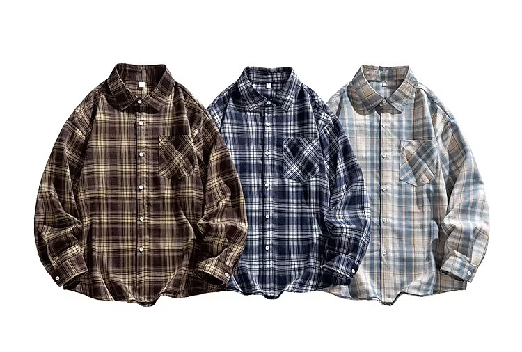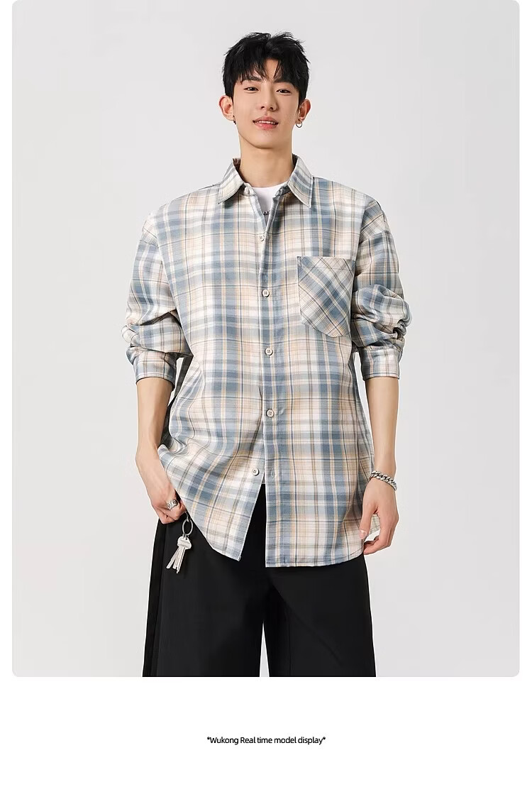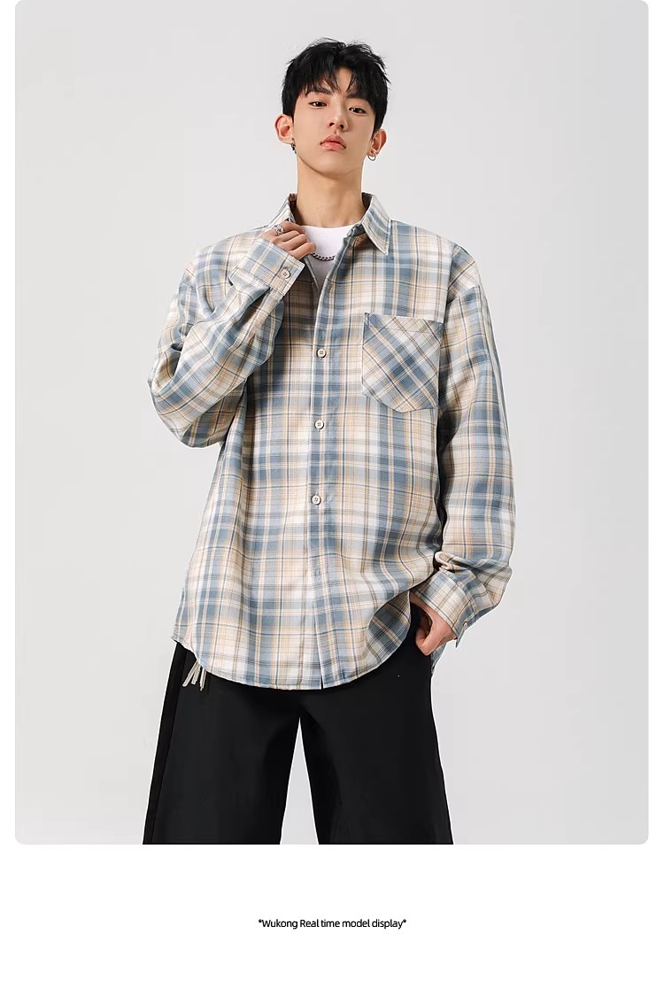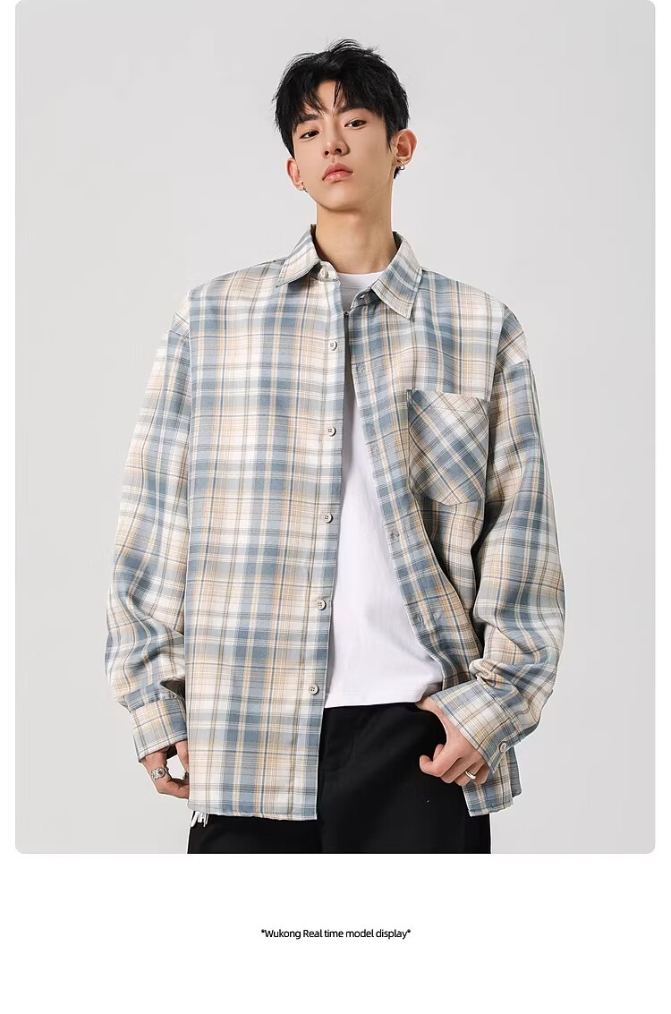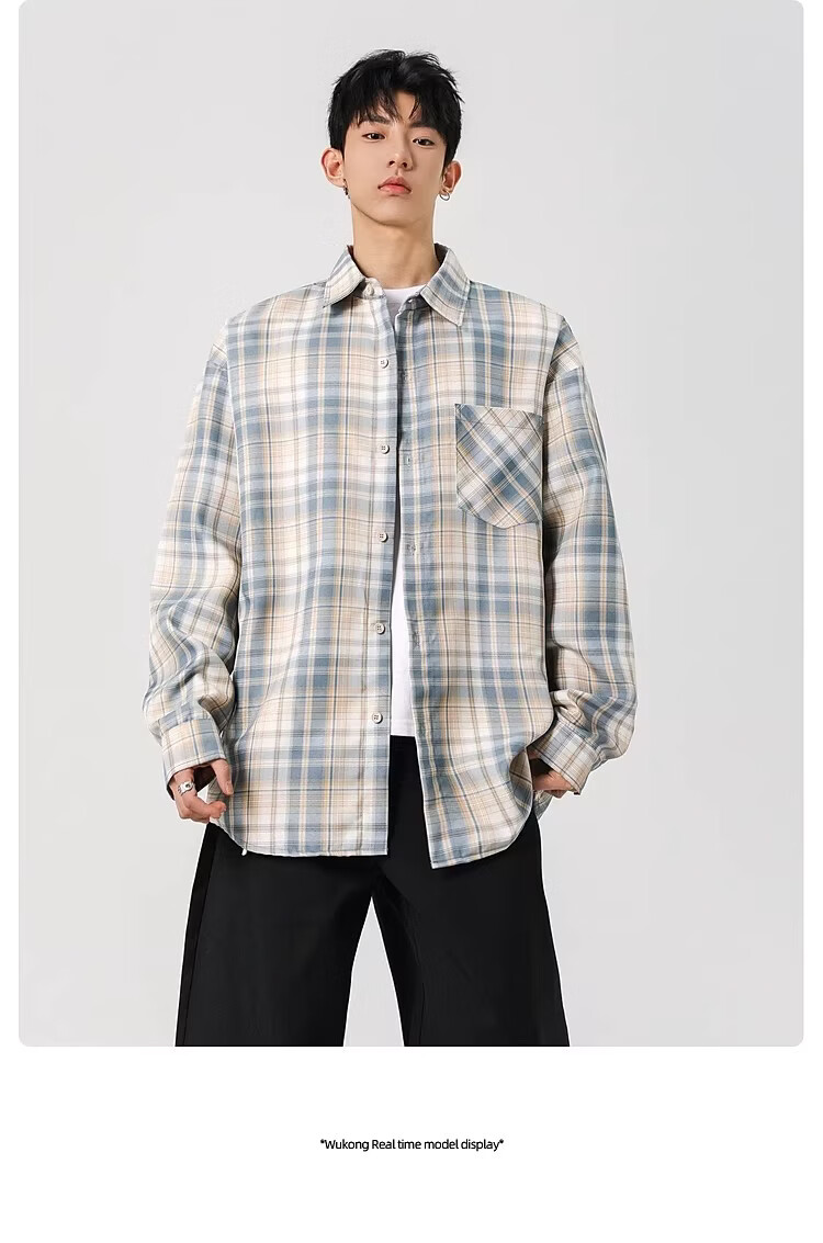 真维斯(Jeanswest)2025春季格子长袖衬衫男女潮牌复古宽松情侣休闲衬衣外套 土黄 S 【建议90-115斤】