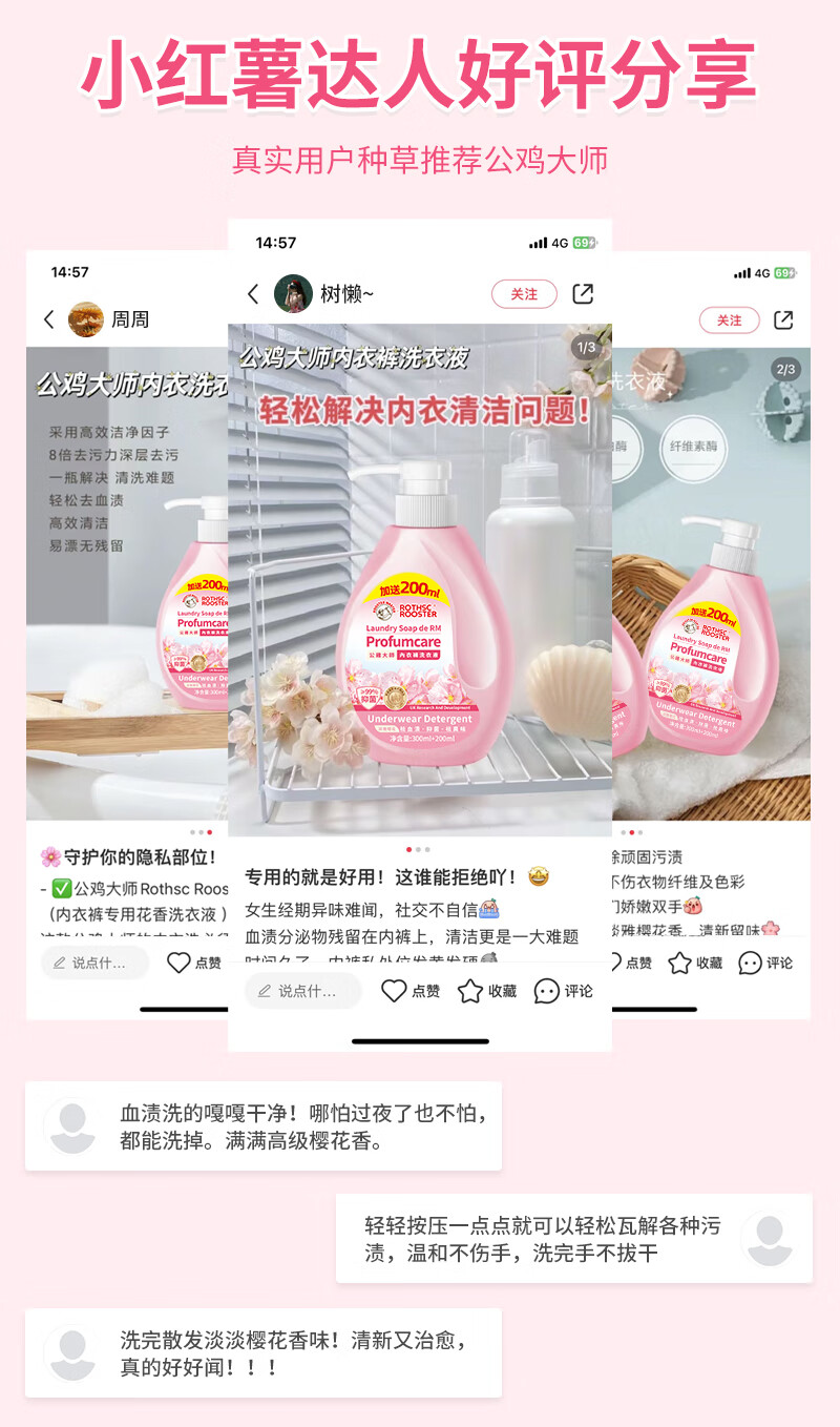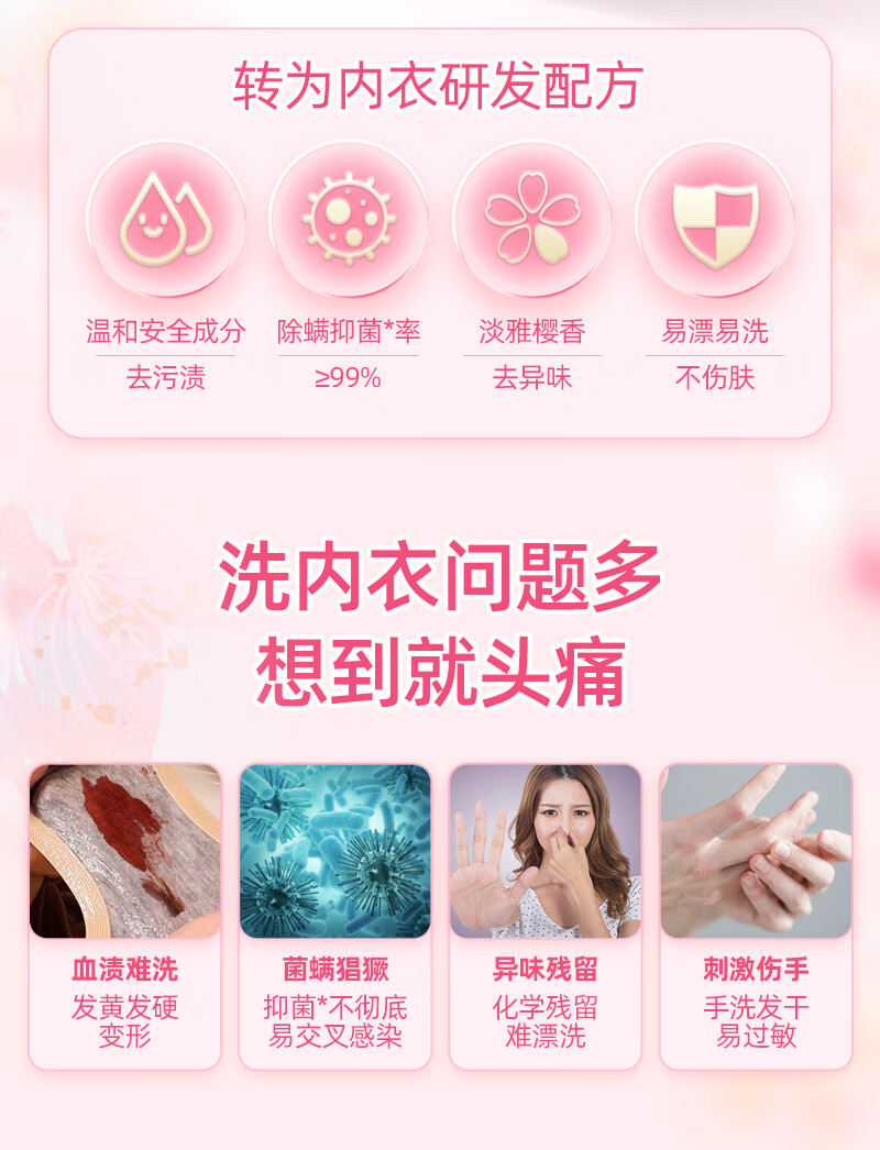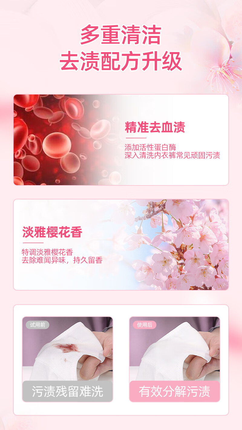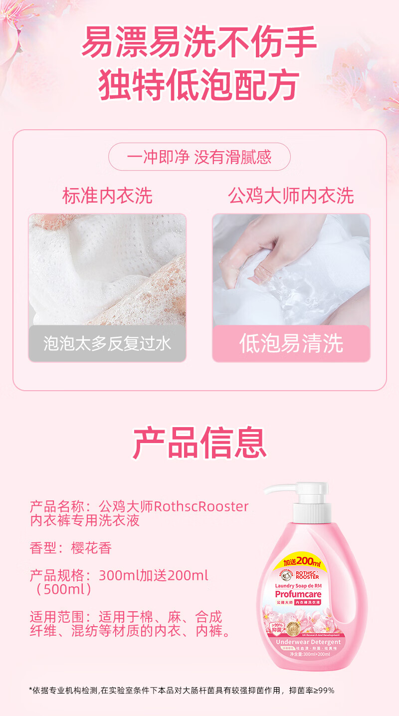 公鸡大师内衣内裤洗衣液手洗去血渍黄污渍除味除螨抑菌樱花香氛500ml 樱花香氛【到手两瓶】 500ml 2瓶